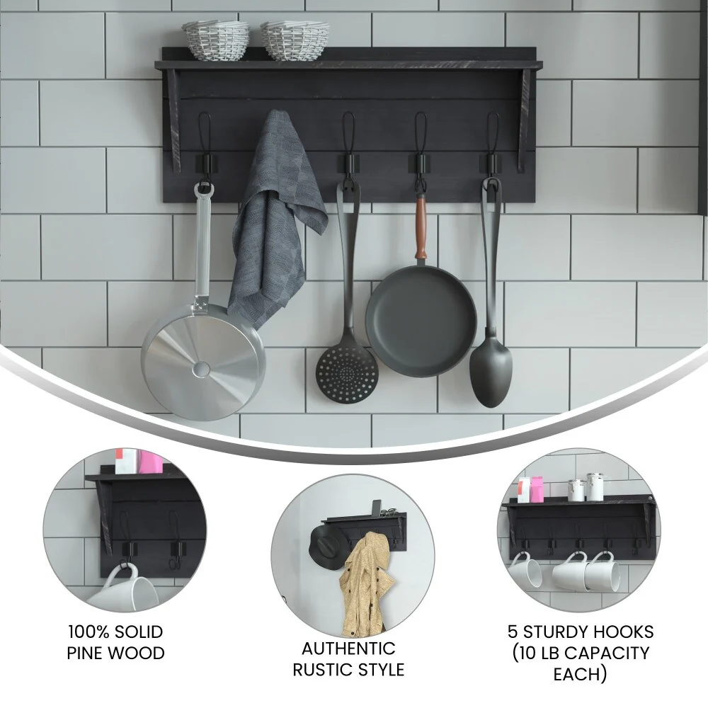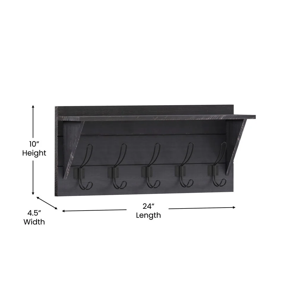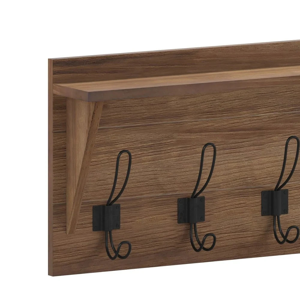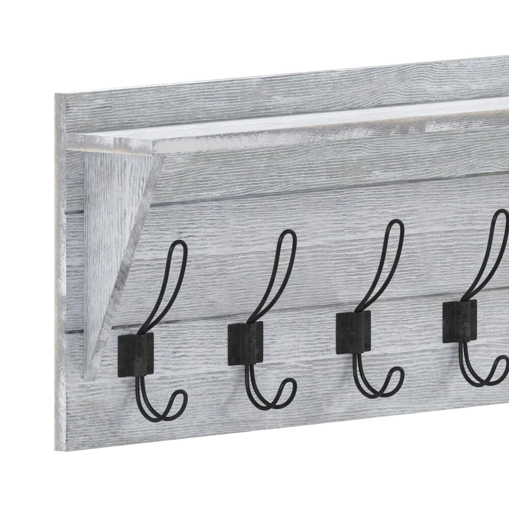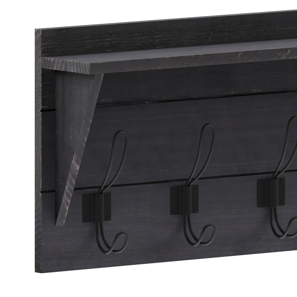 - Rustic Wall Mount Storage Shelf with Hanging Hooks