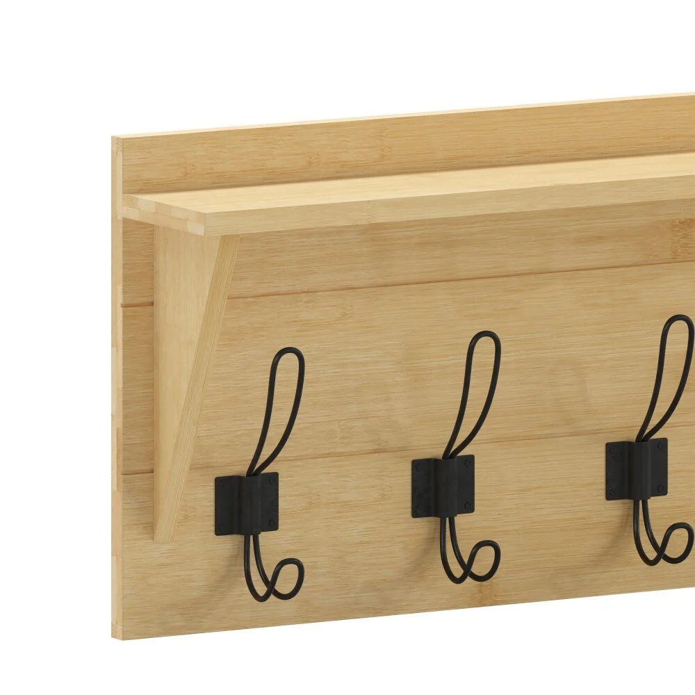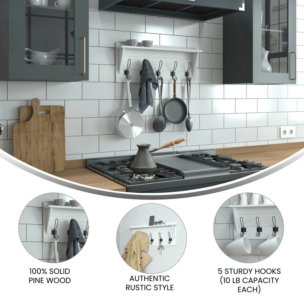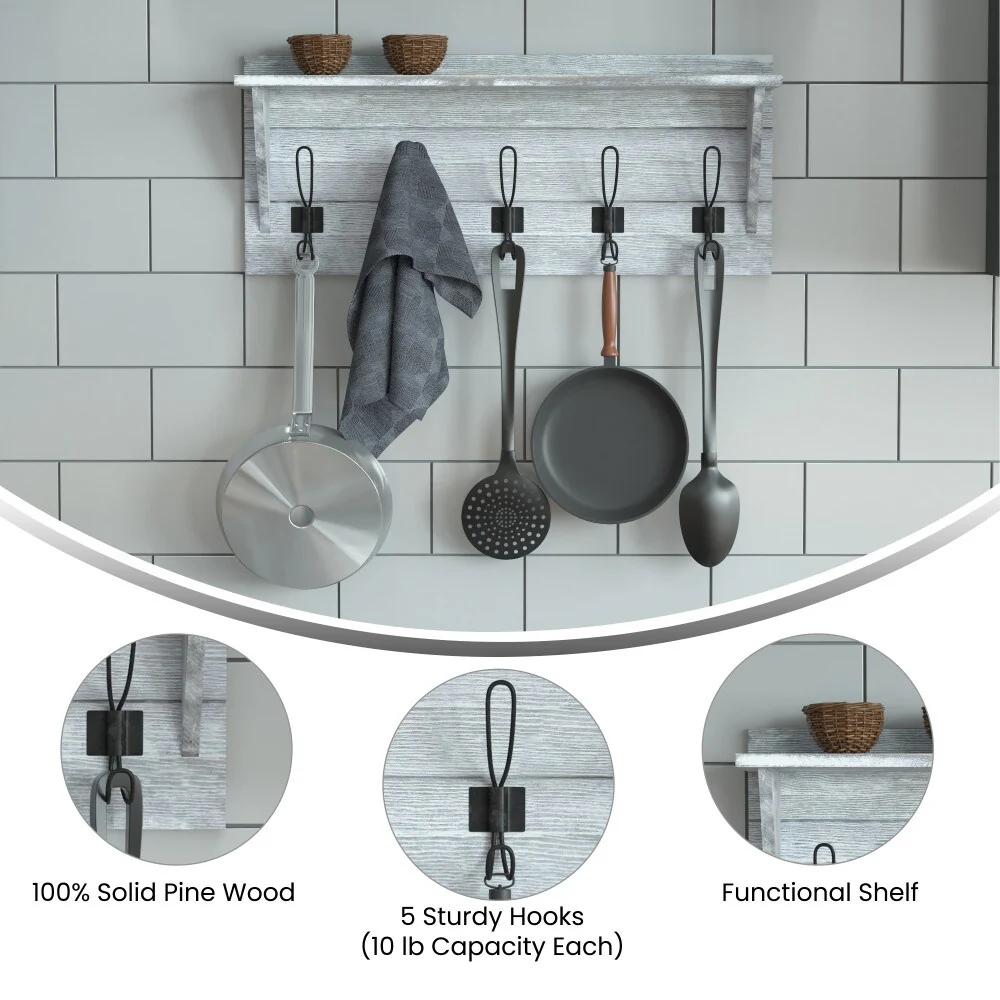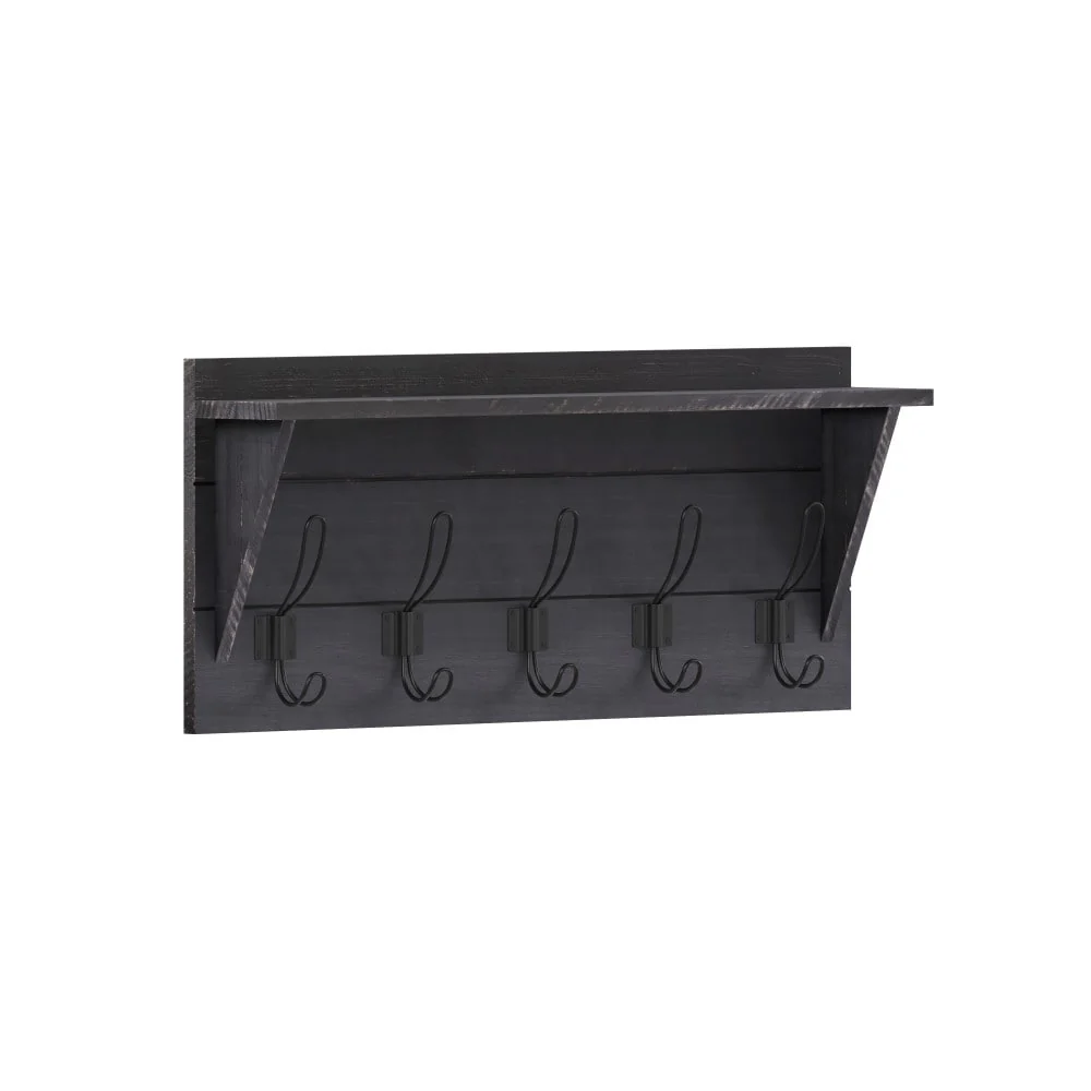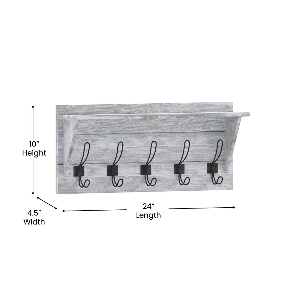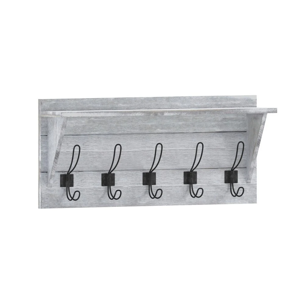 - Rustic Wall Mount Storage Shelf with Hanging Hooks