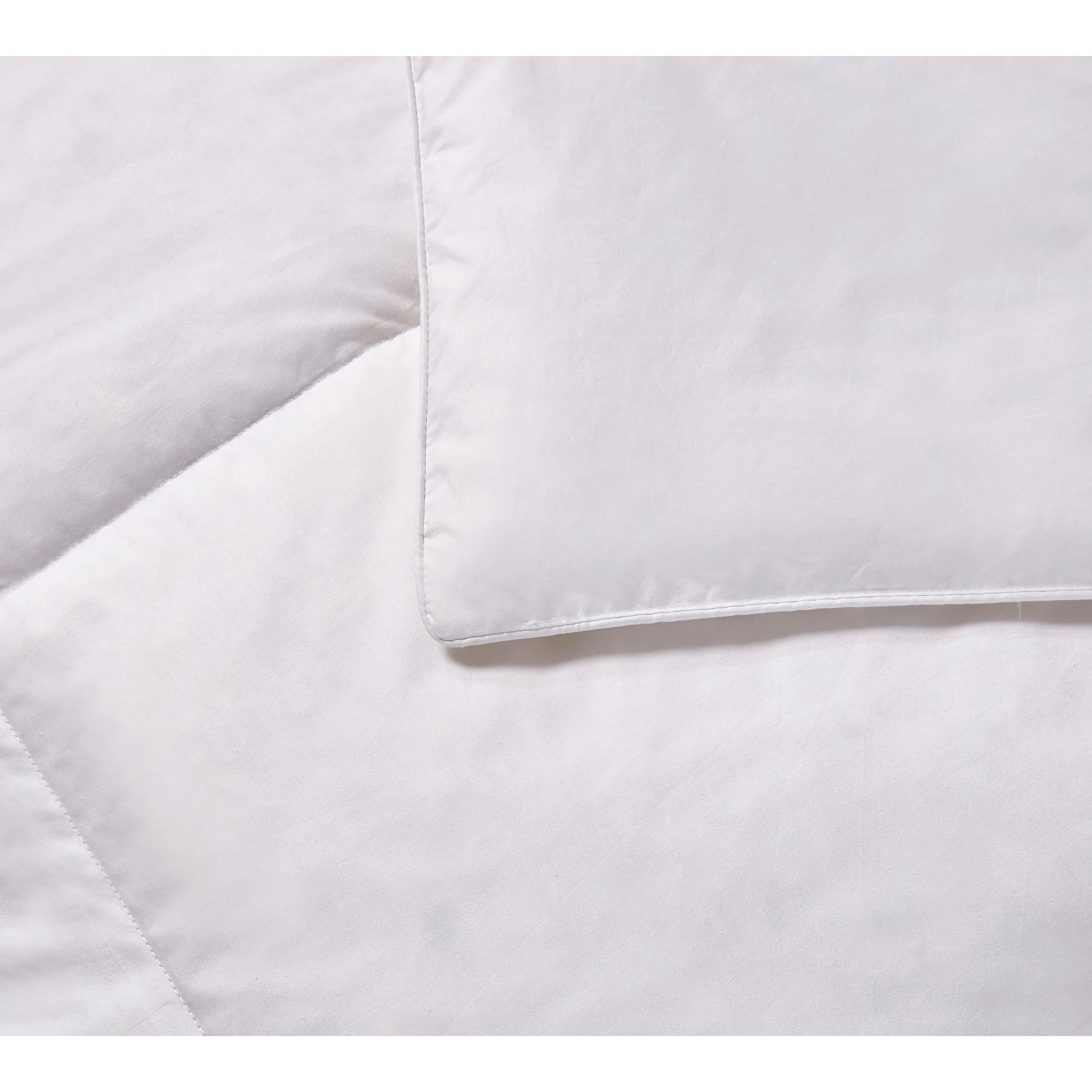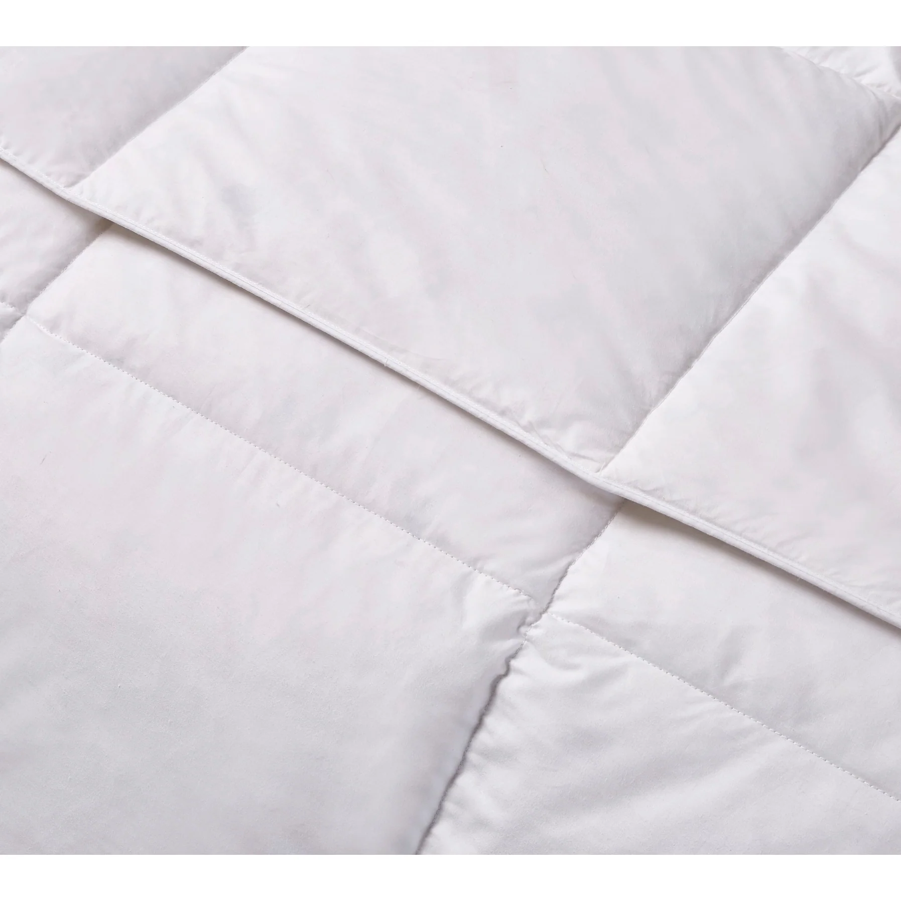 Settle in for a restful sleep under this goose down and feather comforter. Boasting a 250-thread-count cotton cover, this solid-white comforter is soft on the skin and suitable for all seasons. The end-to-end box construction keeps the fill from shifting, rendering this comforter hypoallergenic and providing consistent warmth.