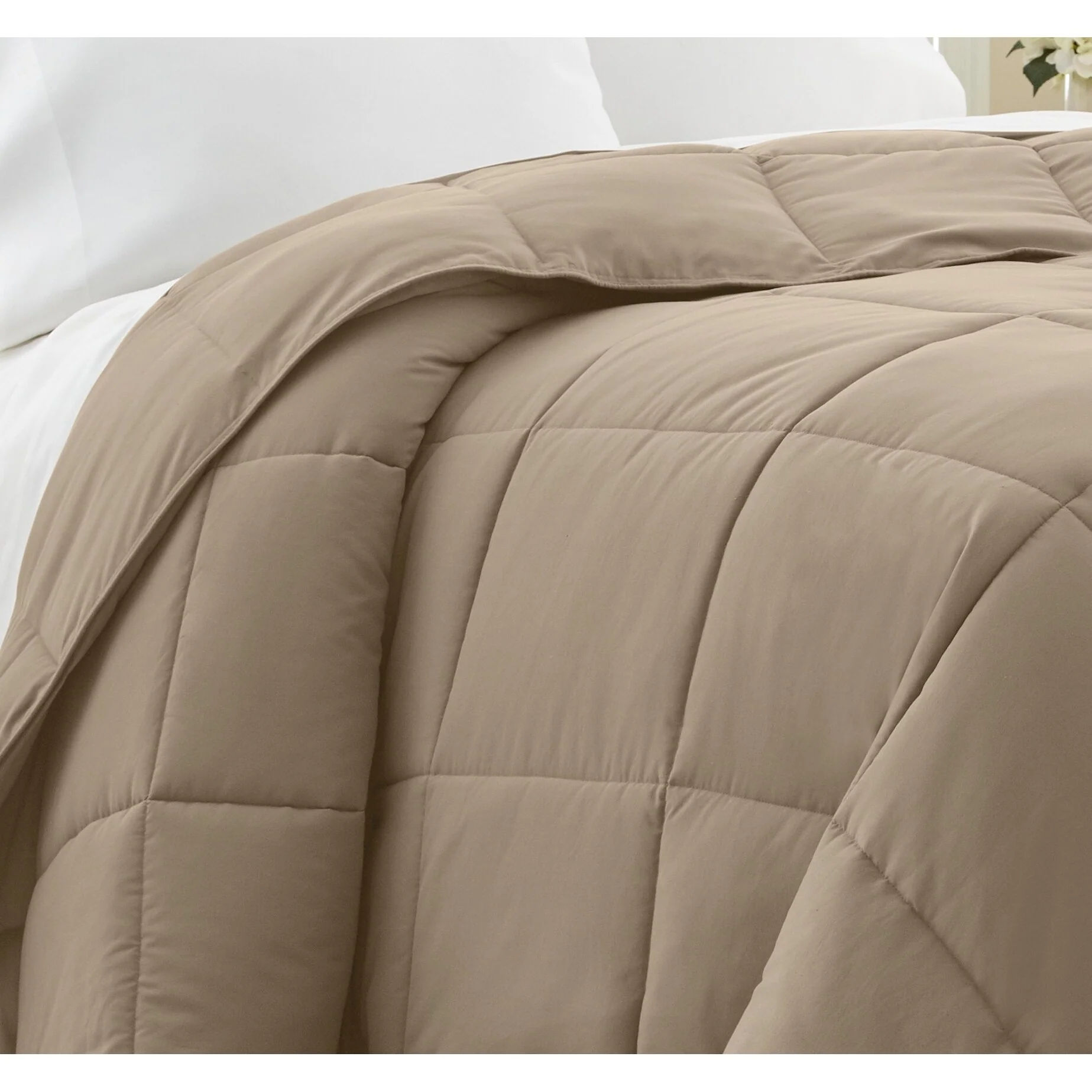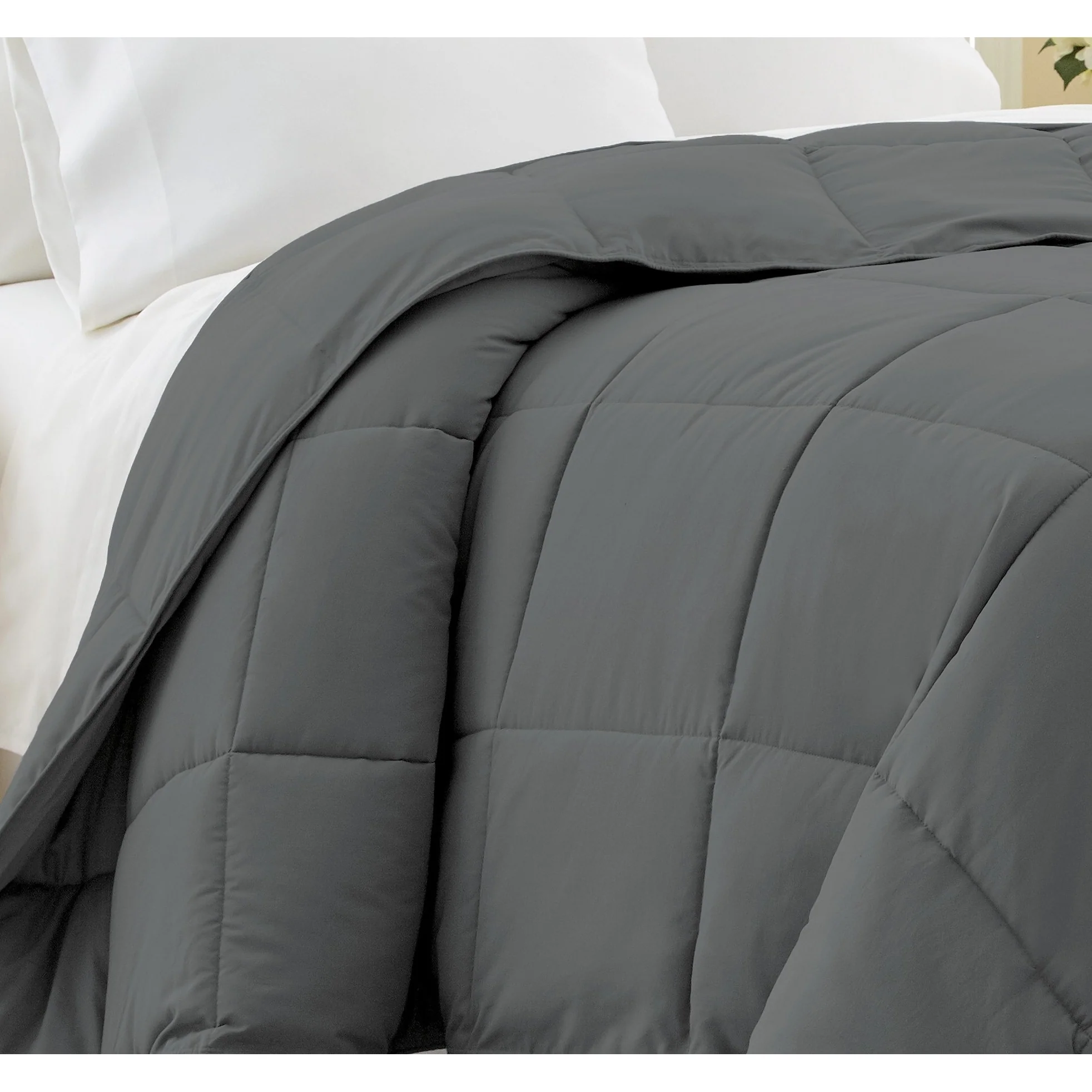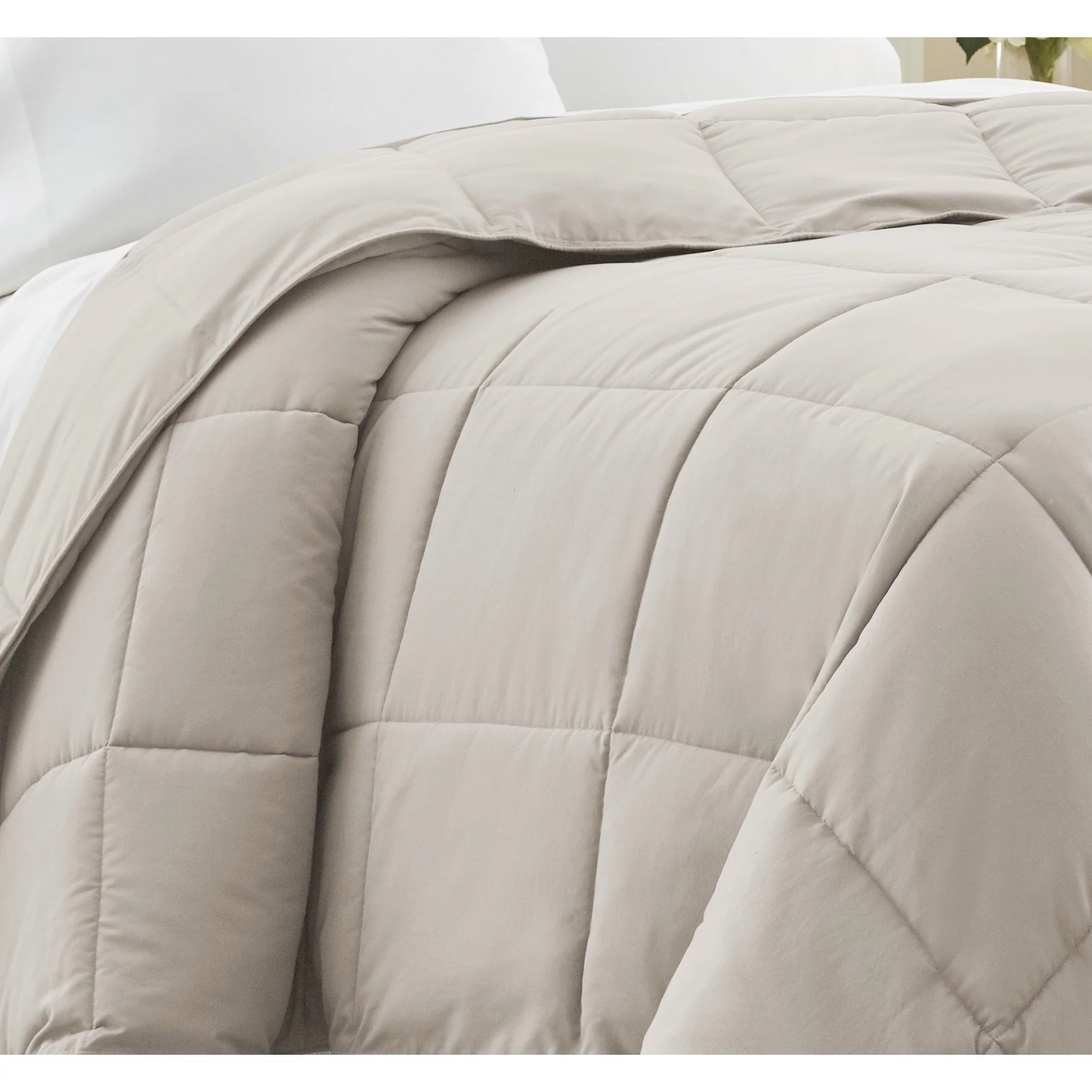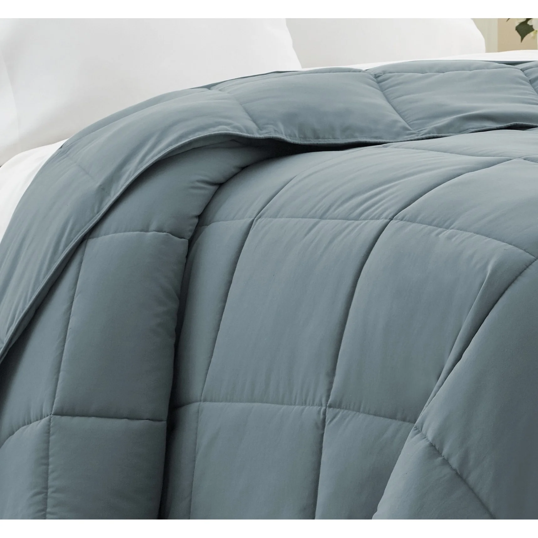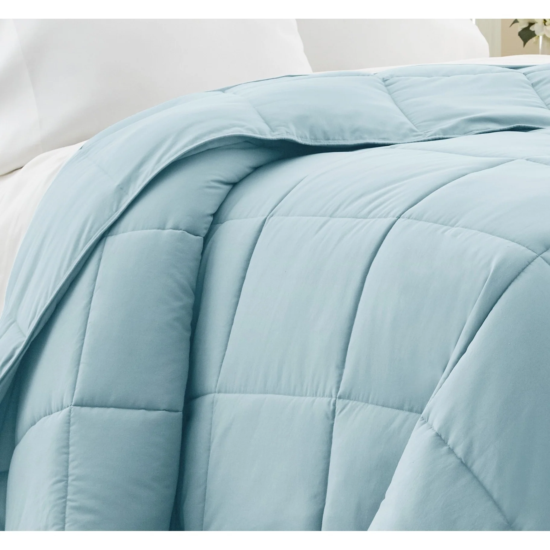 Instantly upgrade your bedding with this all season comforter. The box-stitched microfiber cover is filled with down alternative fill for year-round comfort. Choose from 18 colors and three sizes to suit your bedding needs.