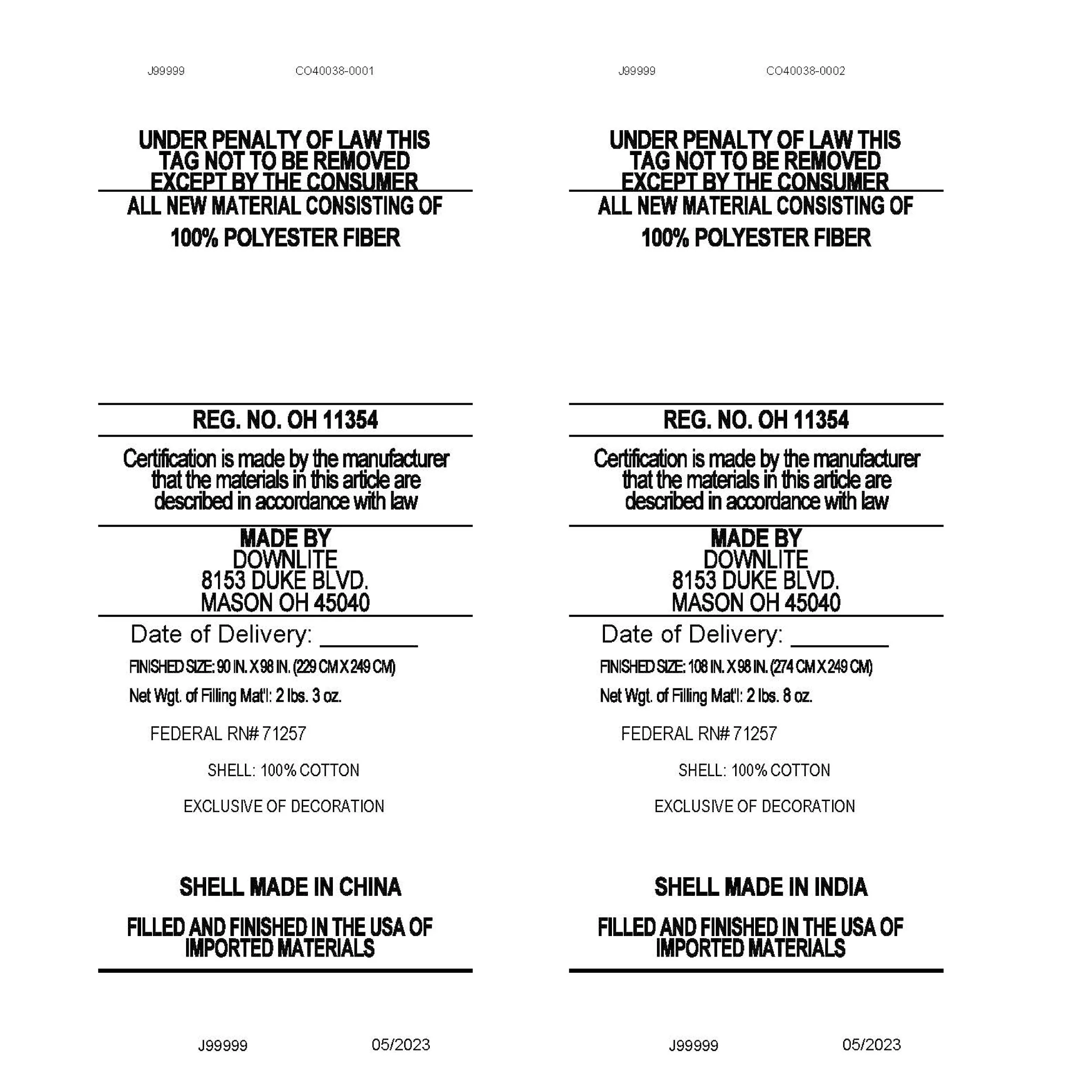 - Oversized King: 108 x 98 Inches, 40 oz. filling