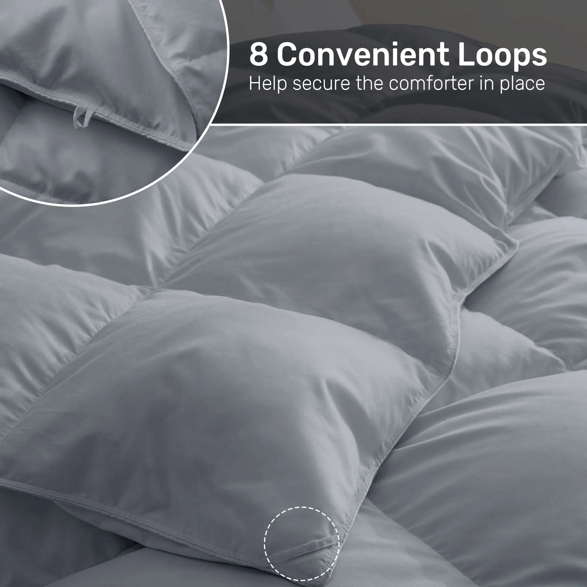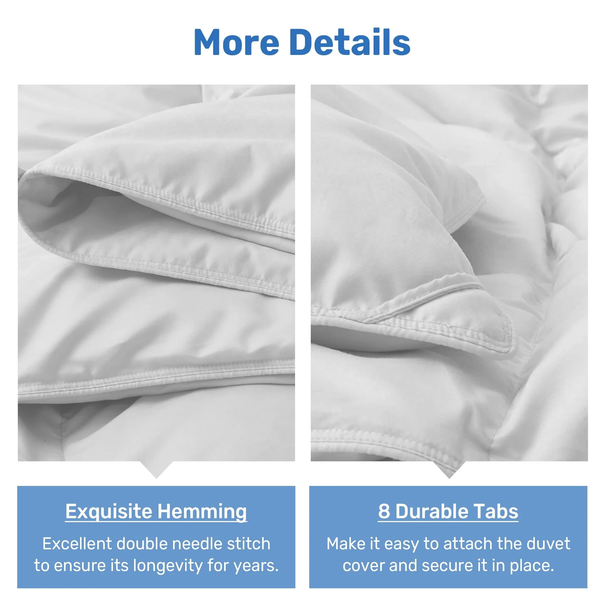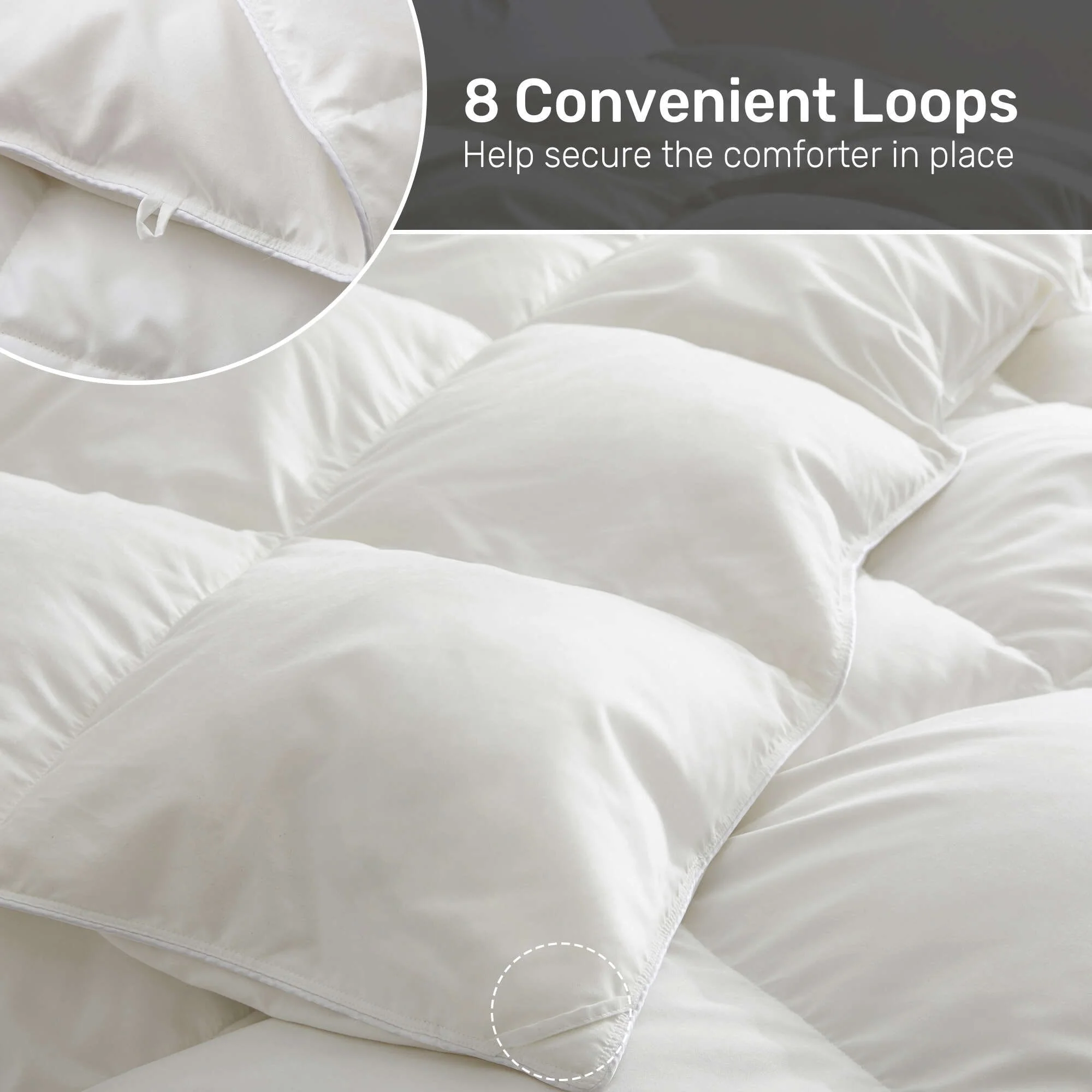 - 4 corner tabs and 4 middle tabs, totaling 8, to anchor a duvet cover.