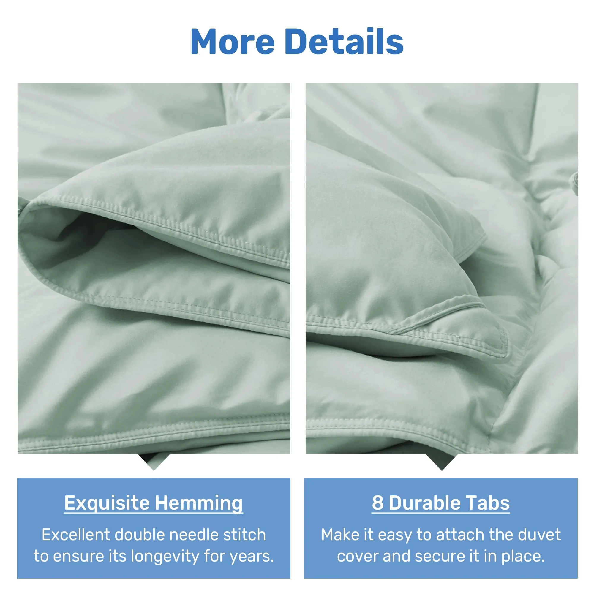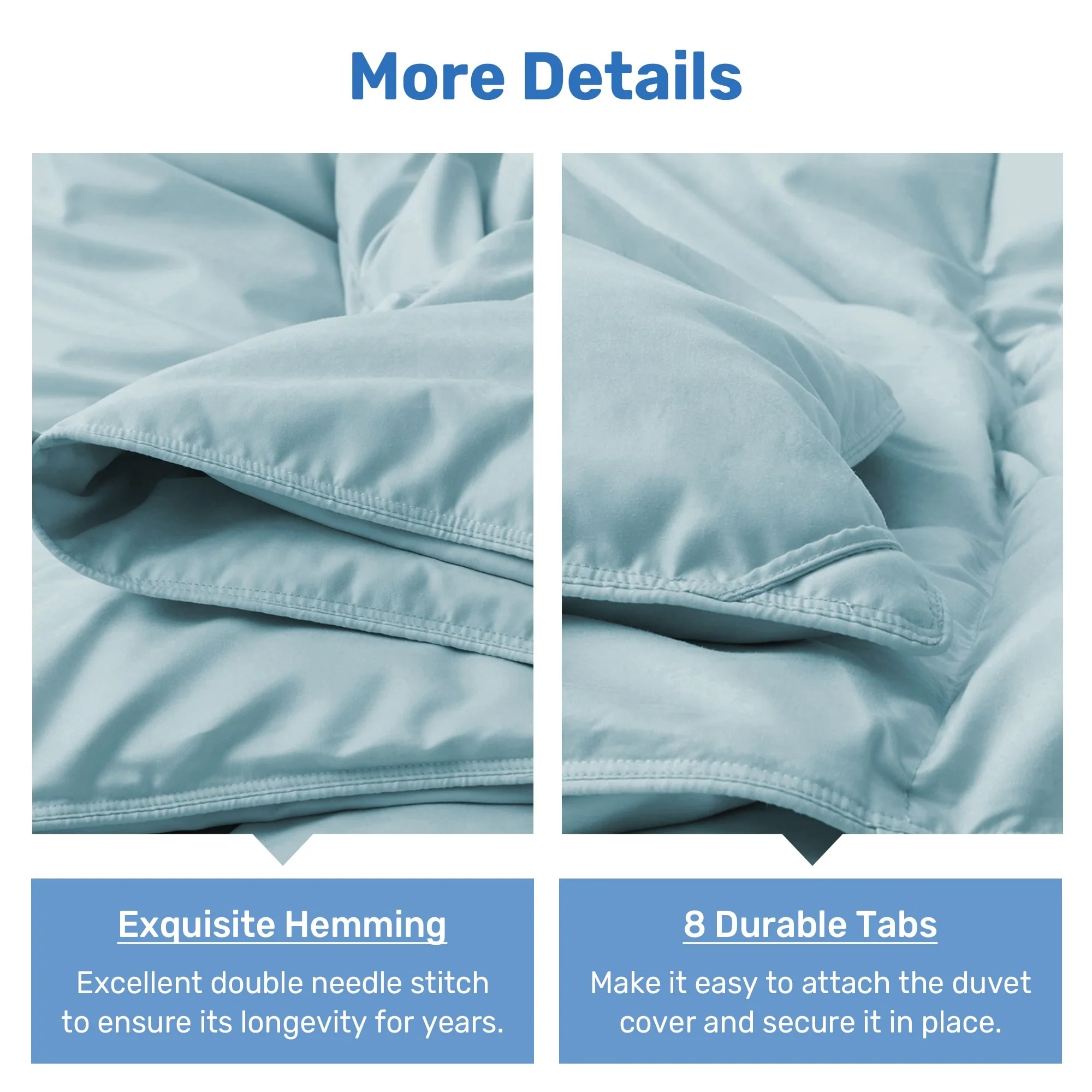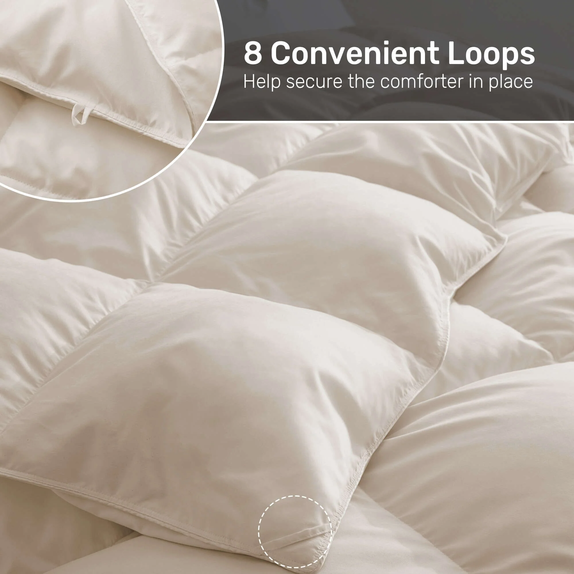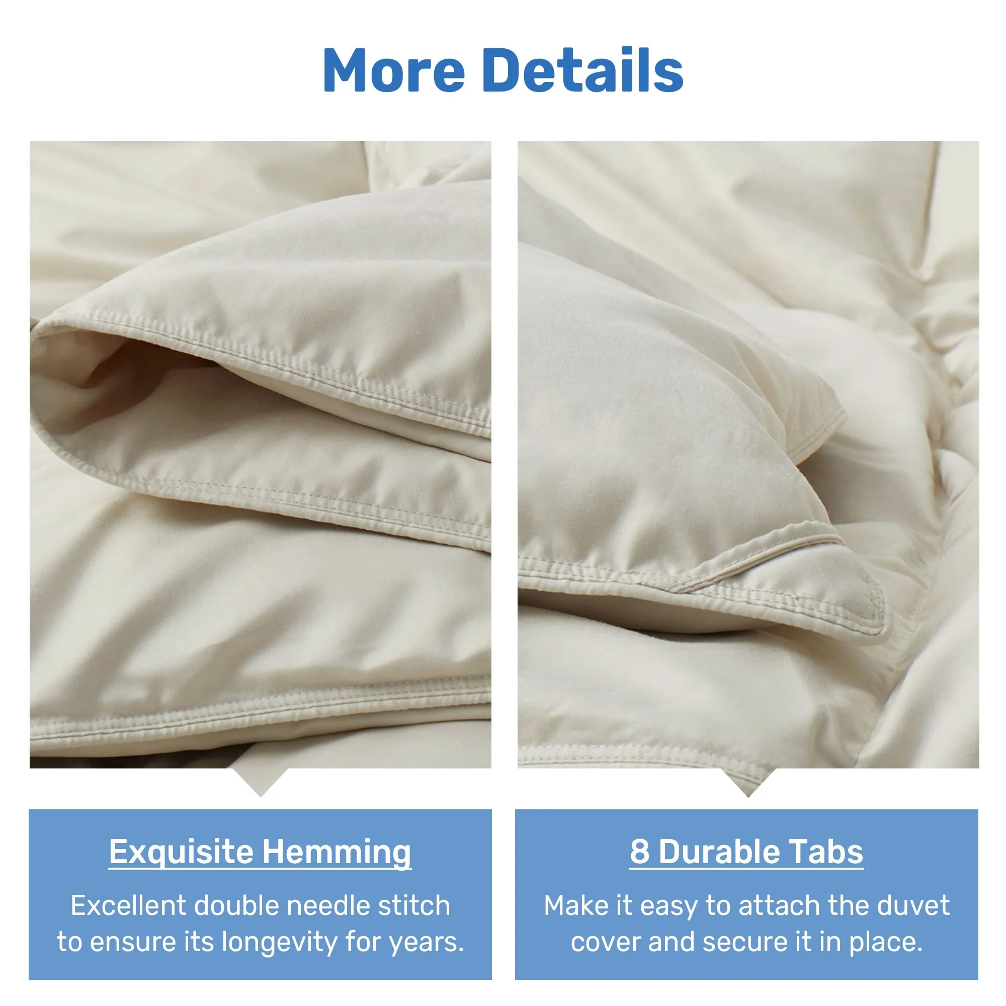 - 4 corner tabs and 4 middle tabs, totaling 8, to anchor a duvet cover.