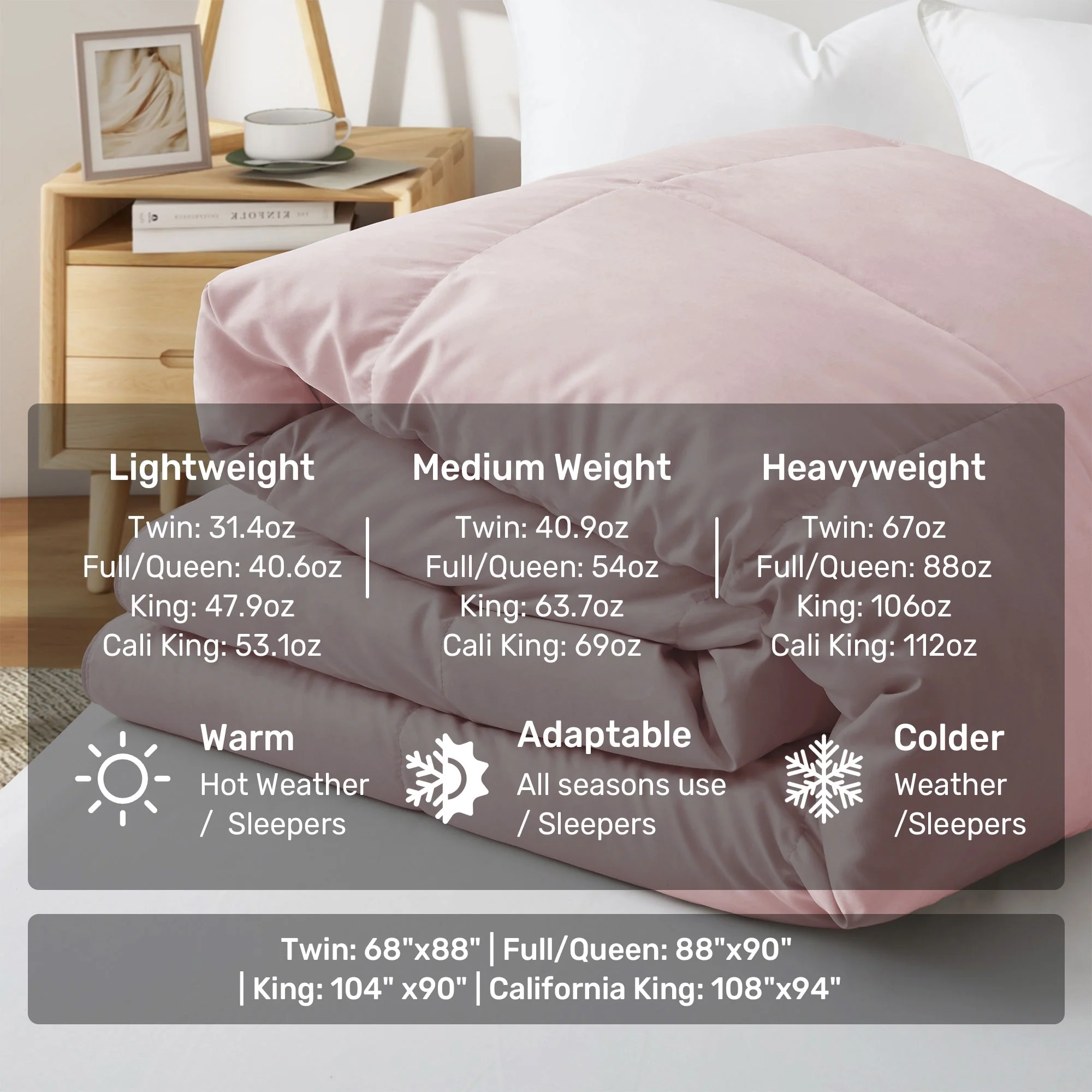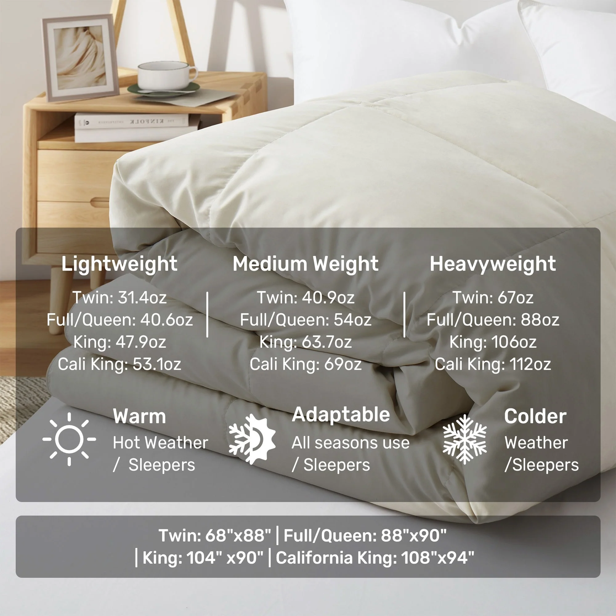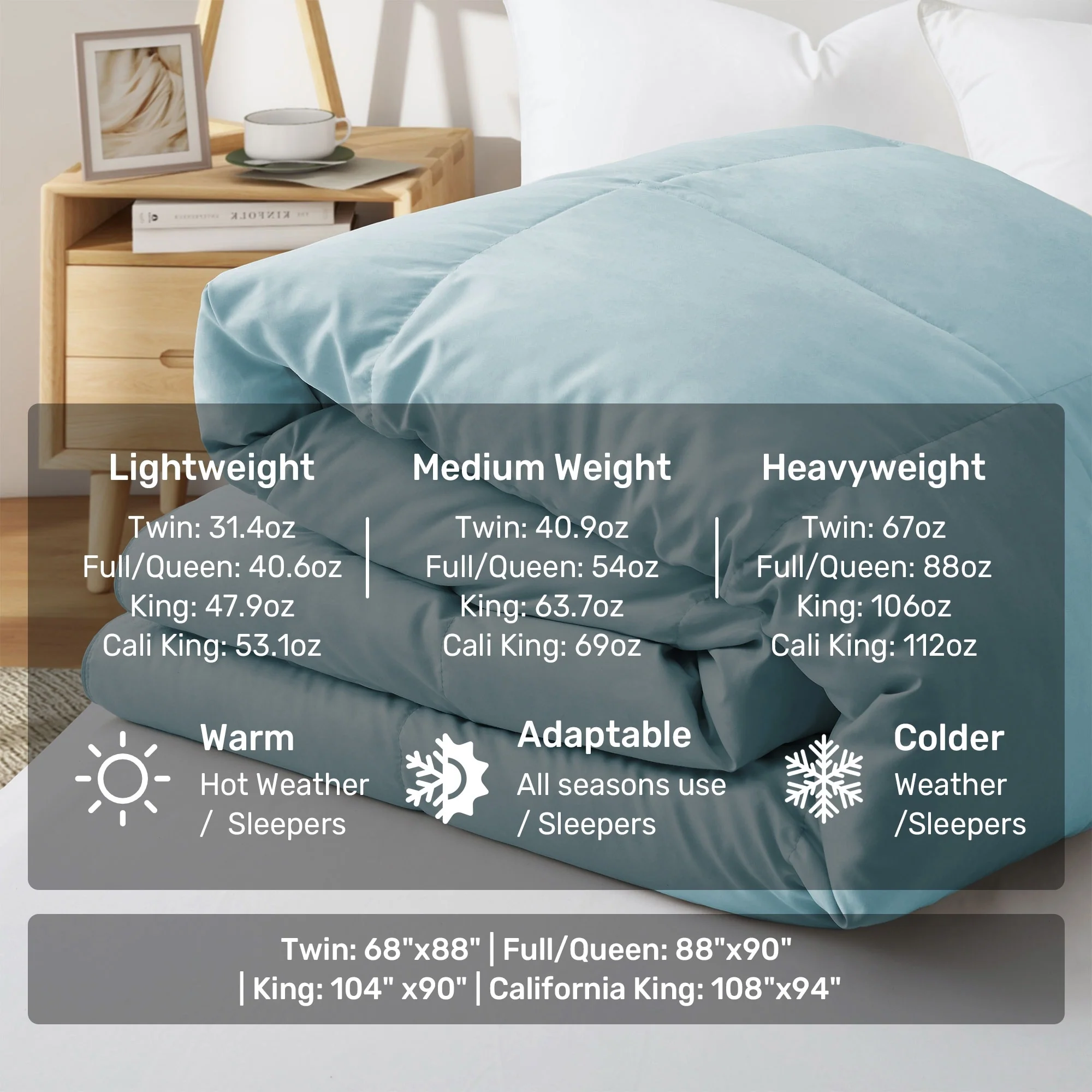 - Three Warmth Levels to Choose: Lightweight, Medium Weight and Heavy Weight