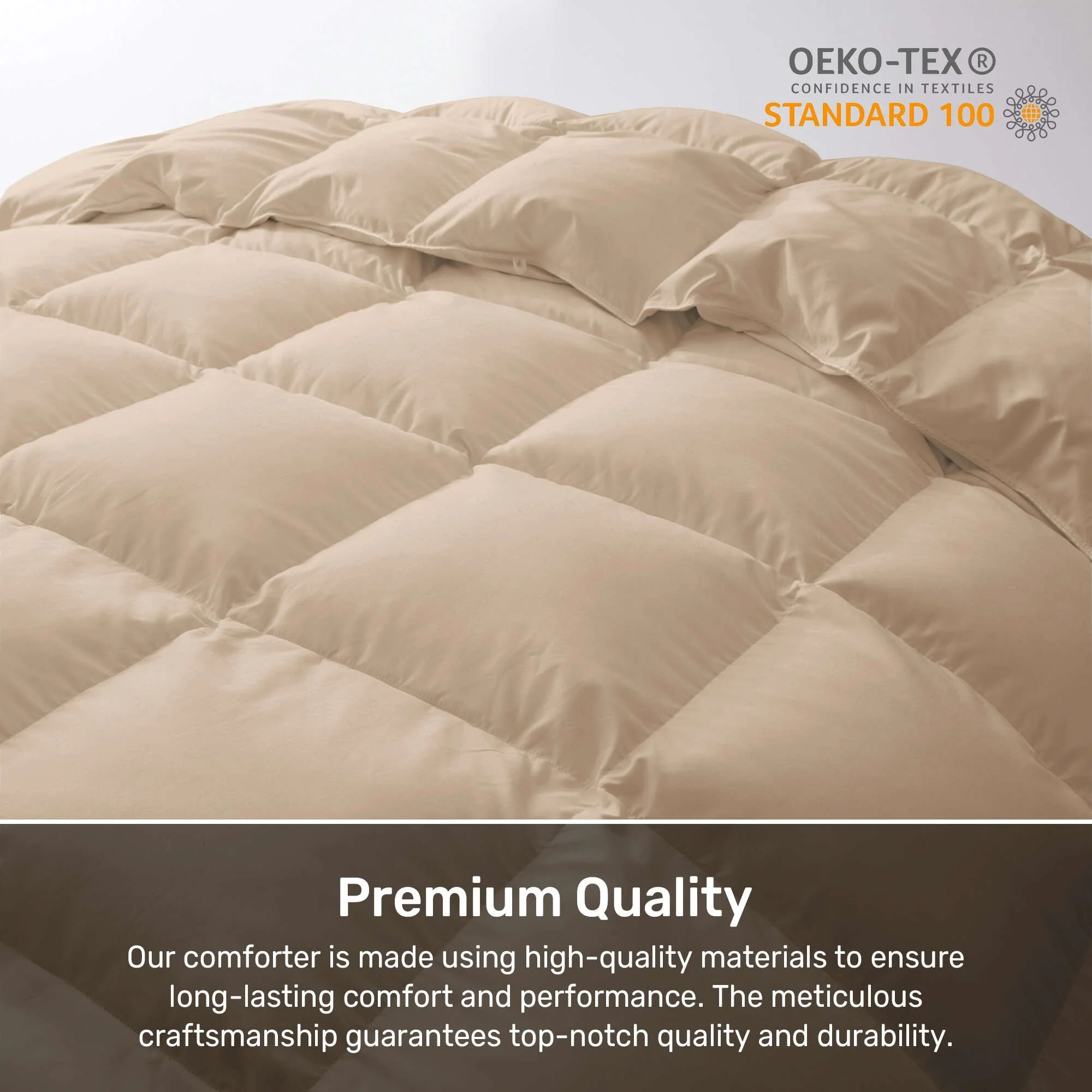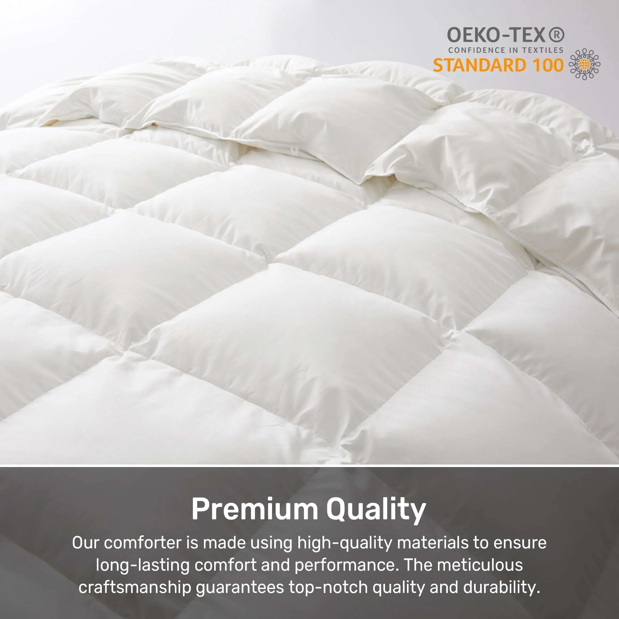 Elevate your sleep experience with our Premium All Season Lightweight & Heavyweight White Goose Fiber Comforter. Crafted with utmost care and attention to detail, this comforter is designed to provide you with the ultimate combination of coziness and luxury. The shell of the comforter is made from a blend of 92% polyester and 8% nylon, ensuring durability and a silky smooth feel against your skin. The 360 TC fabric adds an extra layer of softness and comfort, allowing you to snuggle up and drift off into a restful slumber. The stuffing of the comforter consists of a blend of feathers fiber and white goose down, with 95% goose feathers fiber and 5% white goose down. This combination offers excellent insulation and warmth, making it perfect for colder nights or individuals who tend to feel colder while sleeping.