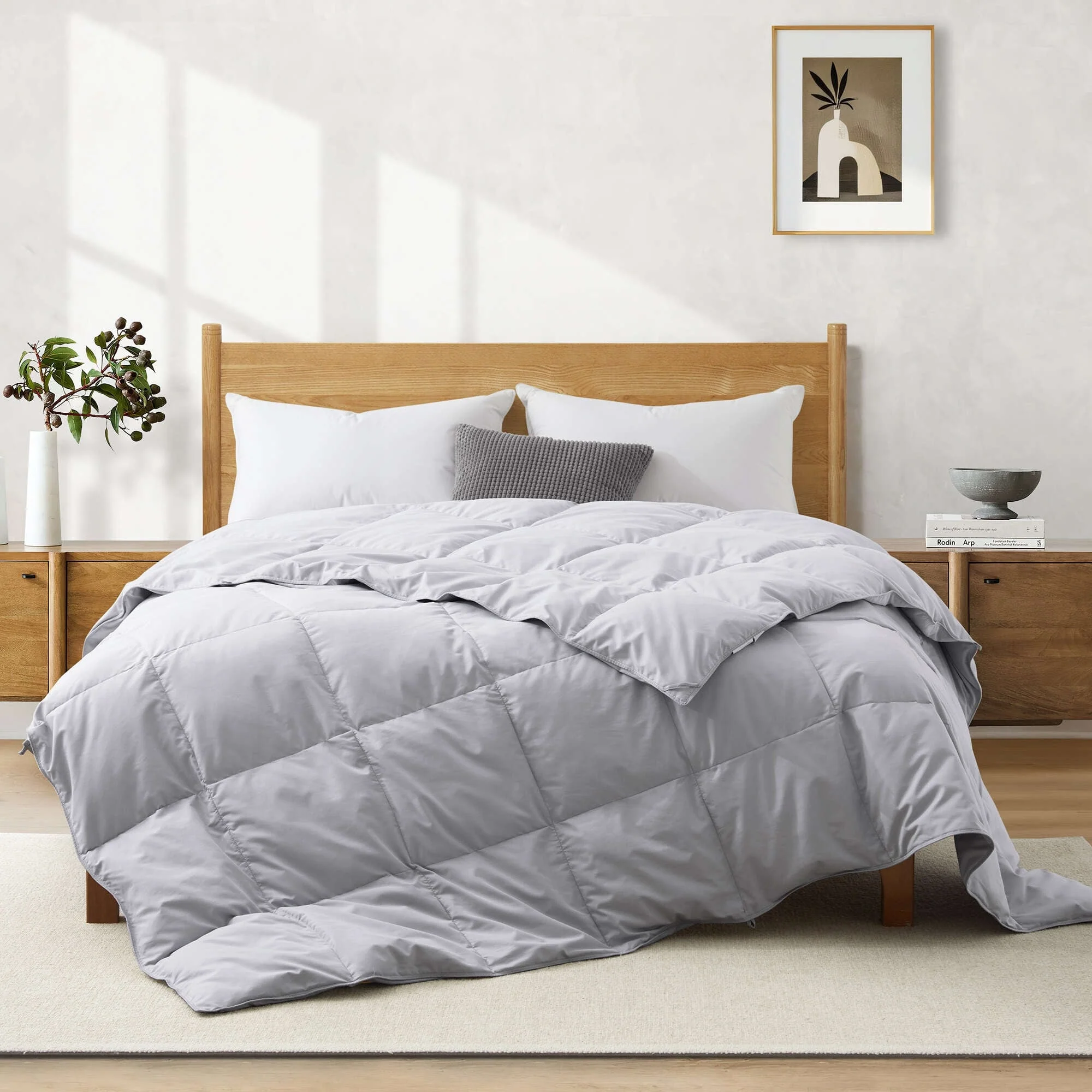 Receiving the duvet insert: To ensure quick shipping and economic package, we use vacuum packaging. If the duvet looks flat after opening, simply give it a shake and let it place for a few days to regain its fluffiness. Since the filling is protein-based and has been compressed for packaging, a slight odor may occur. Do not wash it—just simply air it out in a well-ventilated area for 24 hours or more, and the odor will dissipate.