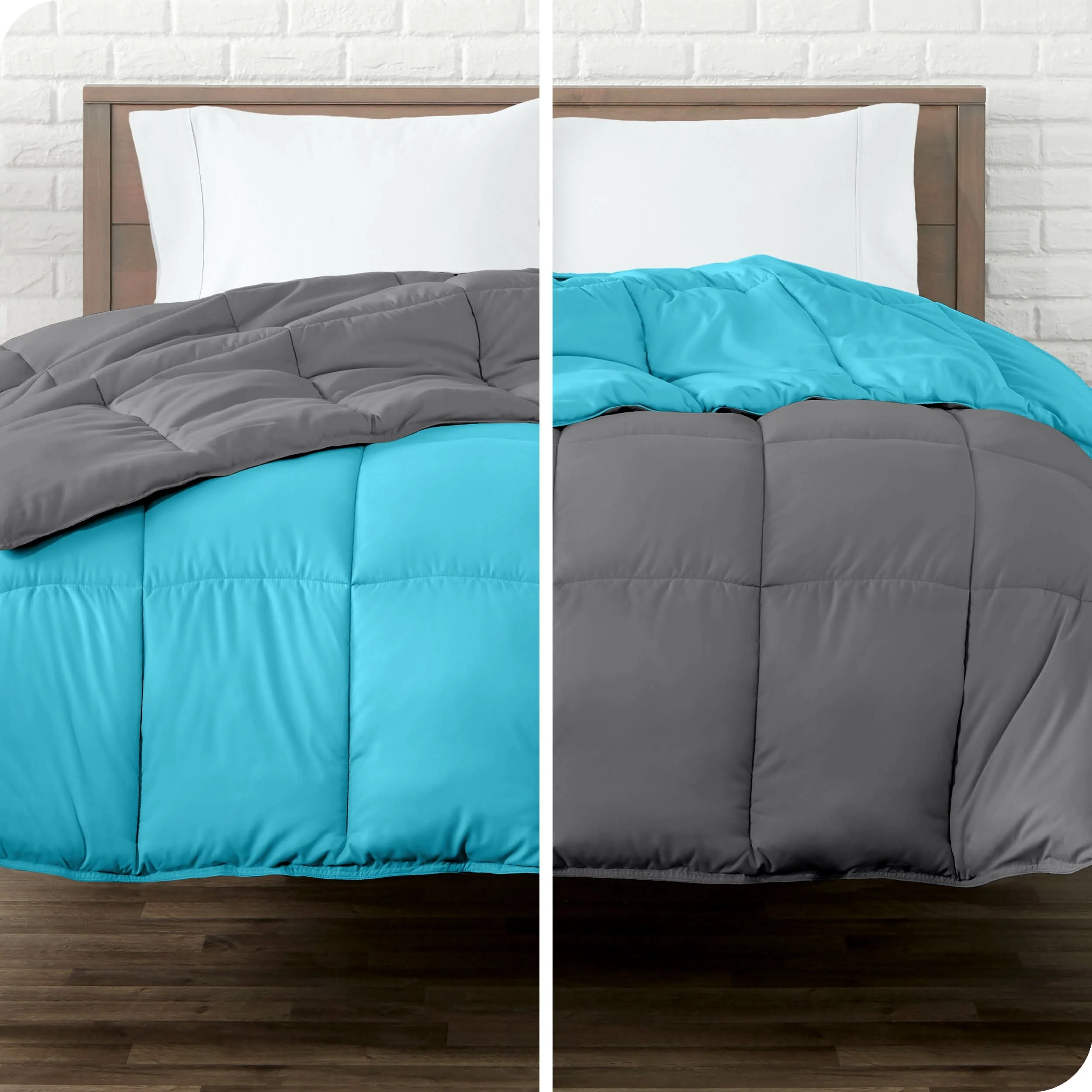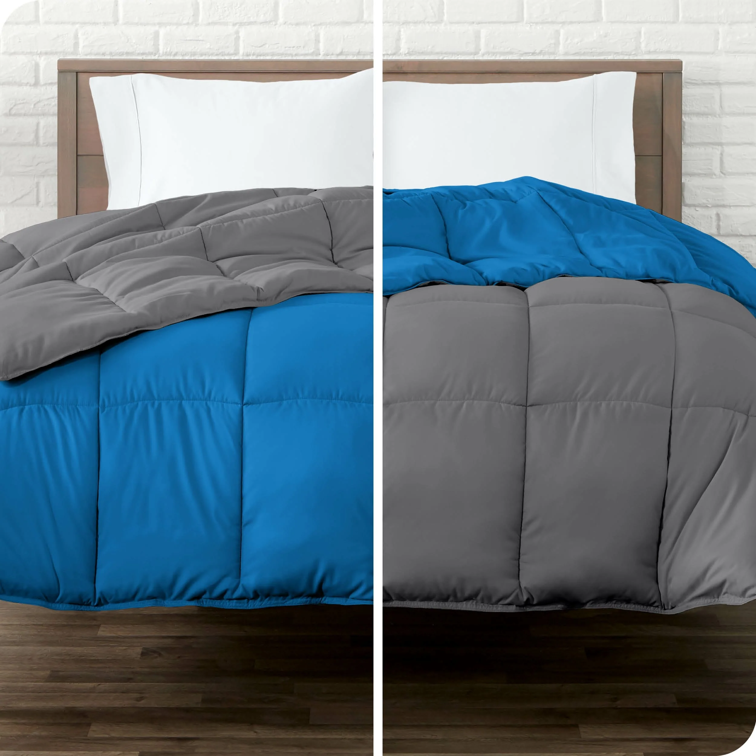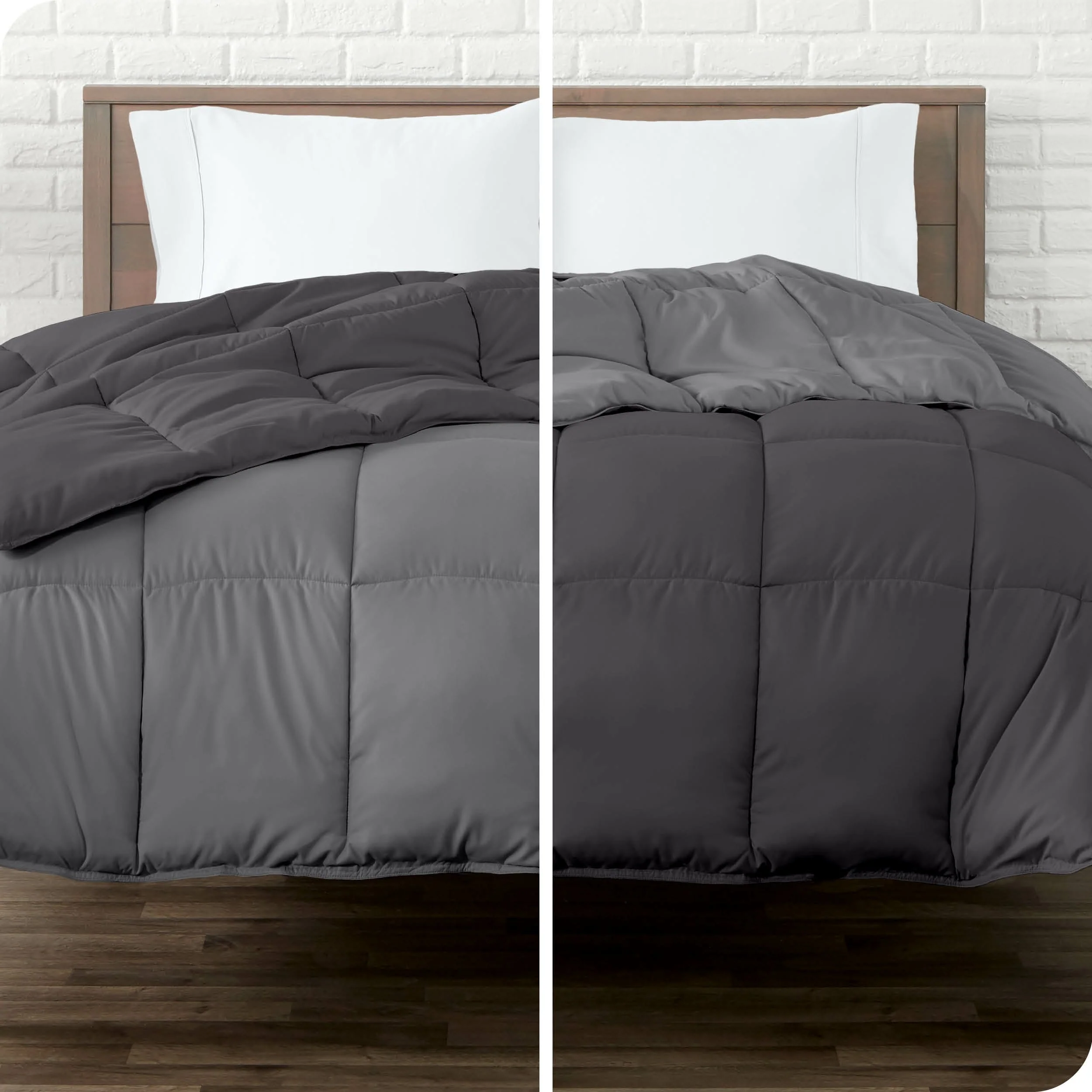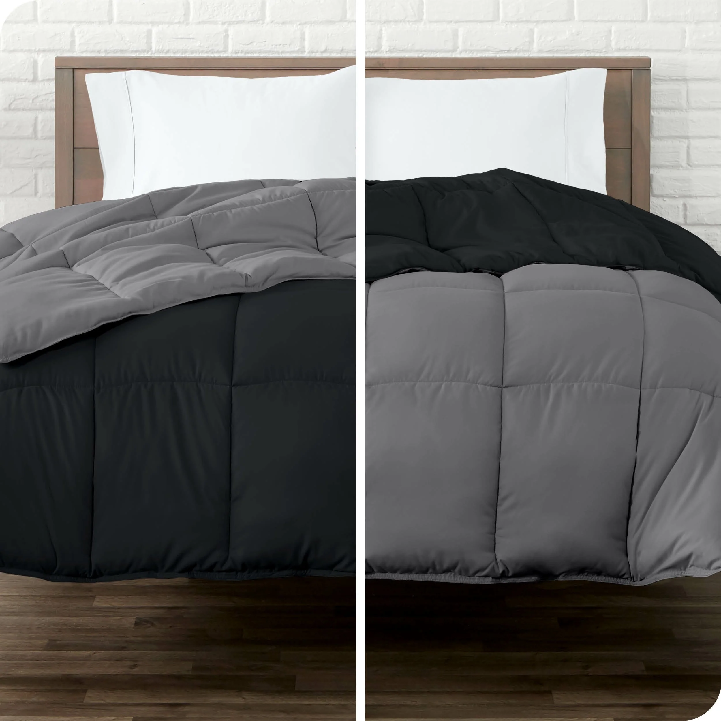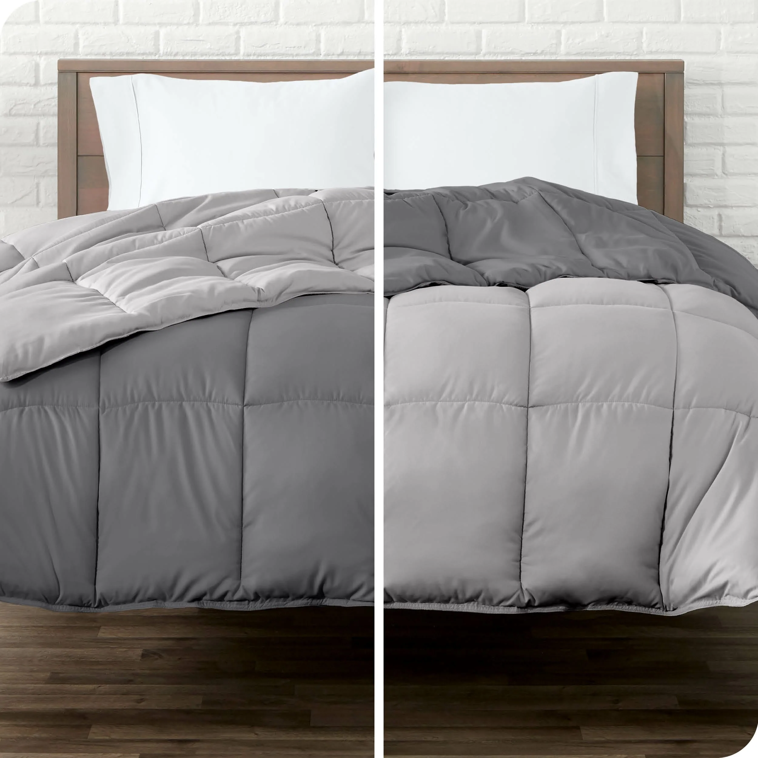 Experience luxury and comfort with the Bare Home Reversible All-season Down Alternative Comforter. The hydro-brushed microfiber material is ultra-soft, while the hypoallergenic down alternative fill is box stitched to keep it evenly distributed. With a reversible design, this comforter allows you to switch up your decor effortlessly.
