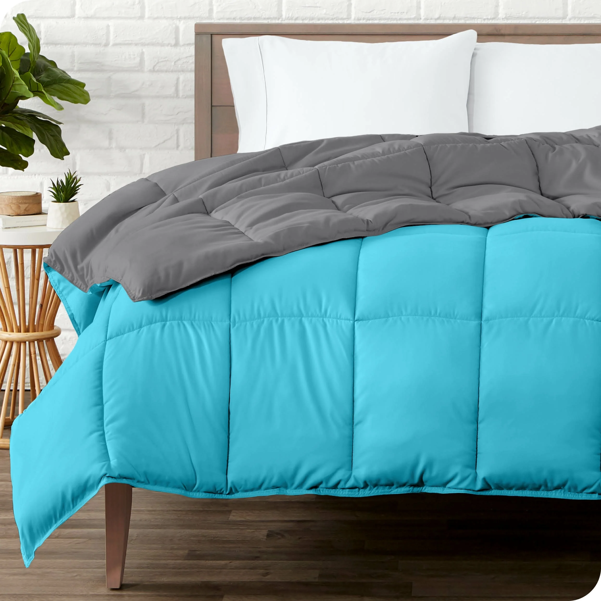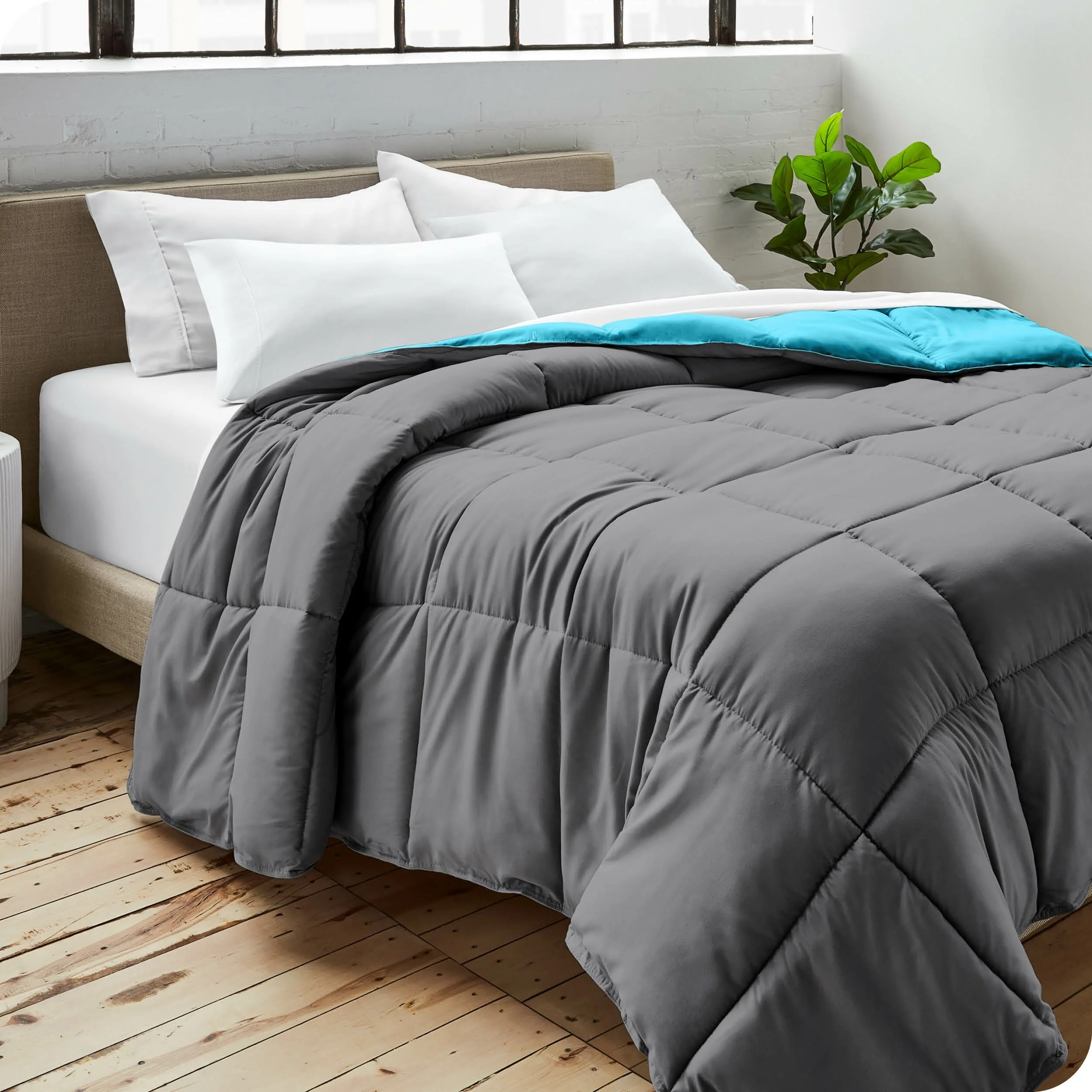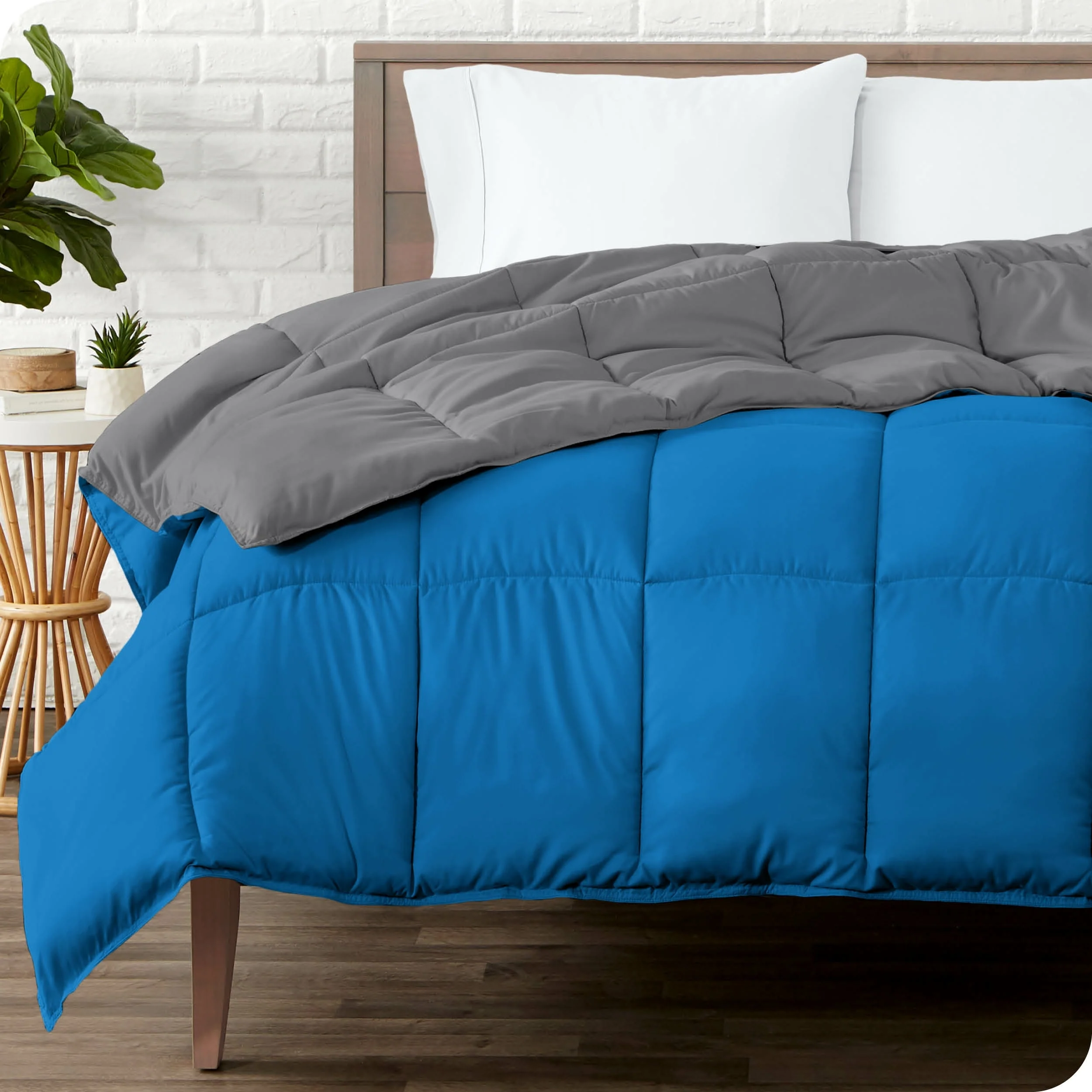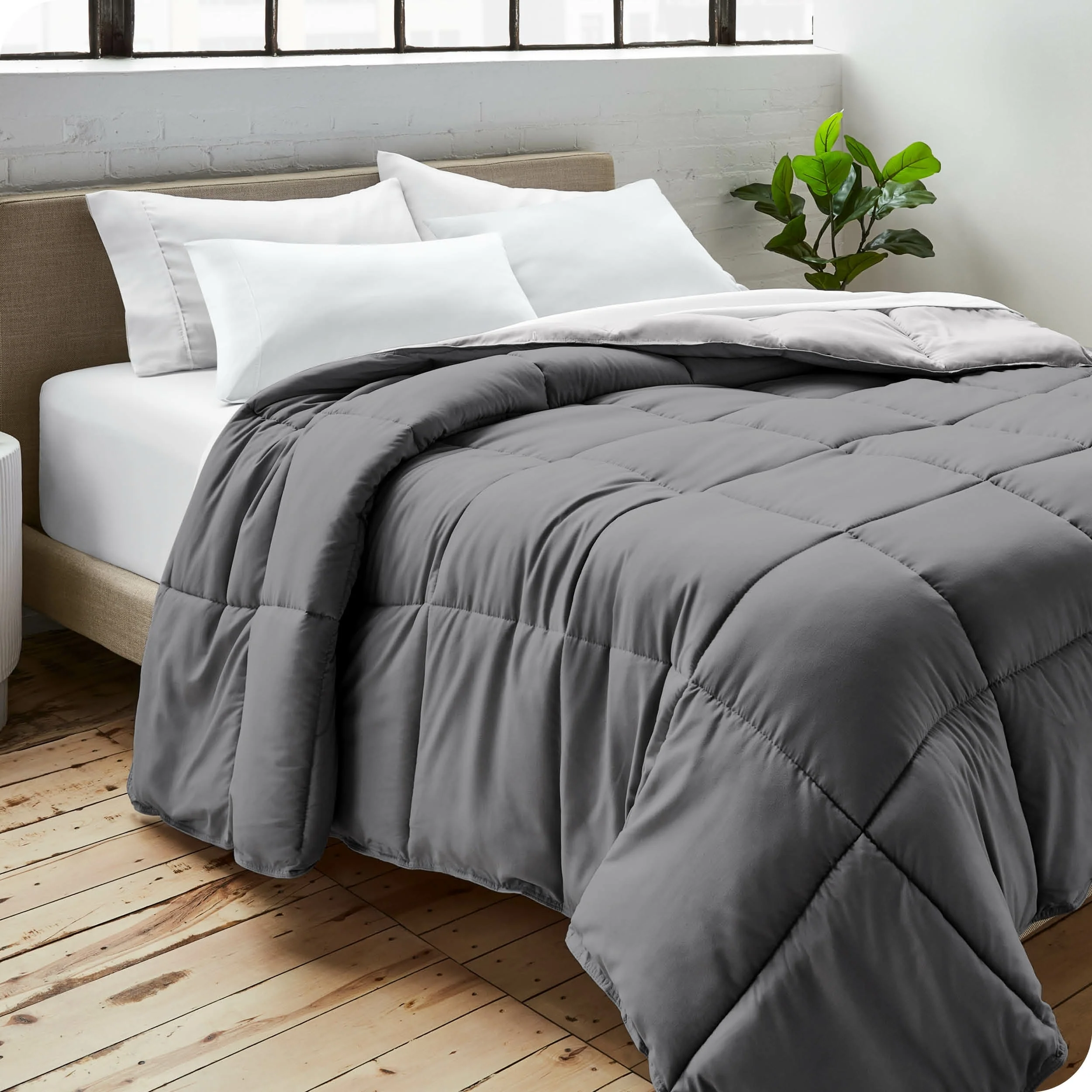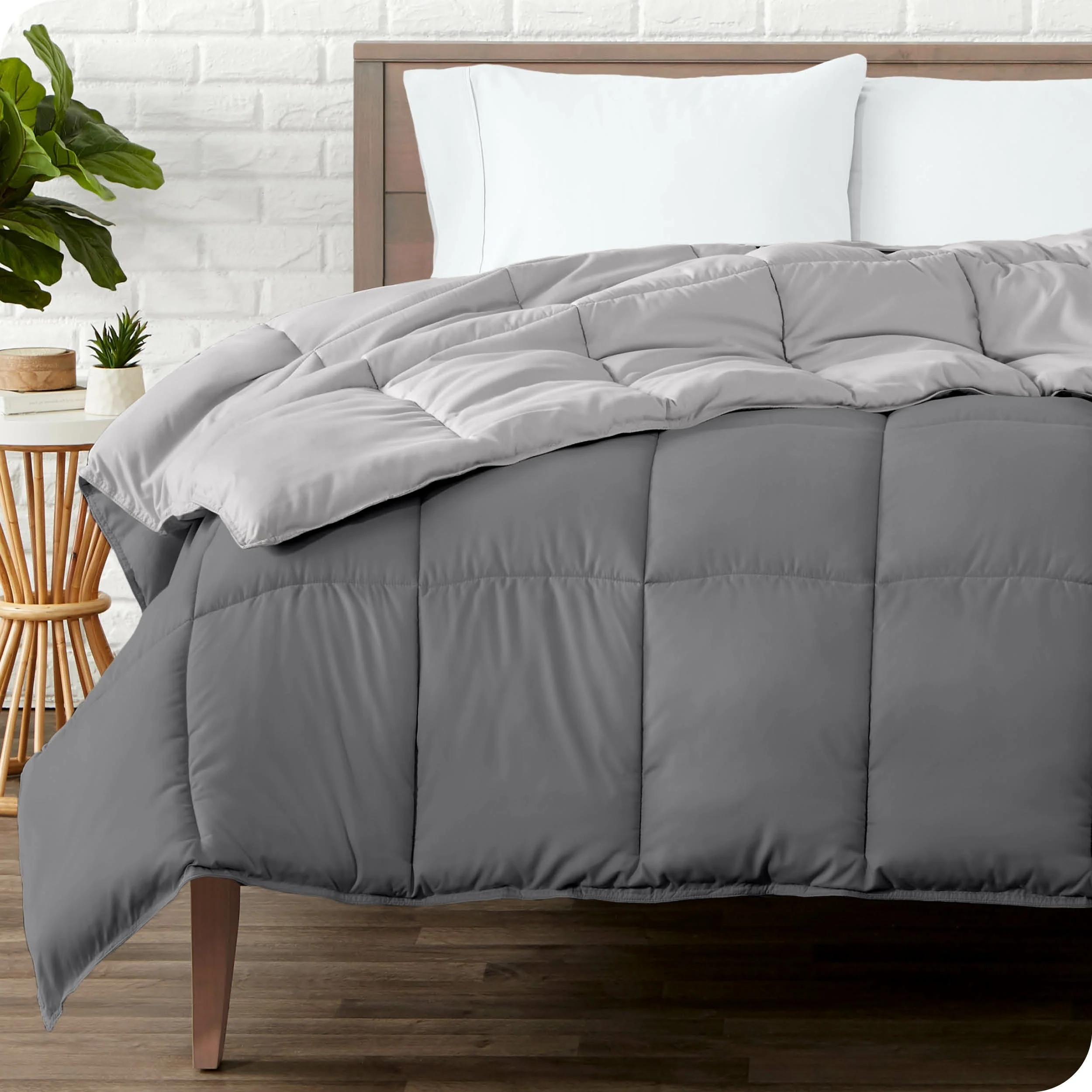 Experience luxury and comfort with the Bare Home Reversible All-season Down Alternative Comforter. The hydro-brushed microfiber material is ultra-soft, while the hypoallergenic down alternative fill is box stitched to keep it evenly distributed. With a reversible design, this comforter allows you to switch up your decor effortlessly.