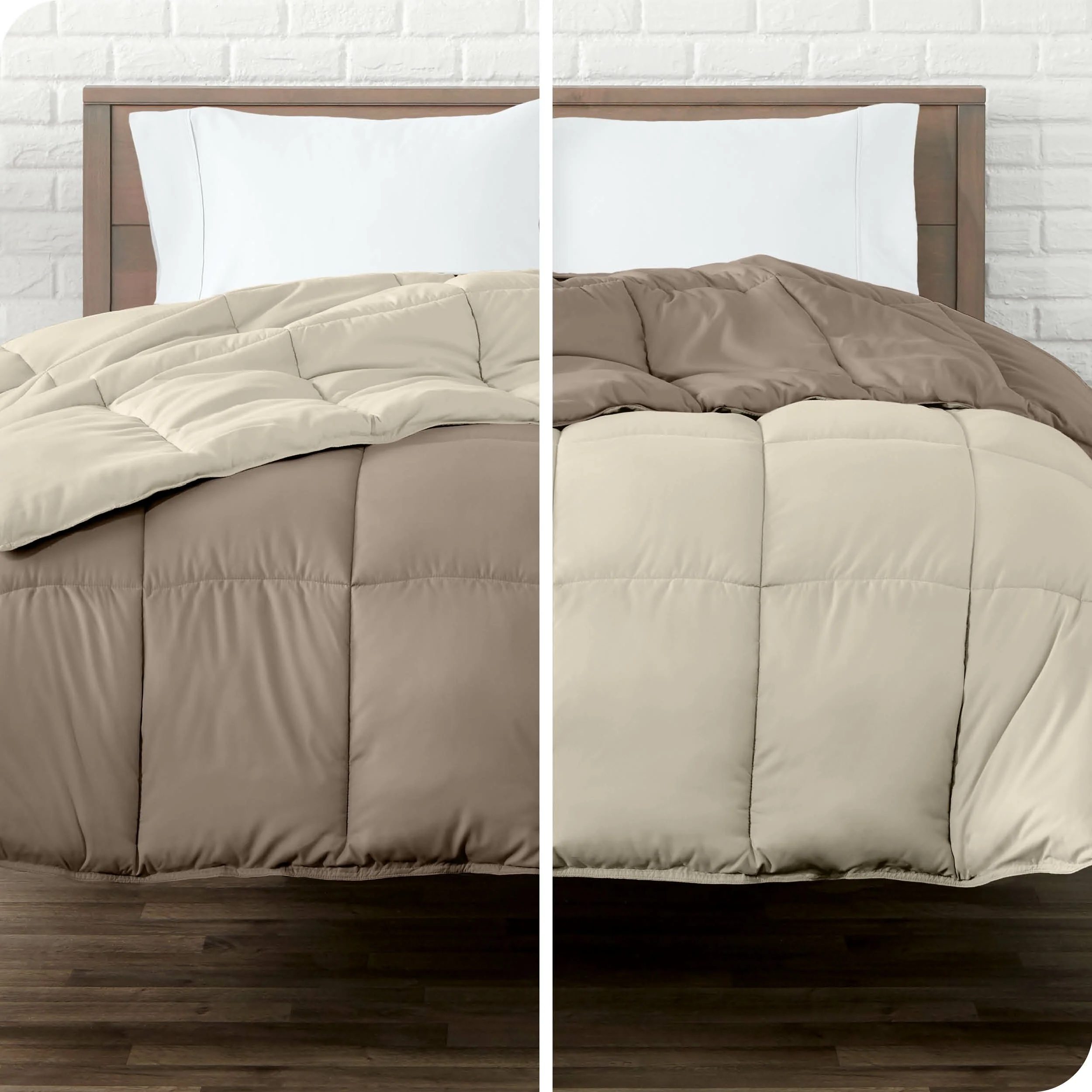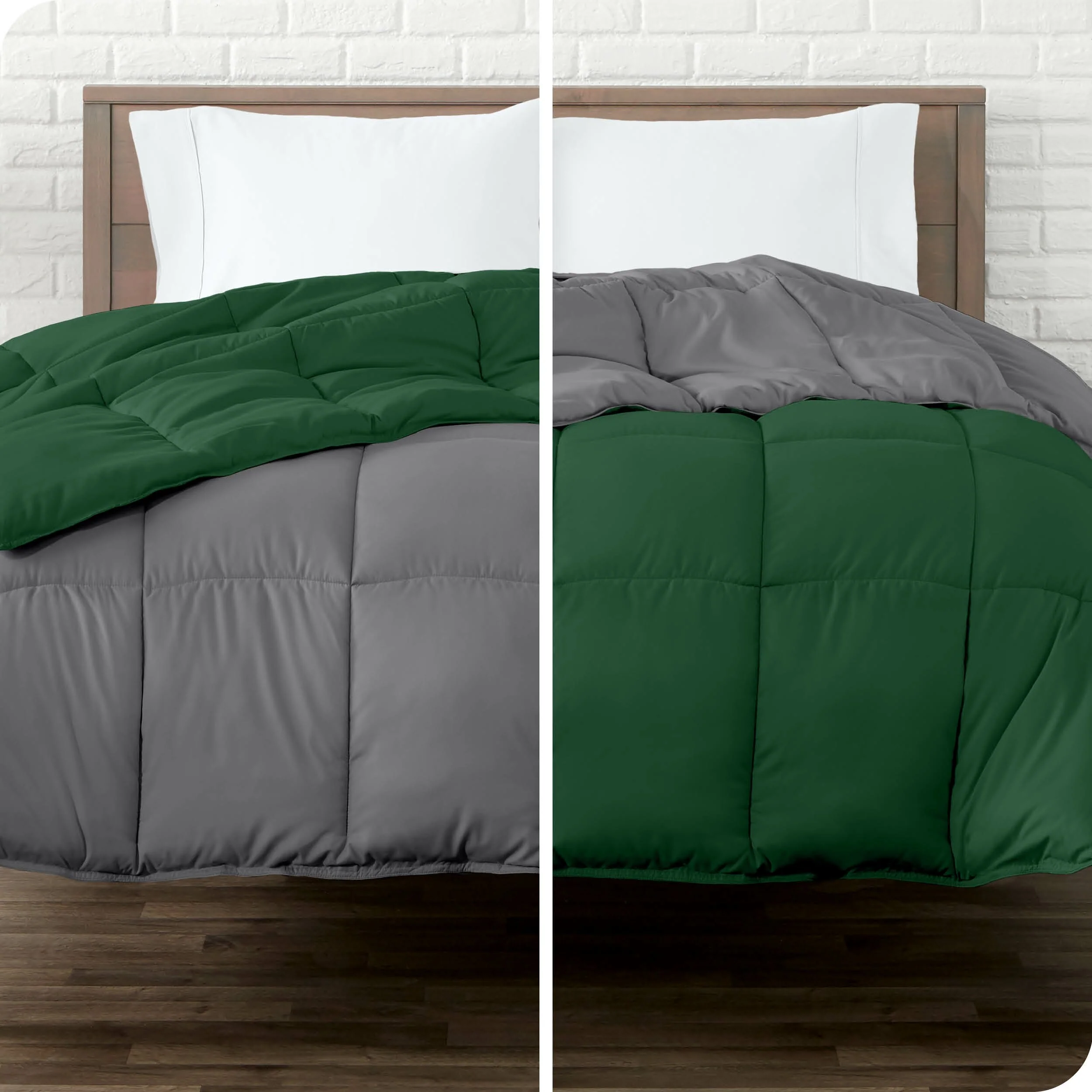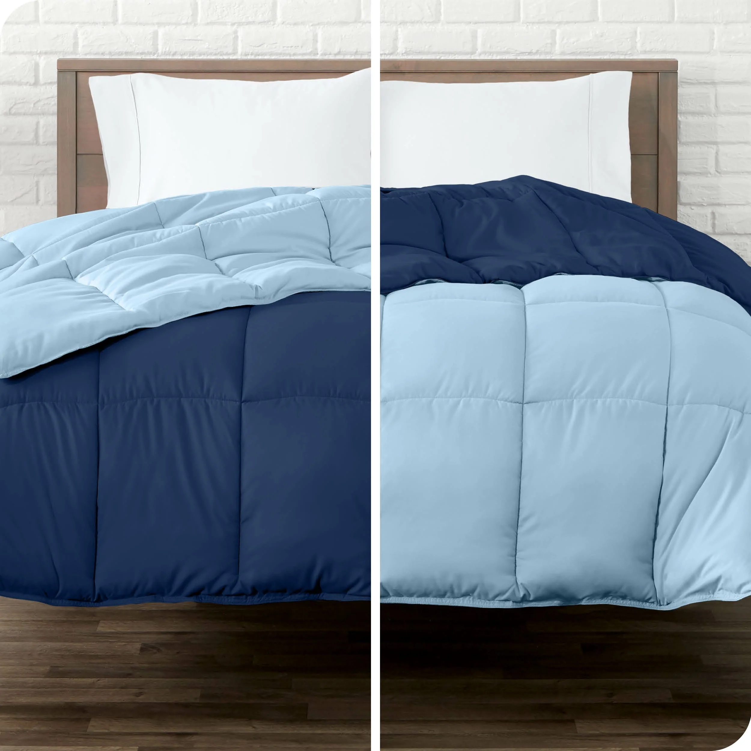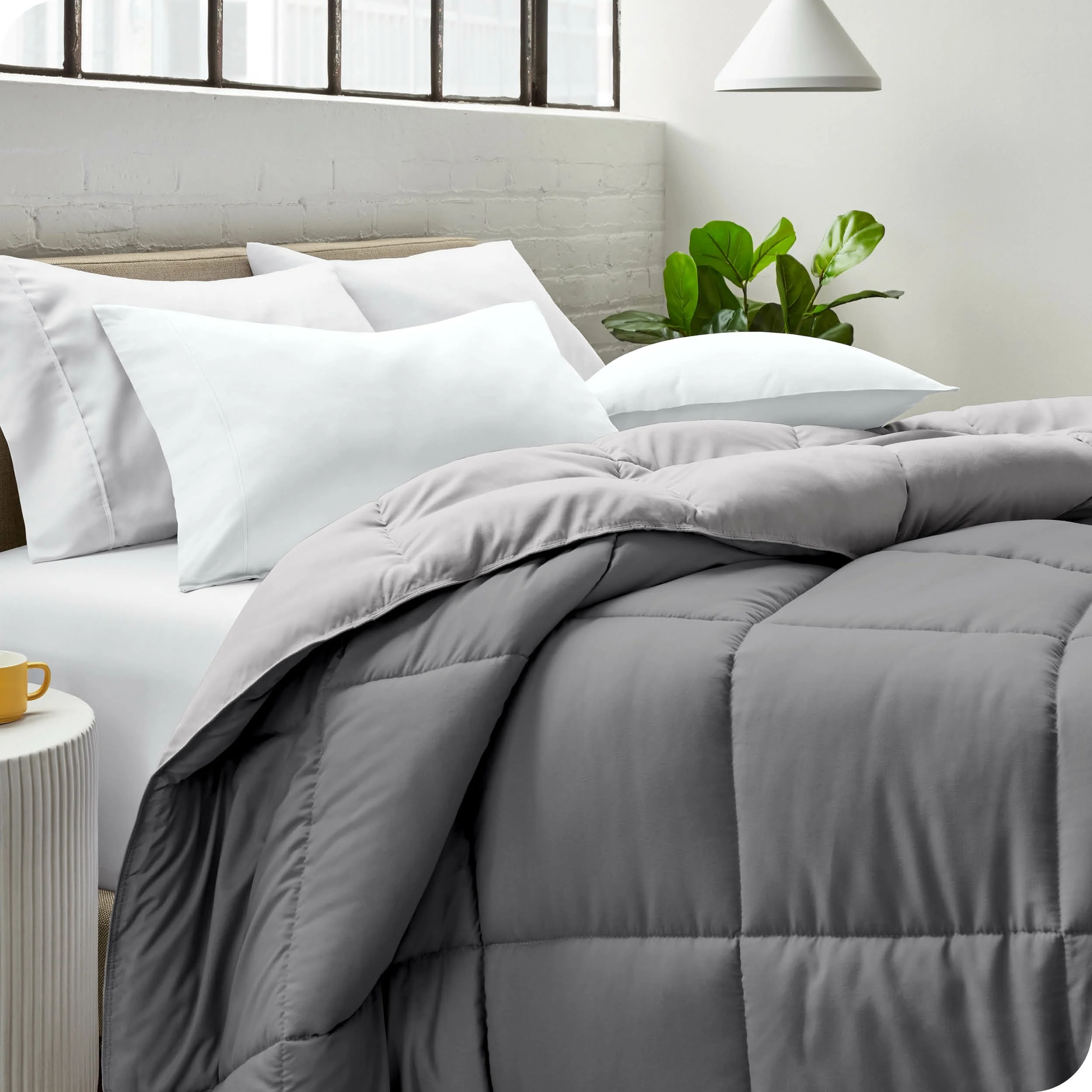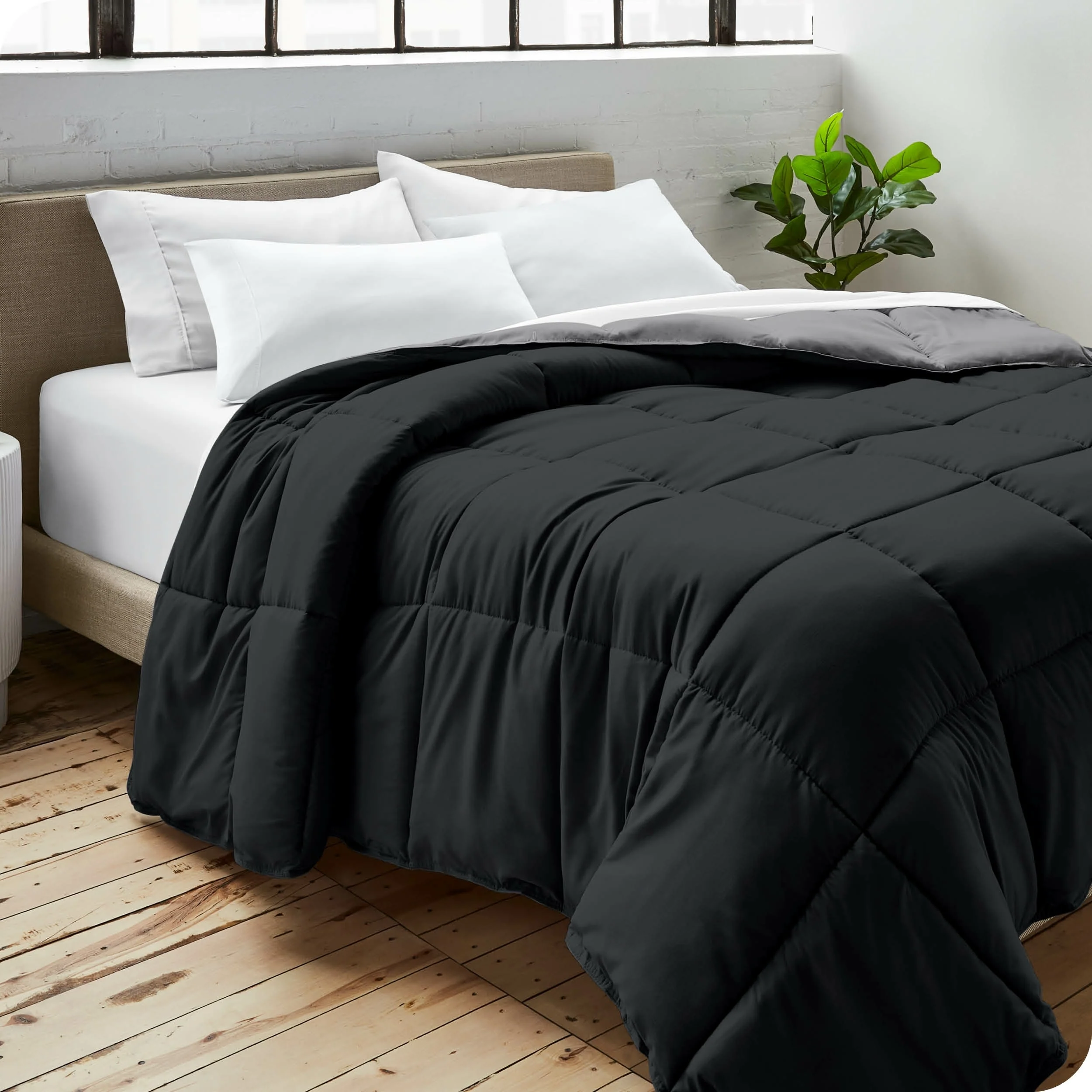 Experience luxury and comfort with the Bare Home Reversible All-season Down Alternative Comforter. The hydro-brushed microfiber material is ultra-soft, while the hypoallergenic down alternative fill is box stitched to keep it evenly distributed. With a reversible design, this comforter allows you to switch up your decor effortlessly.