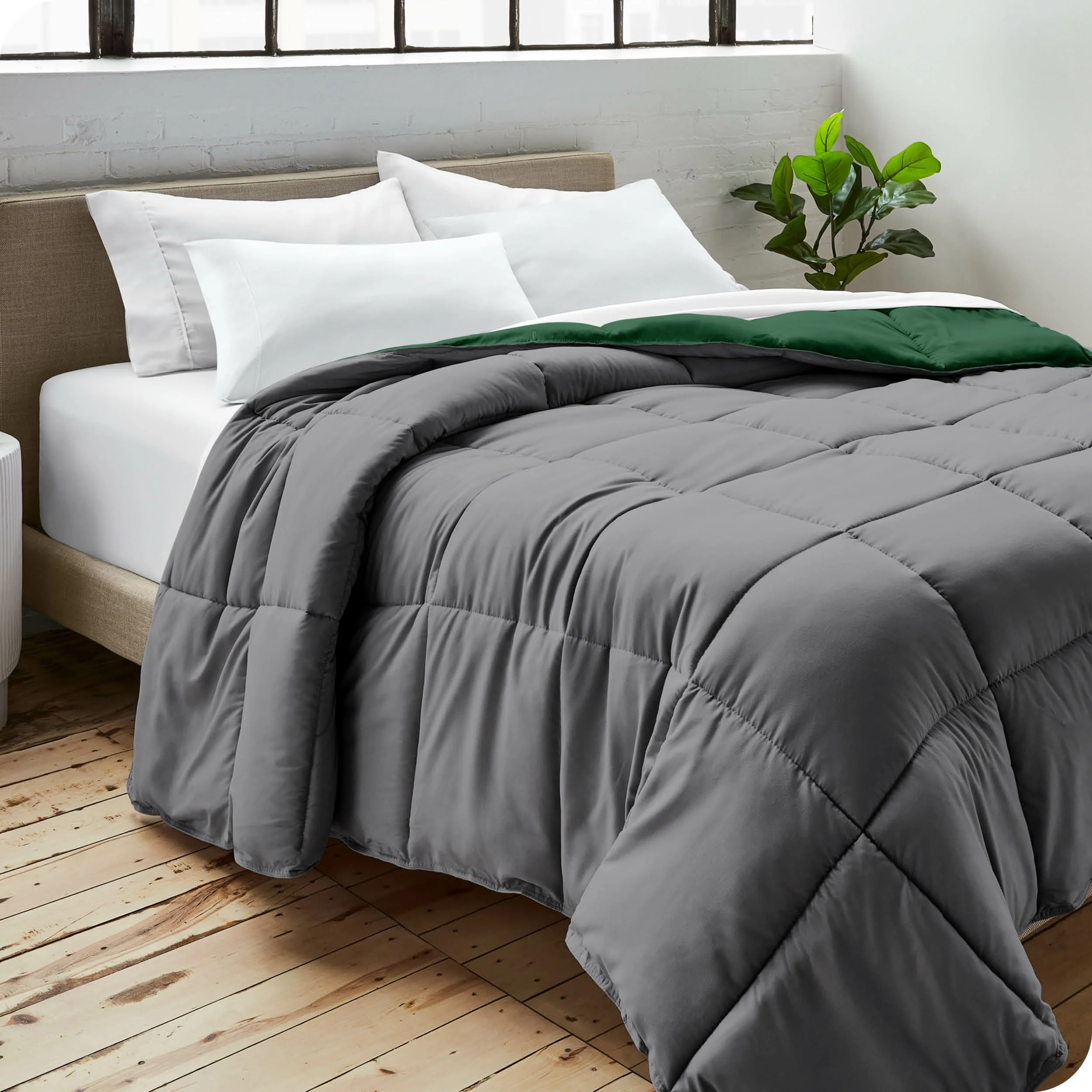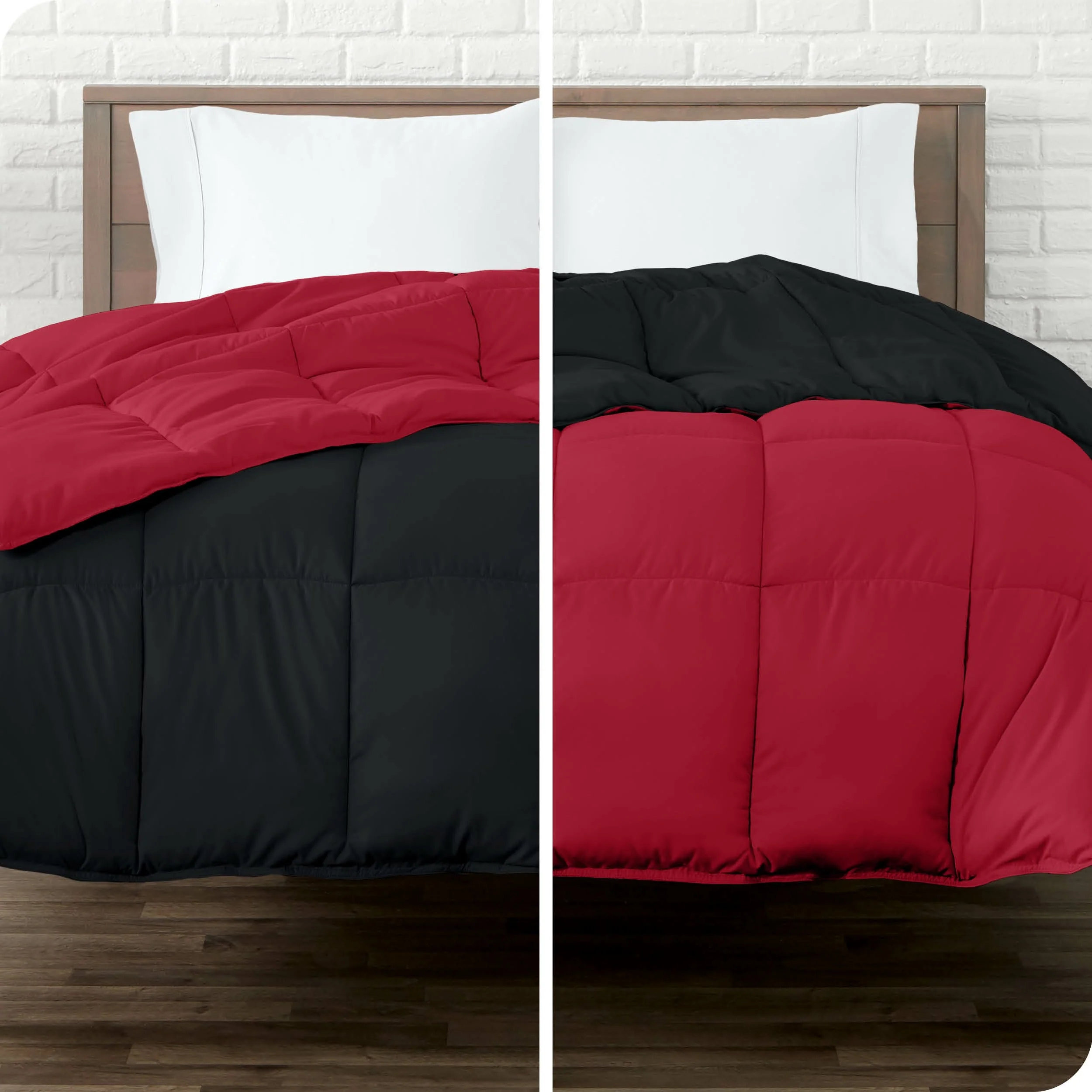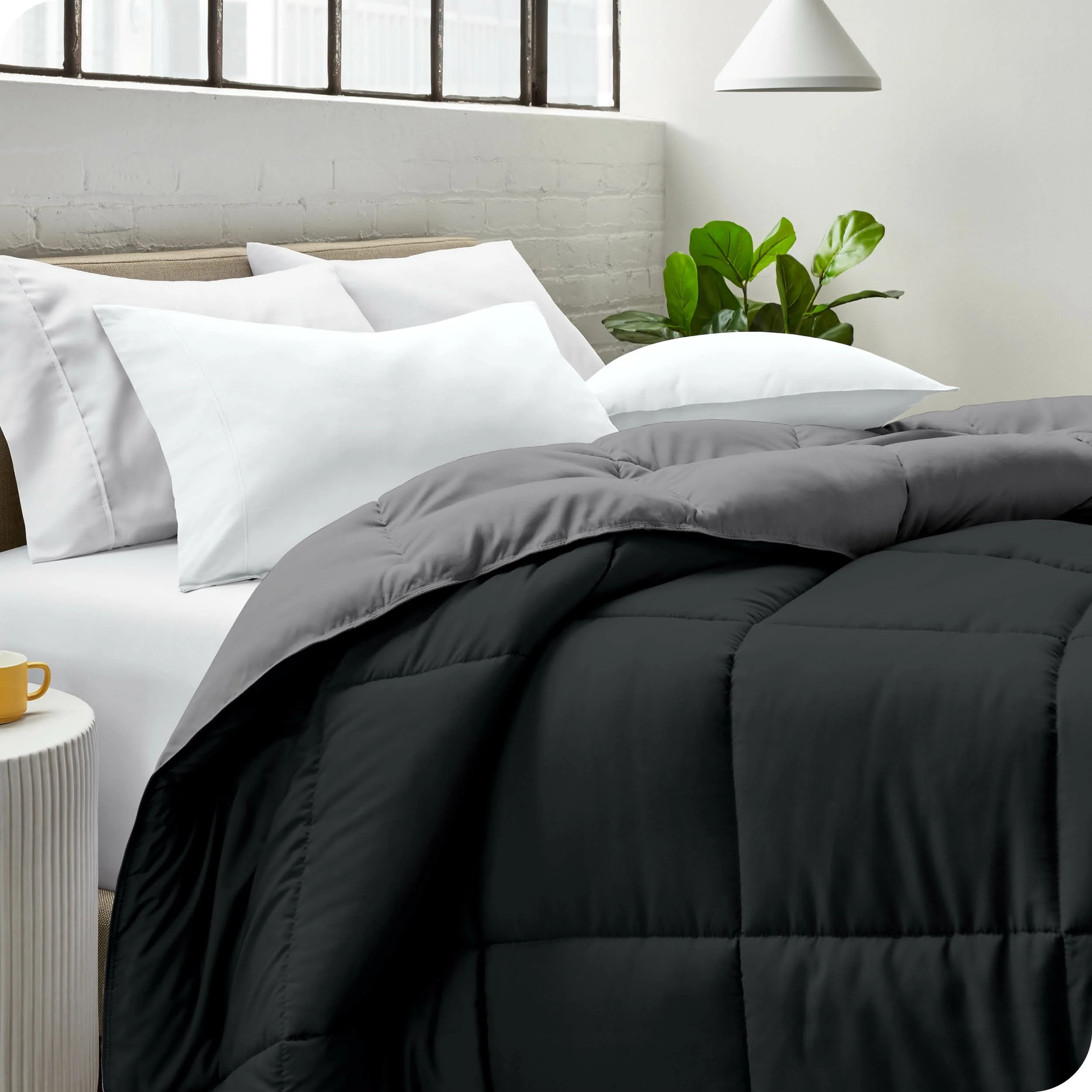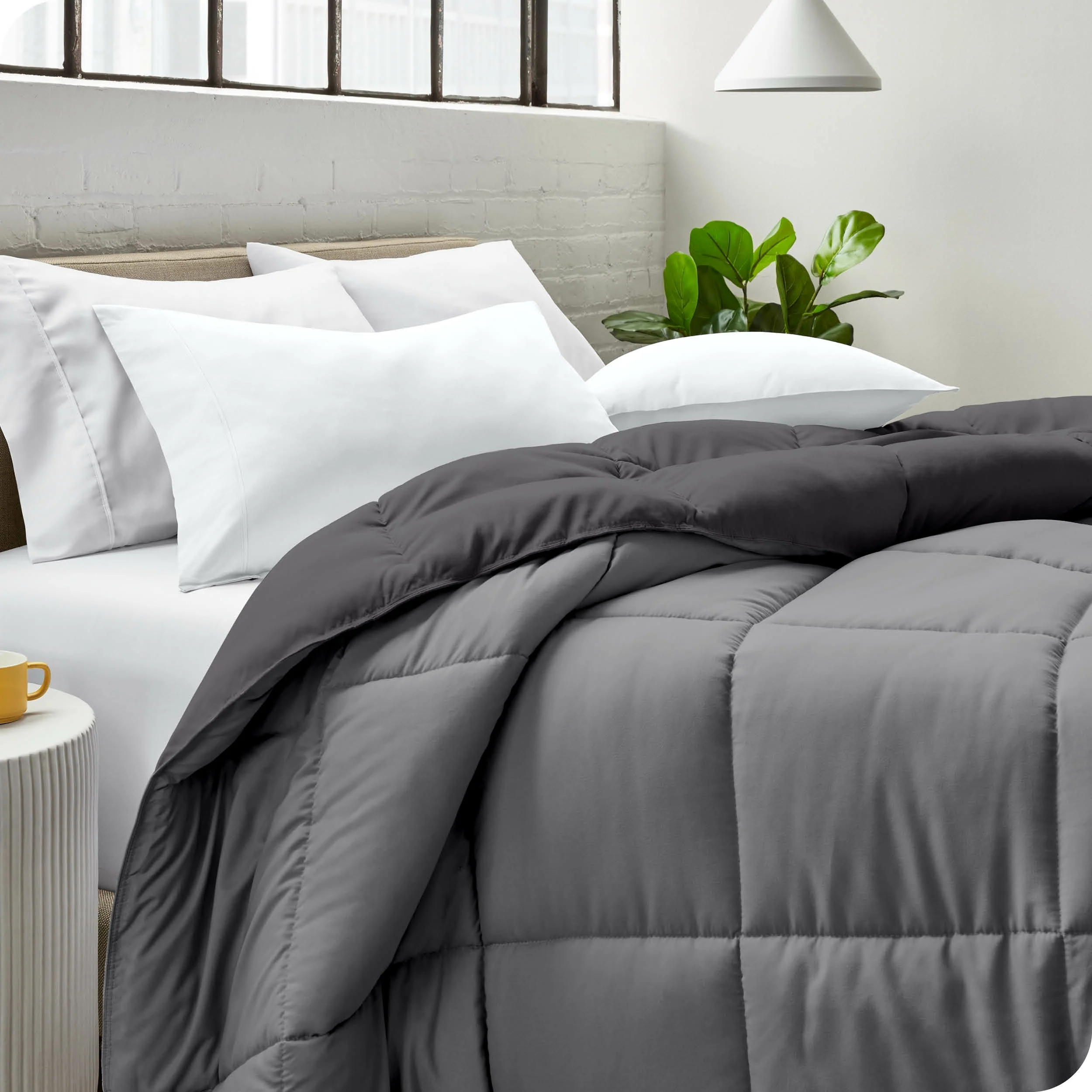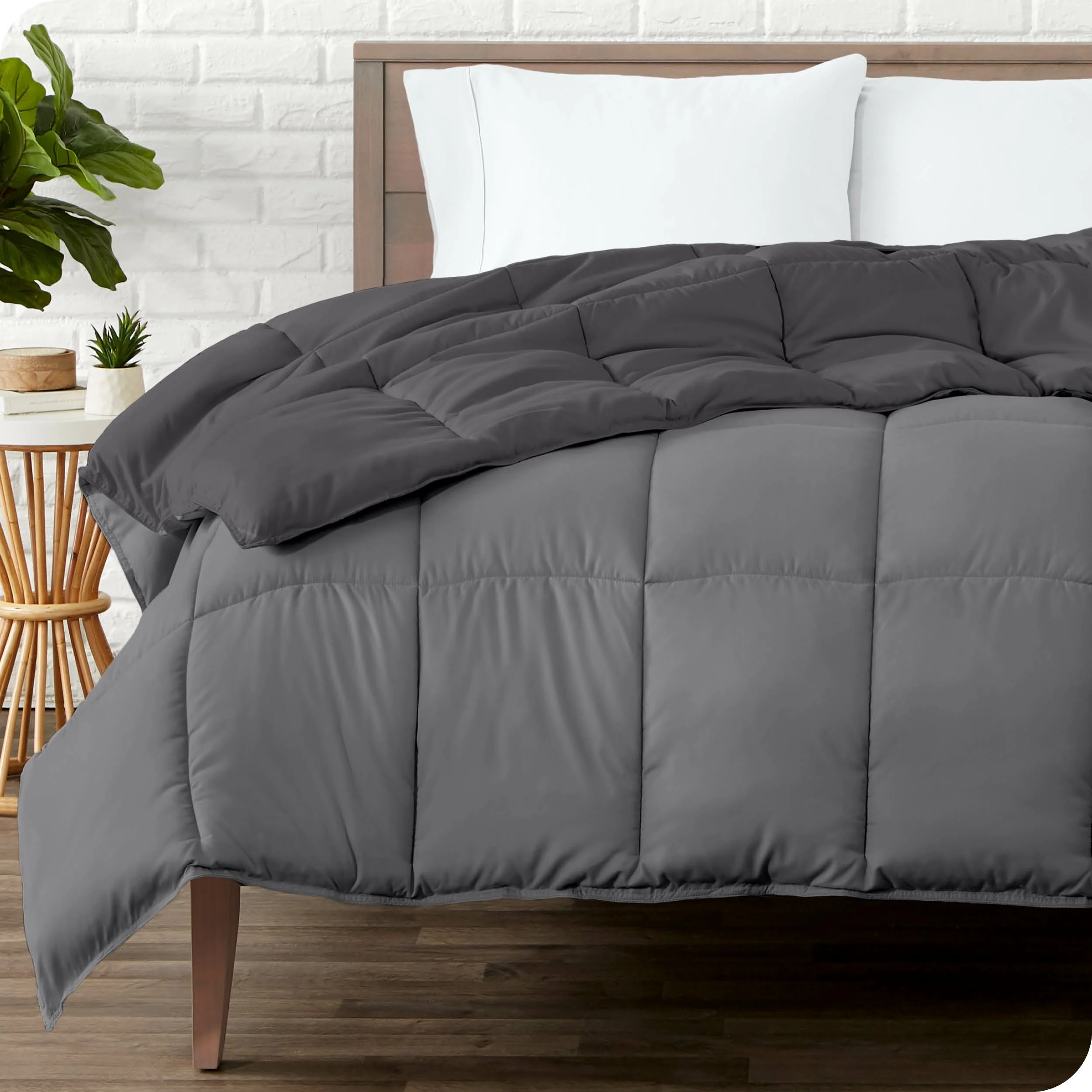 Experience luxury and comfort with the Bare Home Reversible All-season Down Alternative Comforter. The hydro-brushed microfiber material is ultra-soft, while the hypoallergenic down alternative fill is box stitched to keep it evenly distributed. With a reversible design, this comforter allows you to switch up your decor effortlessly.