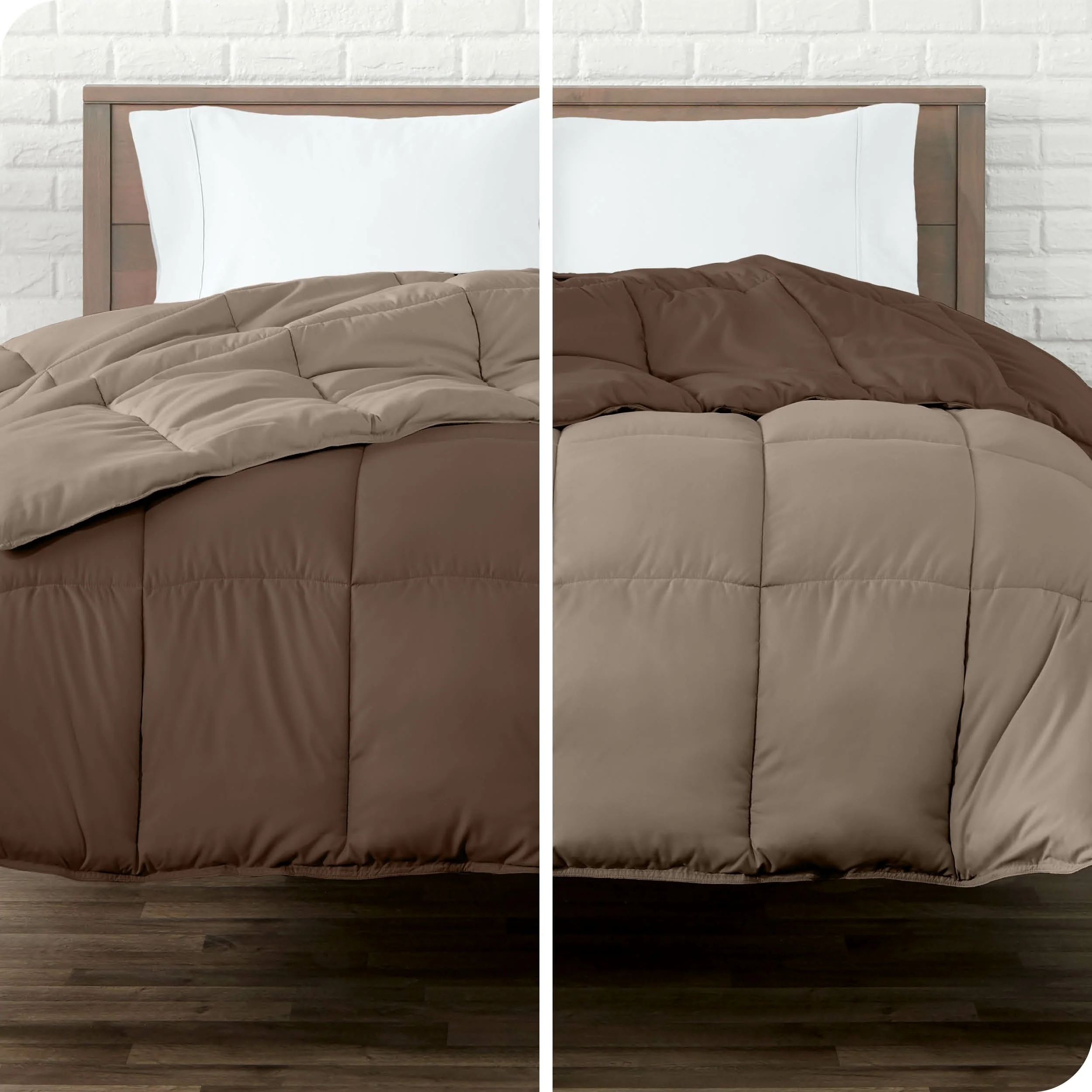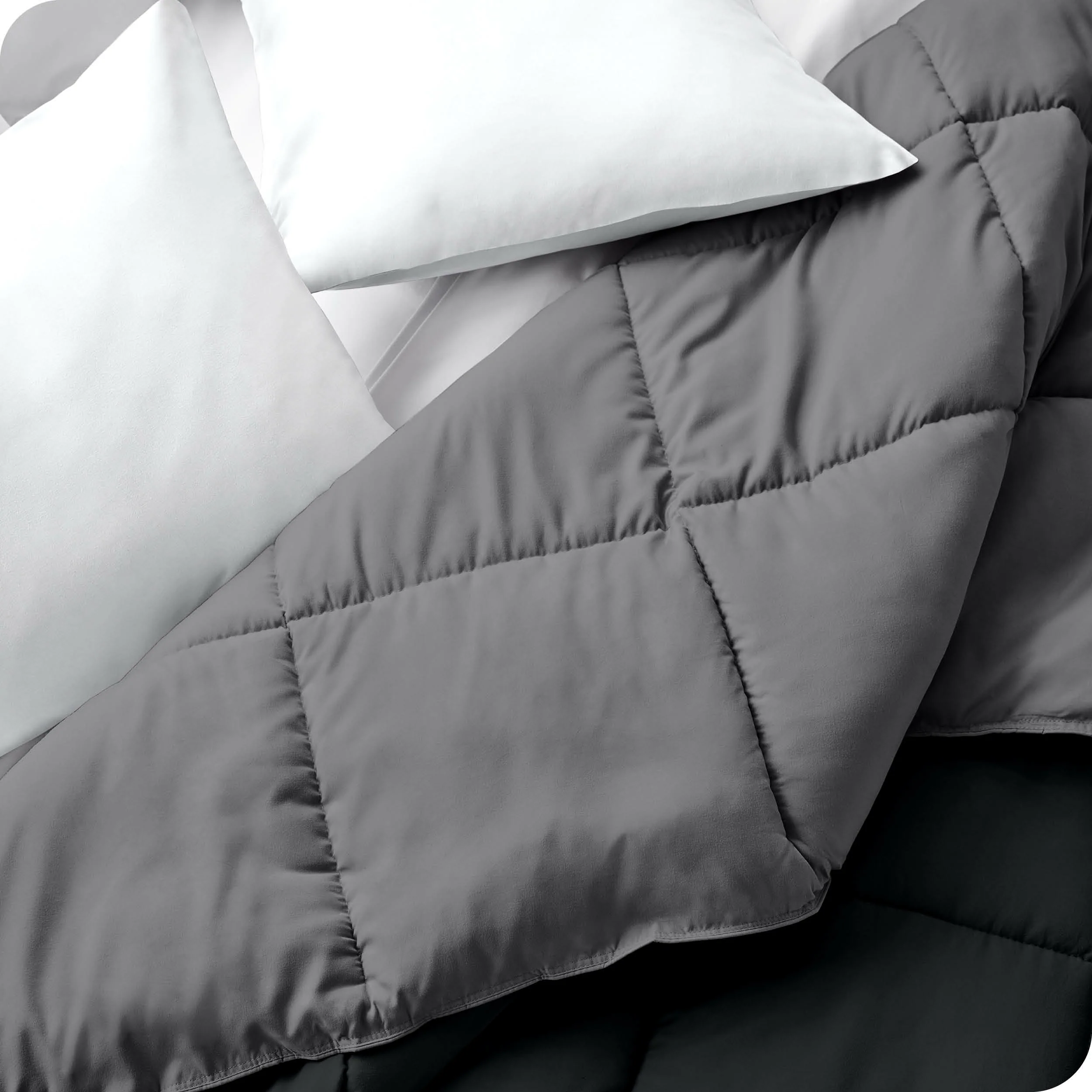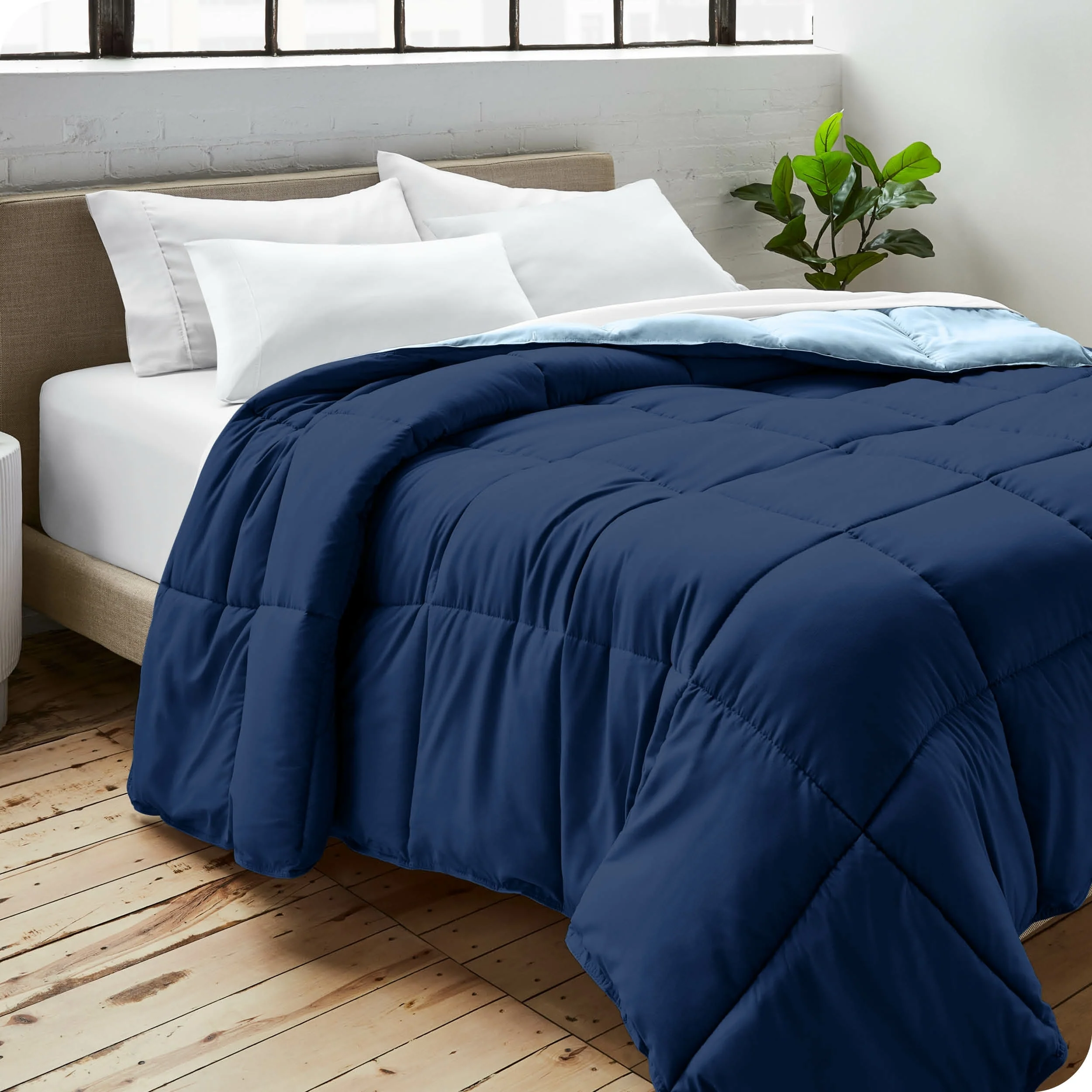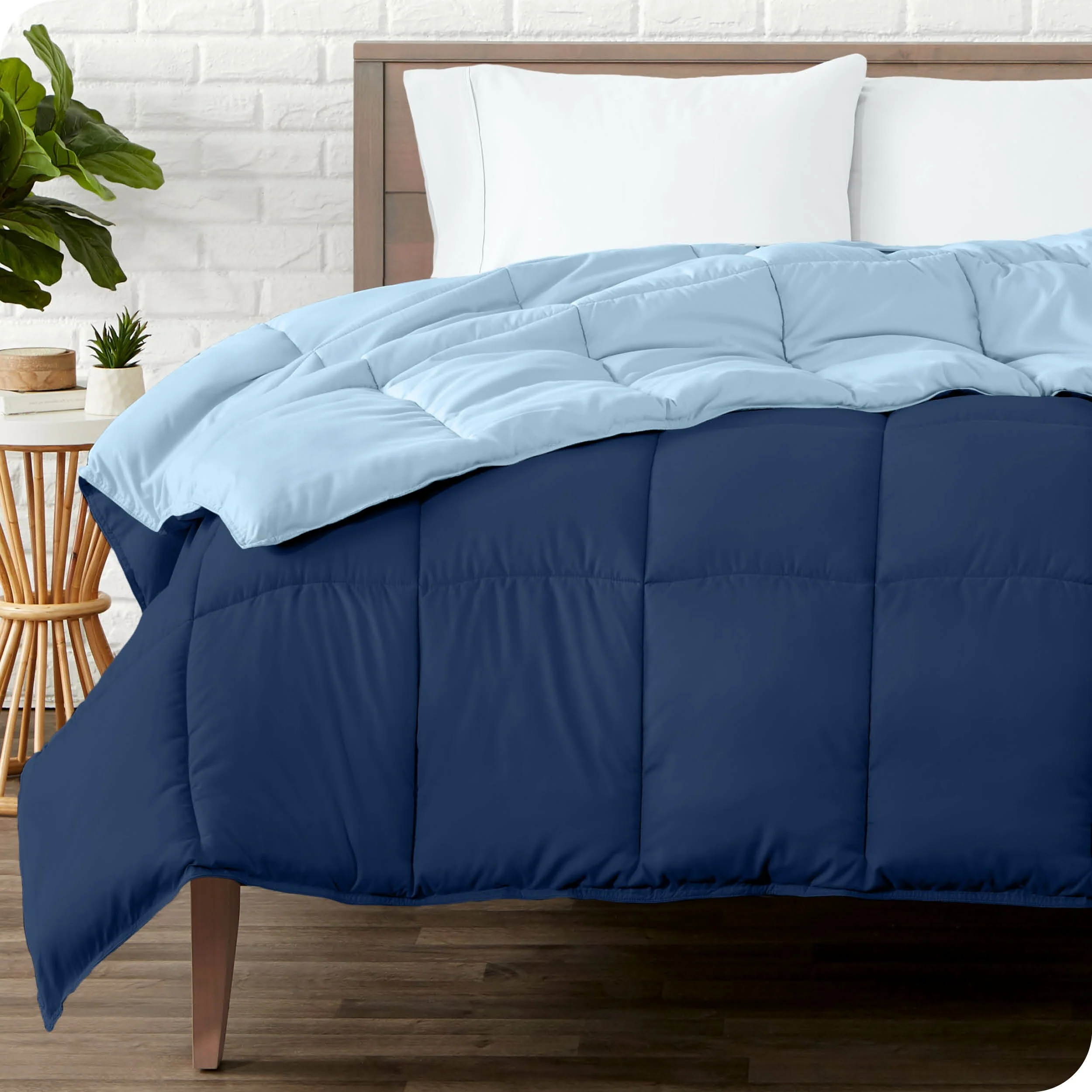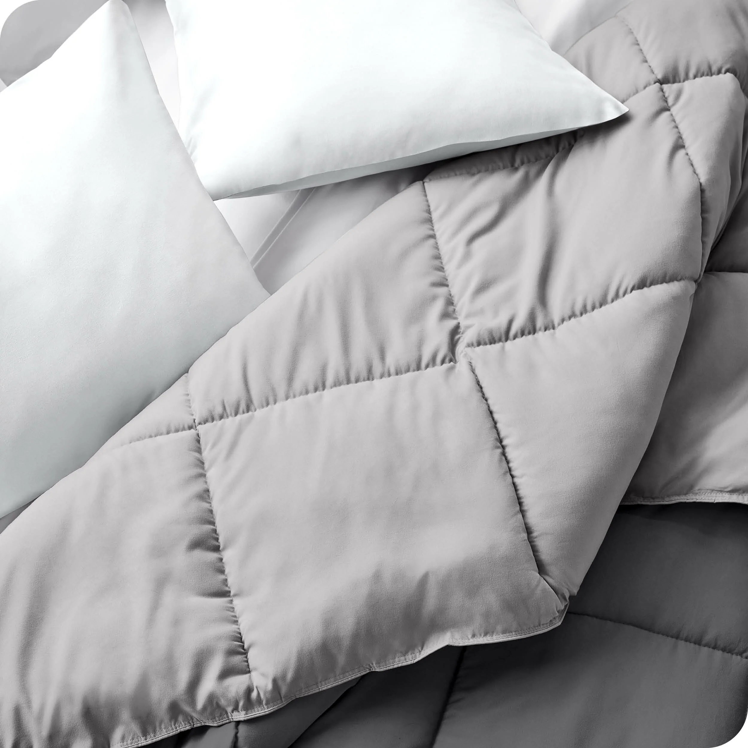 Experience luxury and comfort with the Bare Home Reversible All-season Down Alternative Comforter. The hydro-brushed microfiber material is ultra-soft, while the hypoallergenic down alternative fill is box stitched to keep it evenly distributed. With a reversible design, this comforter allows you to switch up your decor effortlessly.
