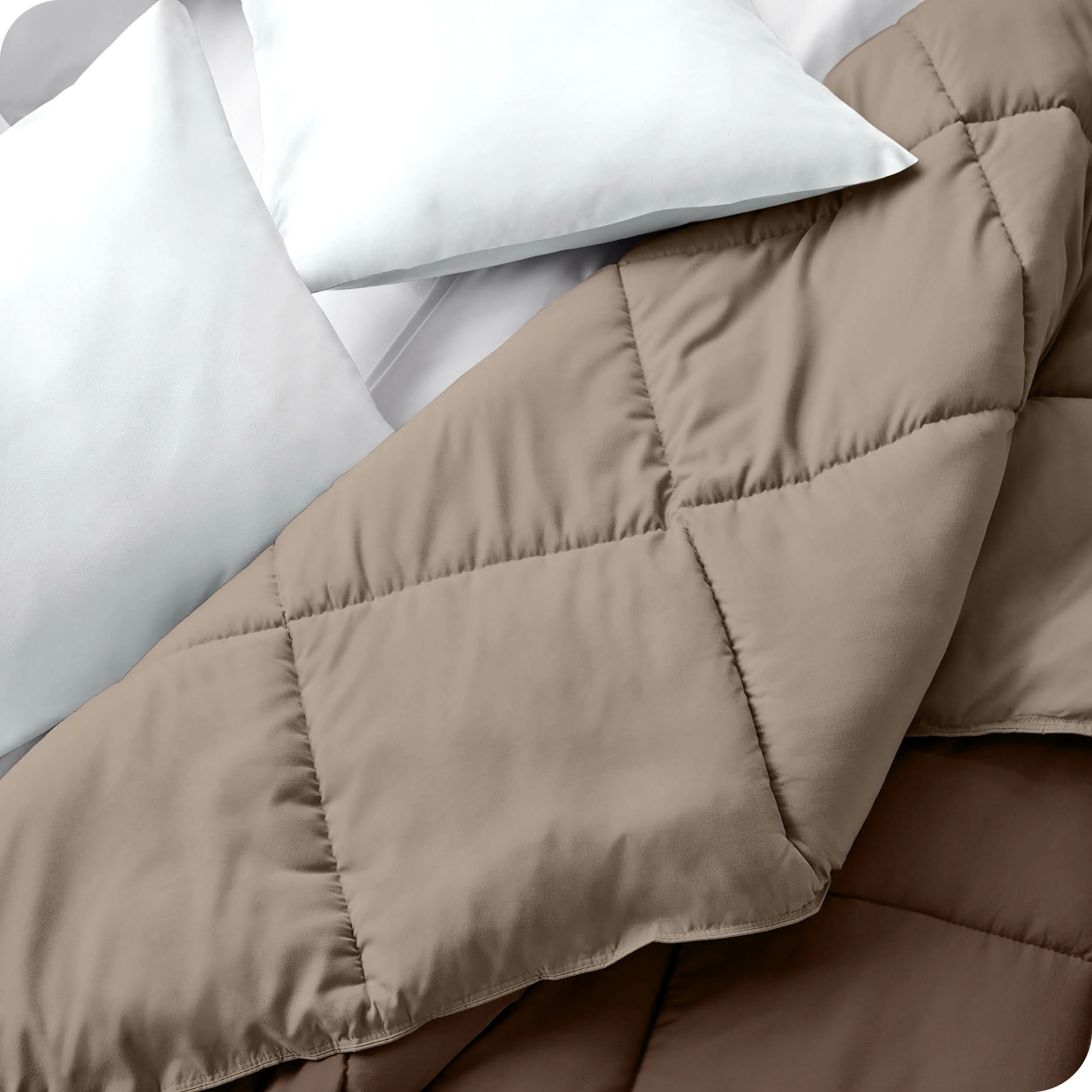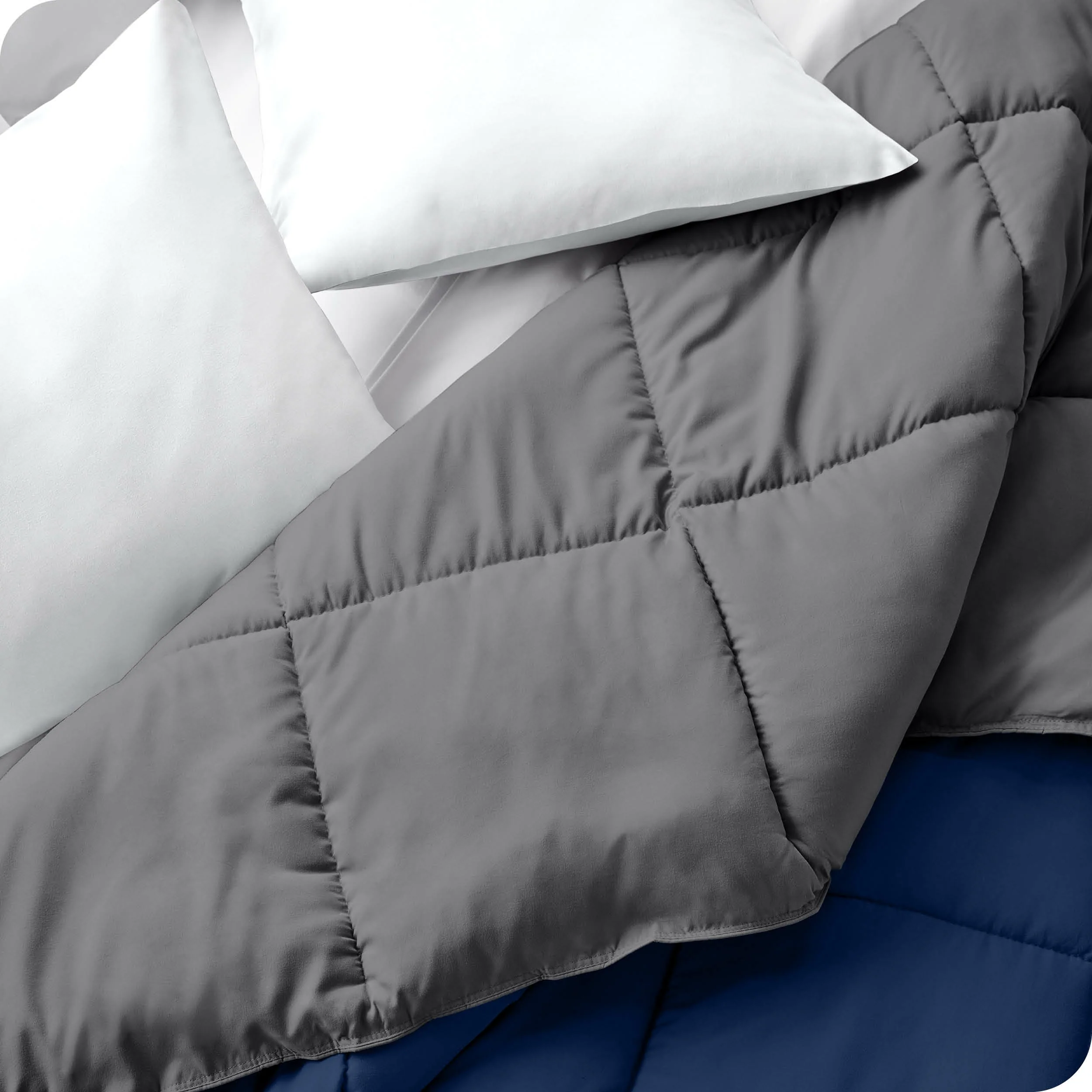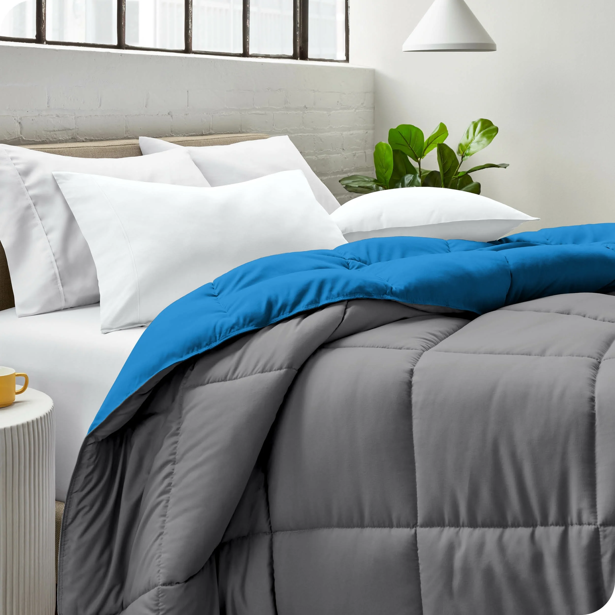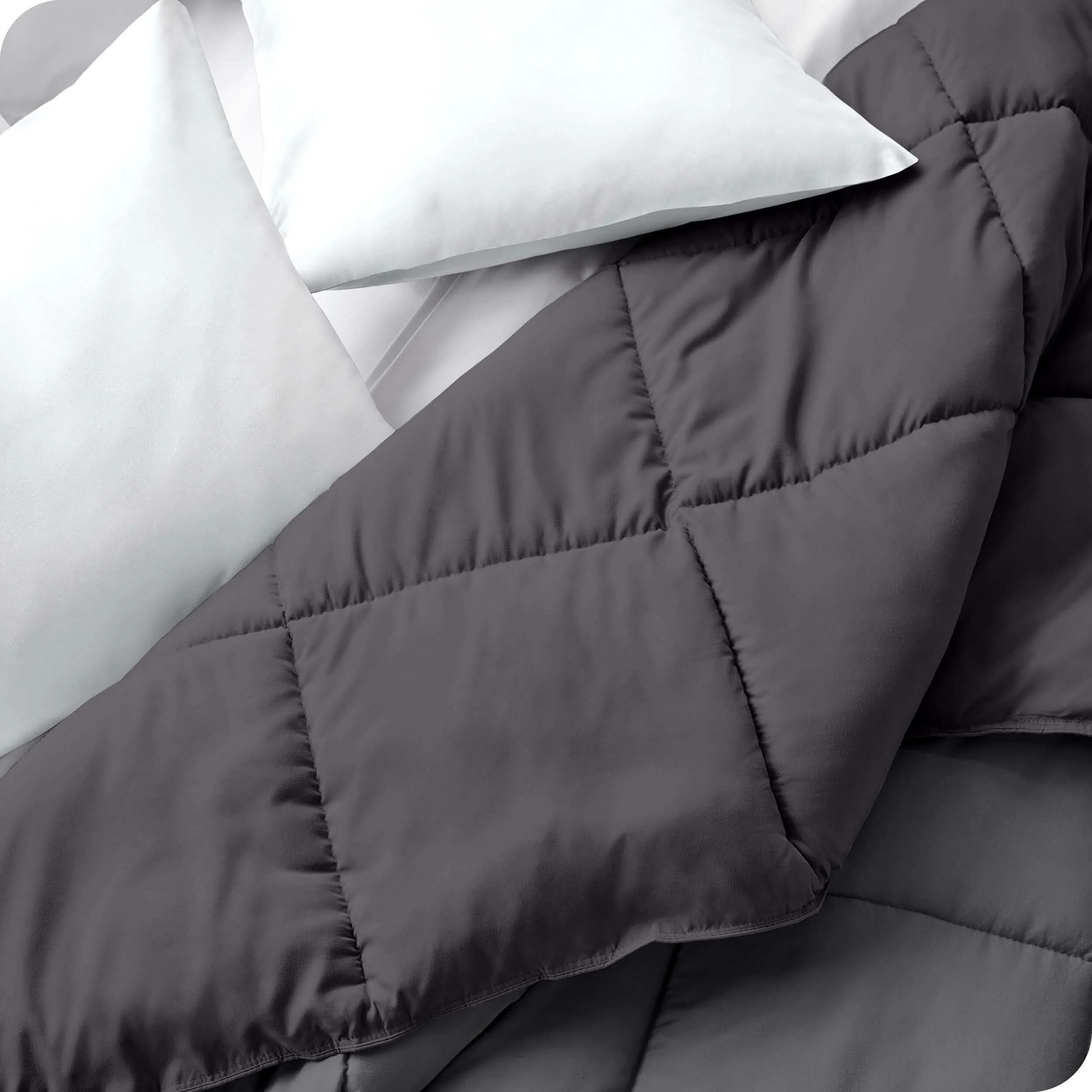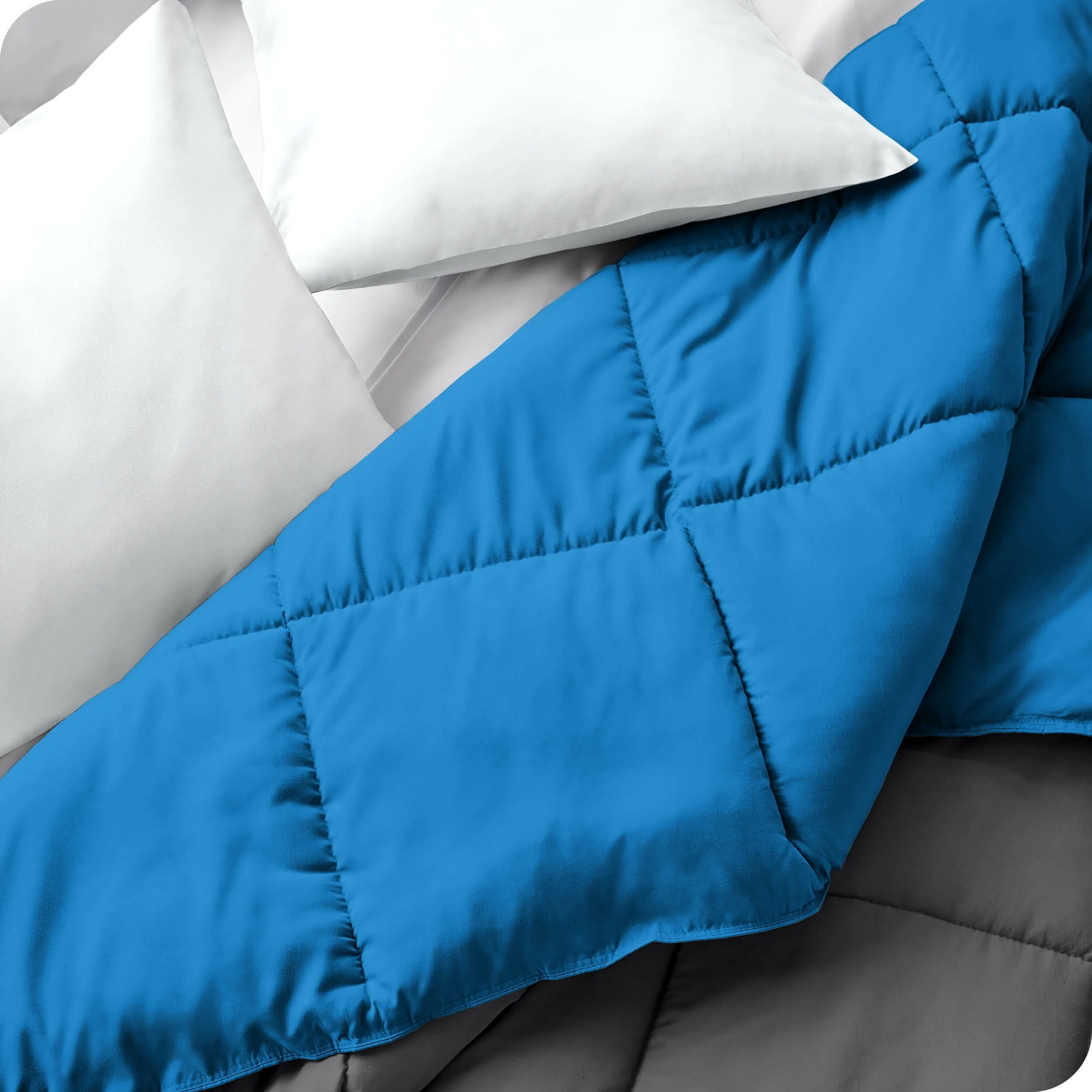 Experience luxury and comfort with the Bare Home Reversible All-season Down Alternative Comforter. The hydro-brushed microfiber material is ultra-soft, while the hypoallergenic down alternative fill is box stitched to keep it evenly distributed. With a reversible design, this comforter allows you to switch up your decor effortlessly.