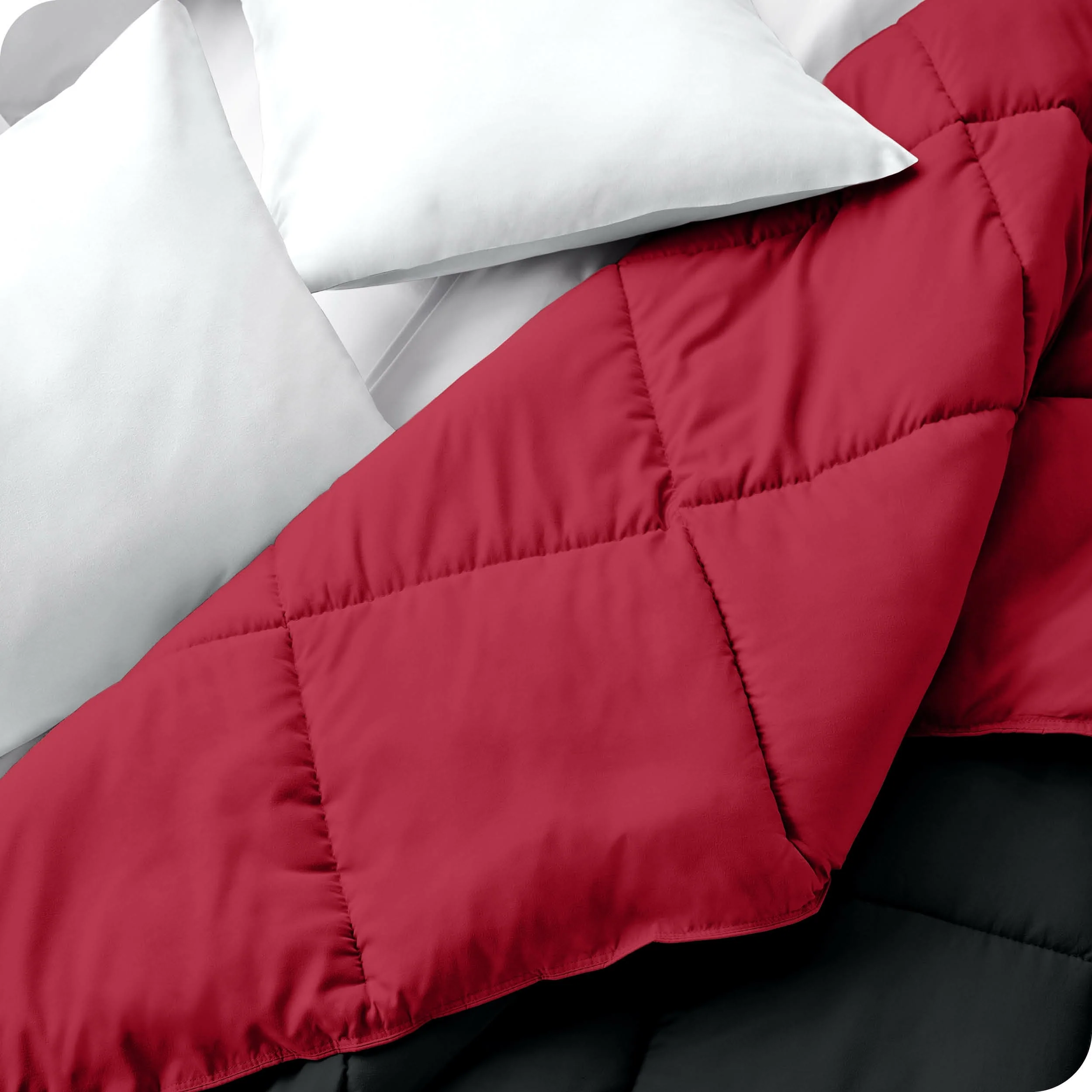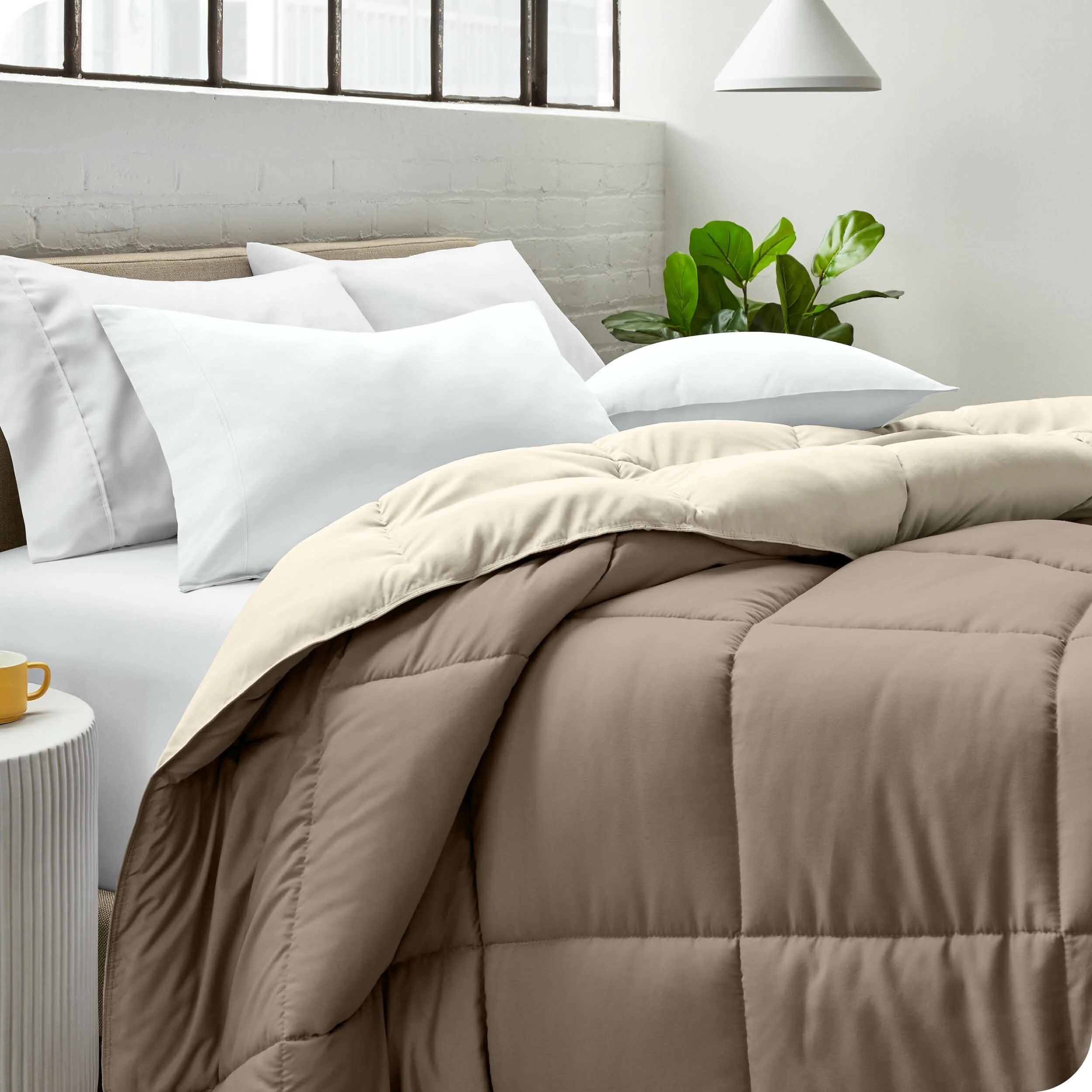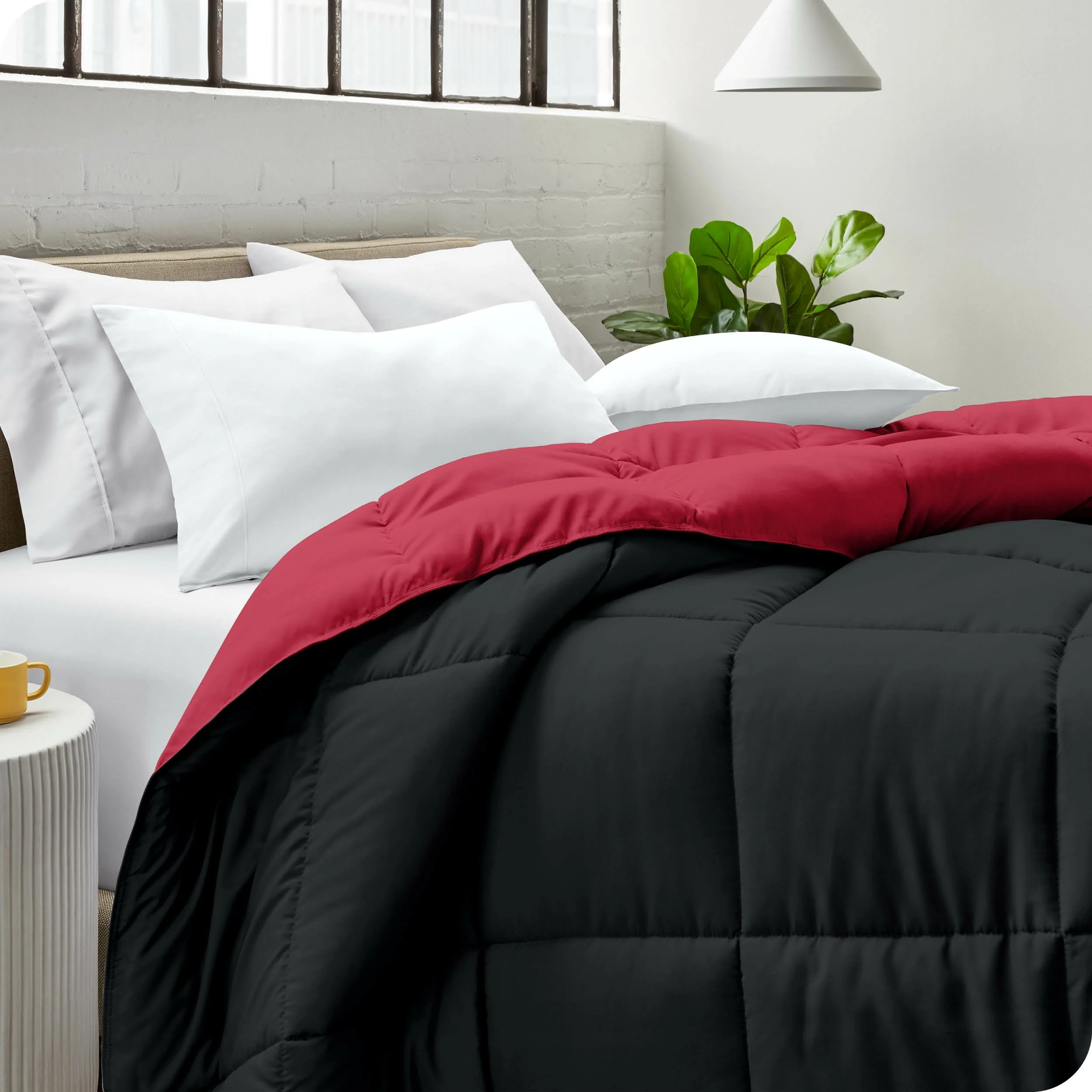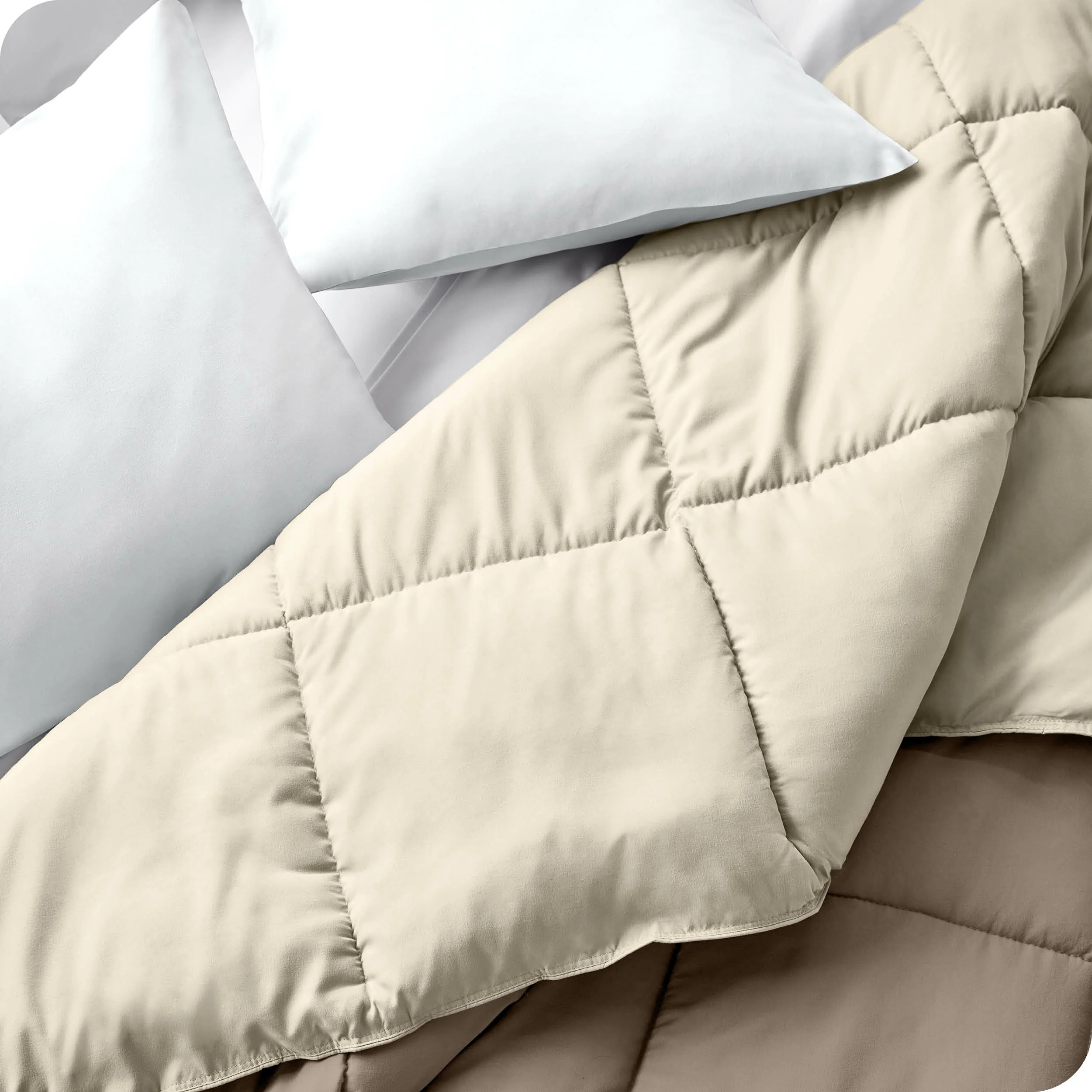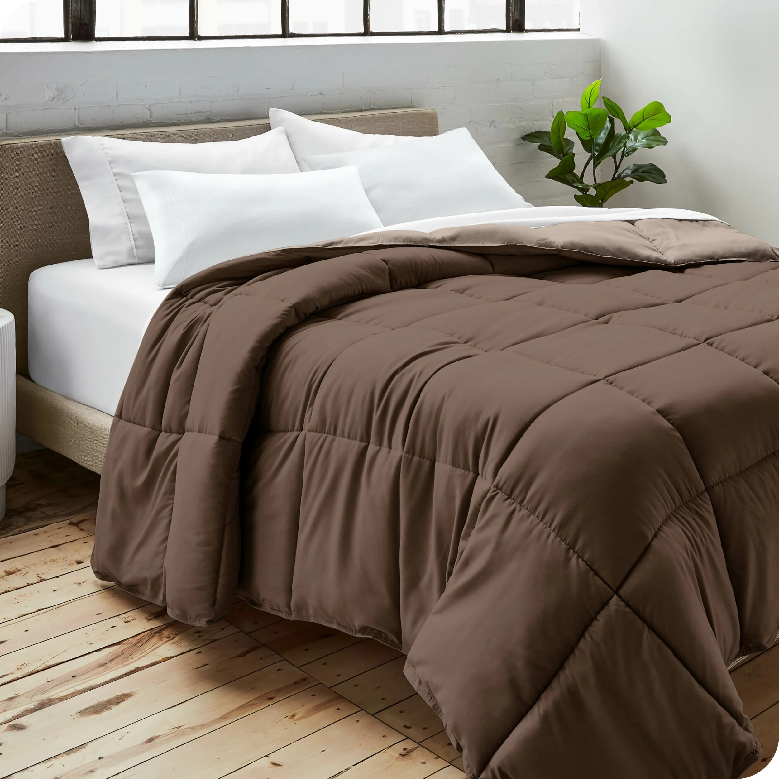 Experience luxury and comfort with the Bare Home Reversible All-season Down Alternative Comforter. The hydro-brushed microfiber material is ultra-soft, while the hypoallergenic down alternative fill is box stitched to keep it evenly distributed. With a reversible design, this comforter allows you to switch up your decor effortlessly.