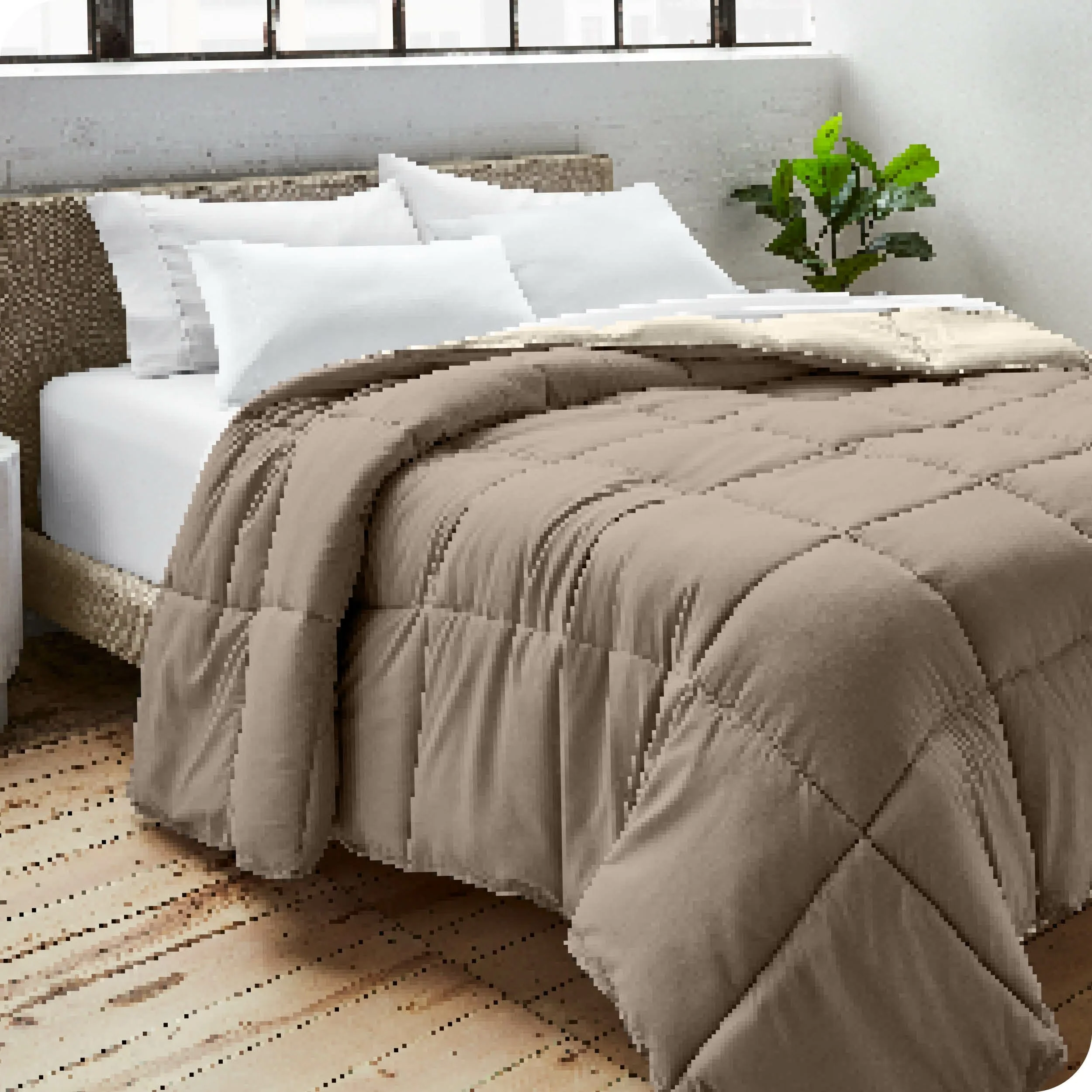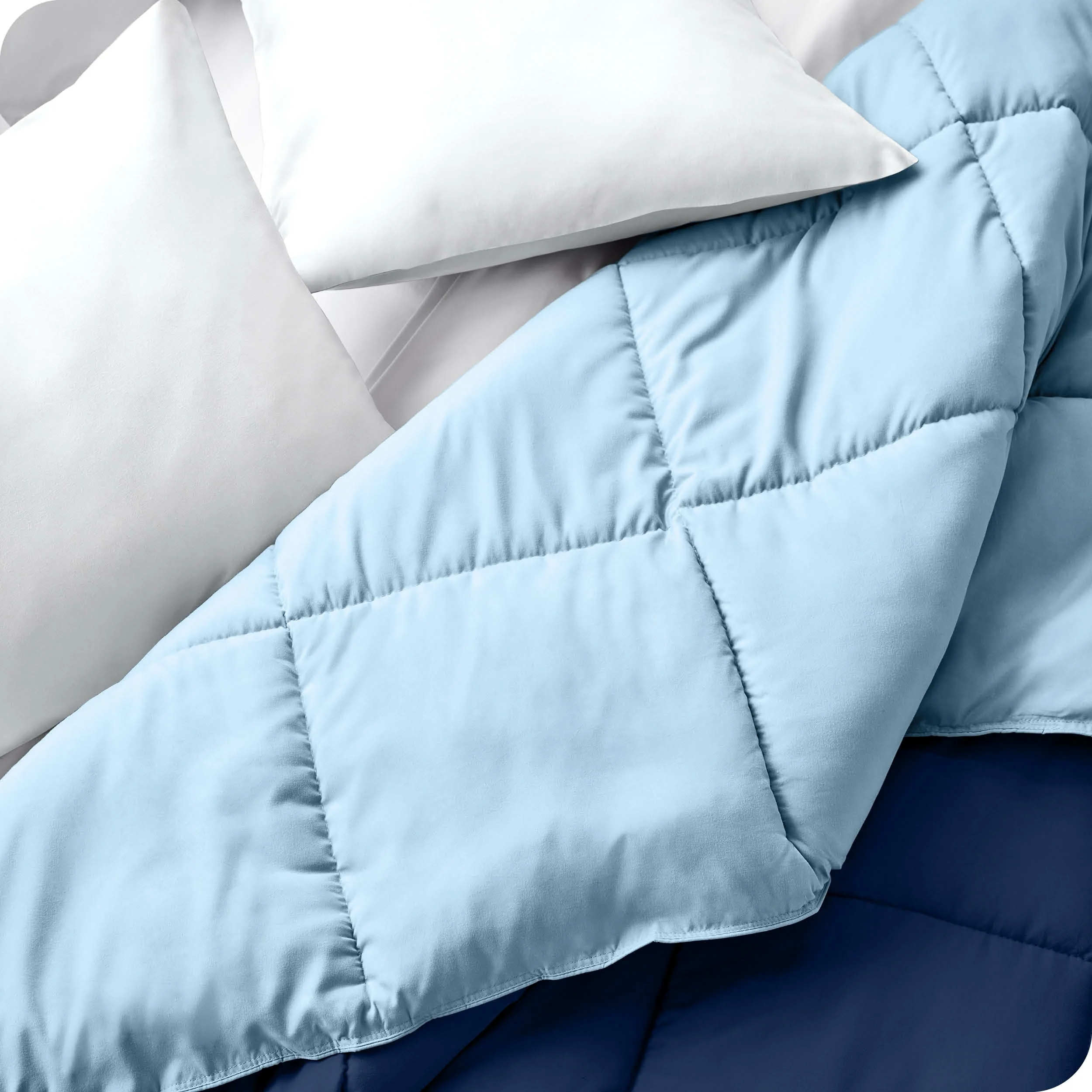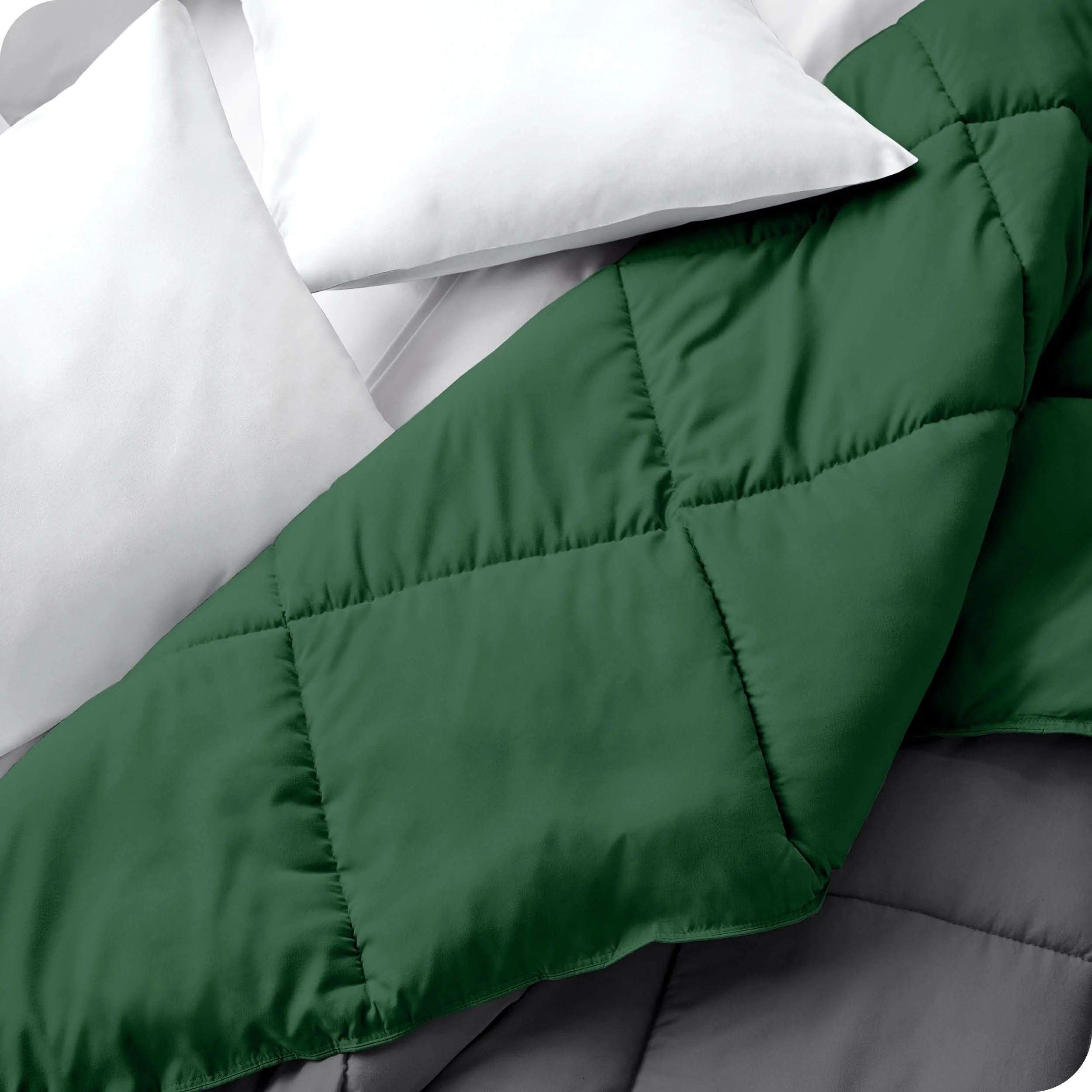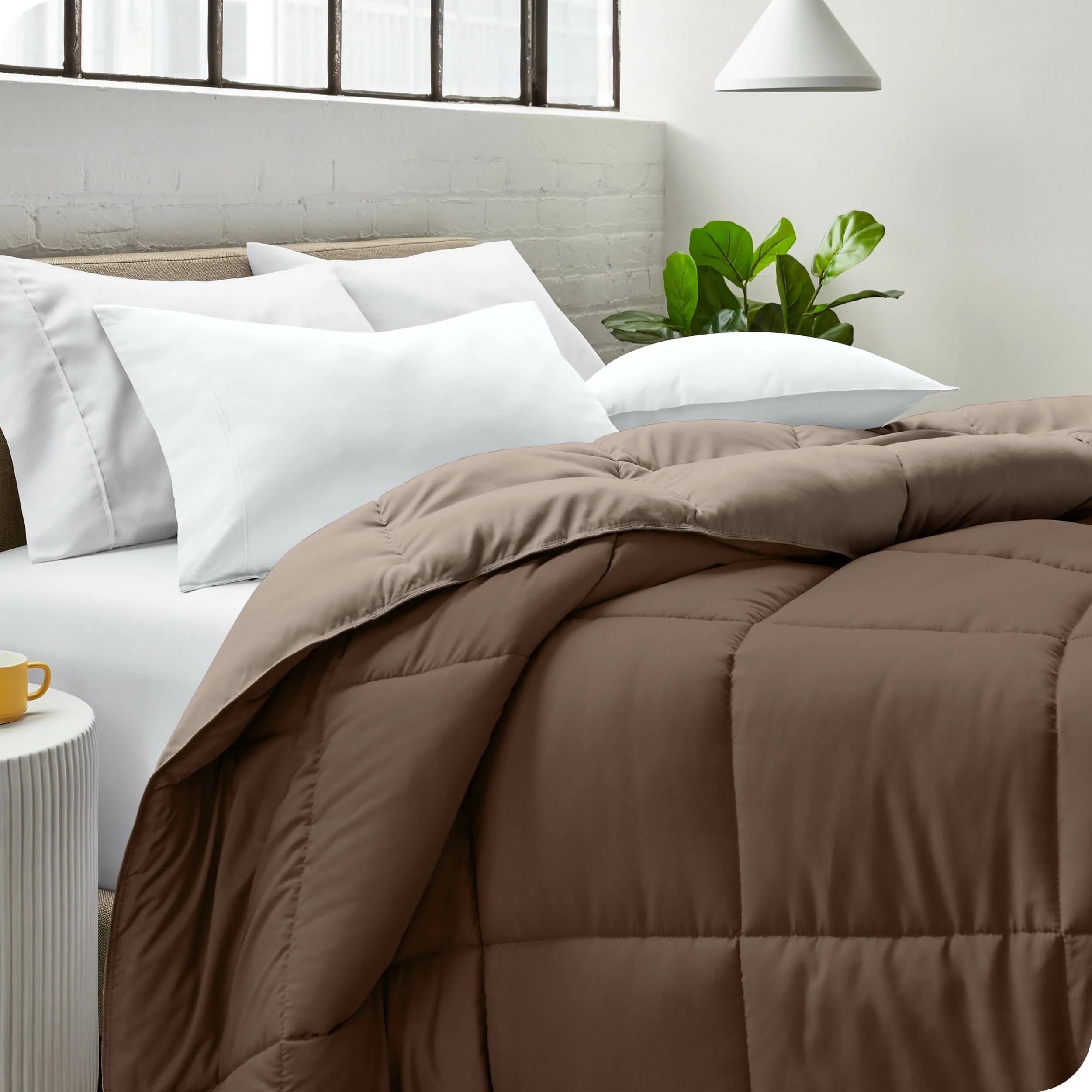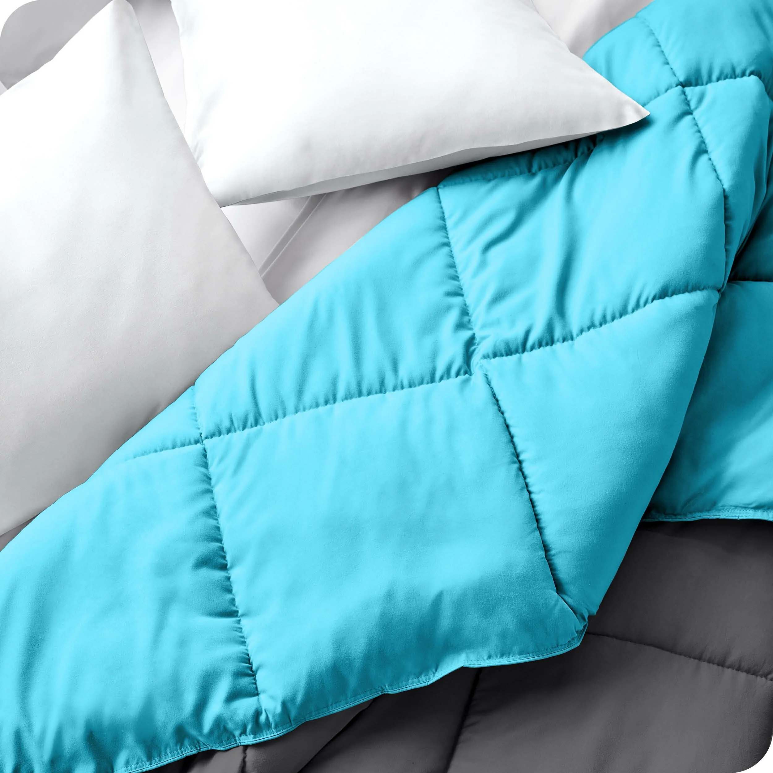 Experience luxury and comfort with the Bare Home Reversible All-season Down Alternative Comforter. The hydro-brushed microfiber material is ultra-soft, while the hypoallergenic down alternative fill is box stitched to keep it evenly distributed. With a reversible design, this comforter allows you to switch up your decor effortlessly.