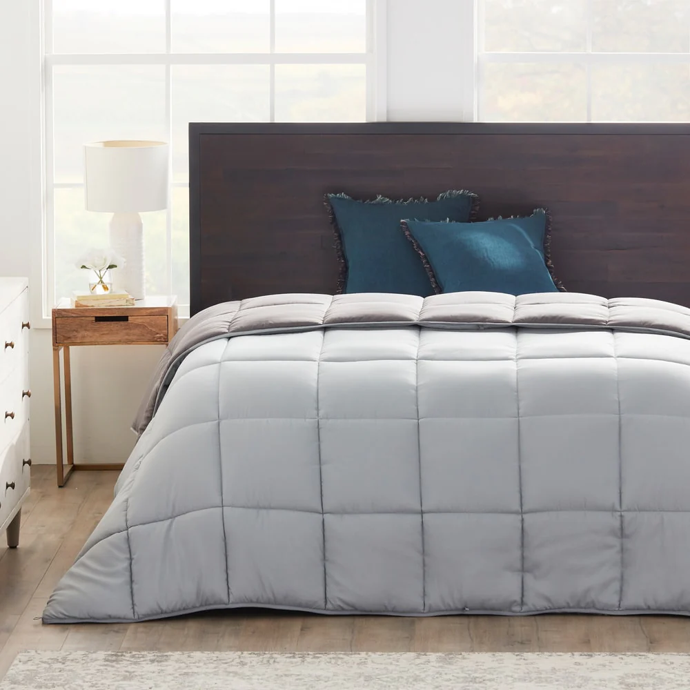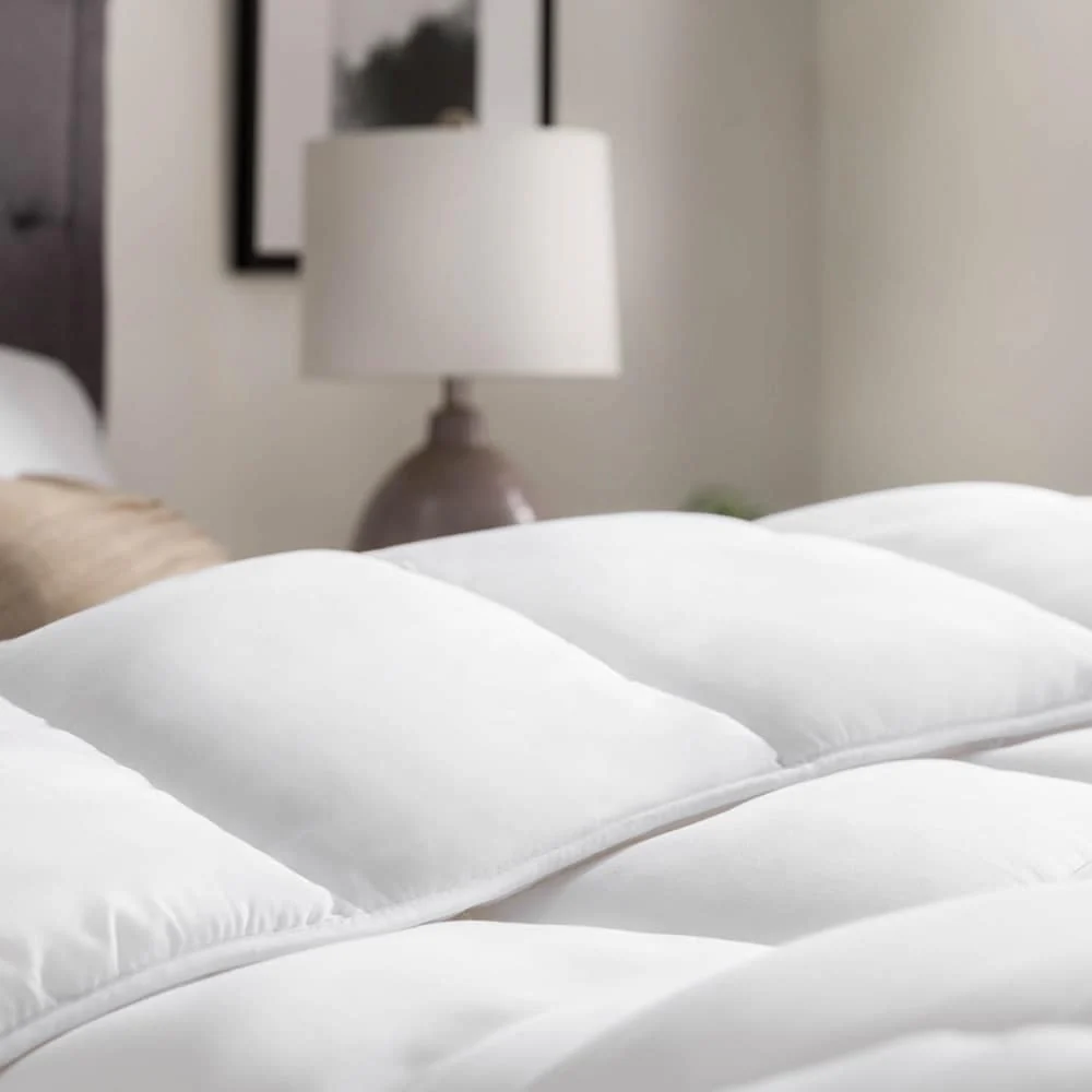 Snuggle up each night in this cozy down alternative comforter from Brookside. The soft microfiber cover features box stitching to keep the hypoallergenic fill evenly distributed. The comforter also features tabs at each corner to easily secure a duvet cover over the comforter.