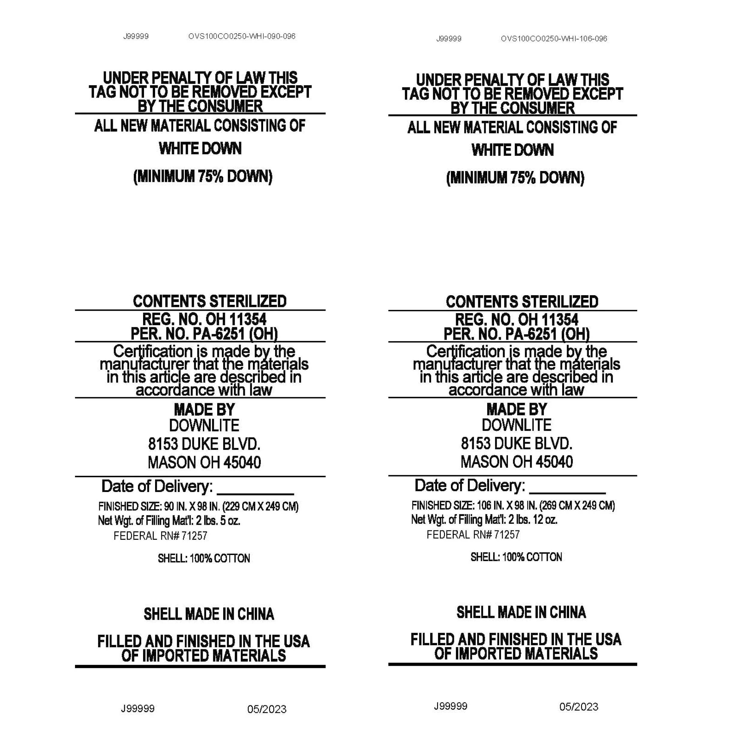 - RDS-certified hypoallergenic white duck down fill with 600 fill power