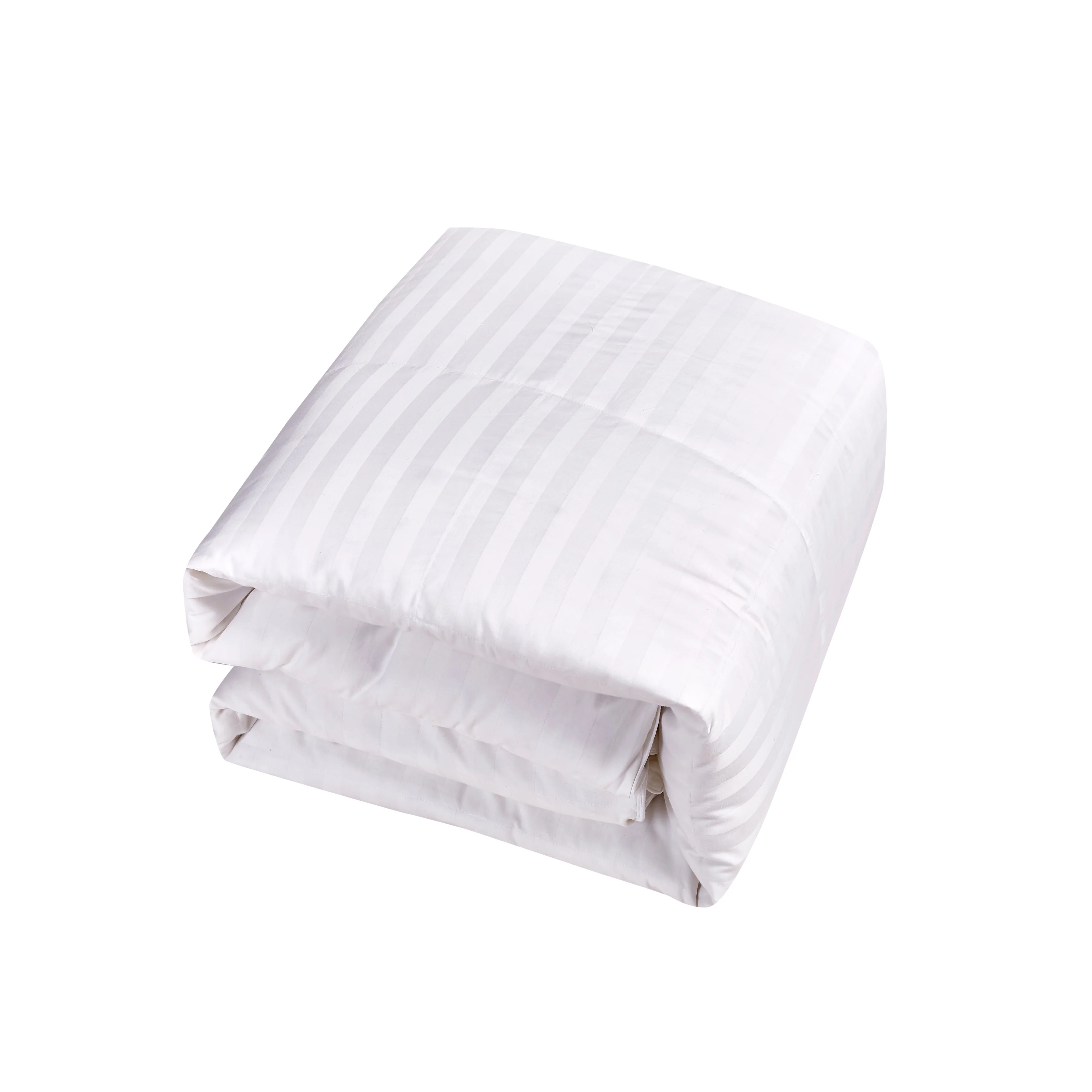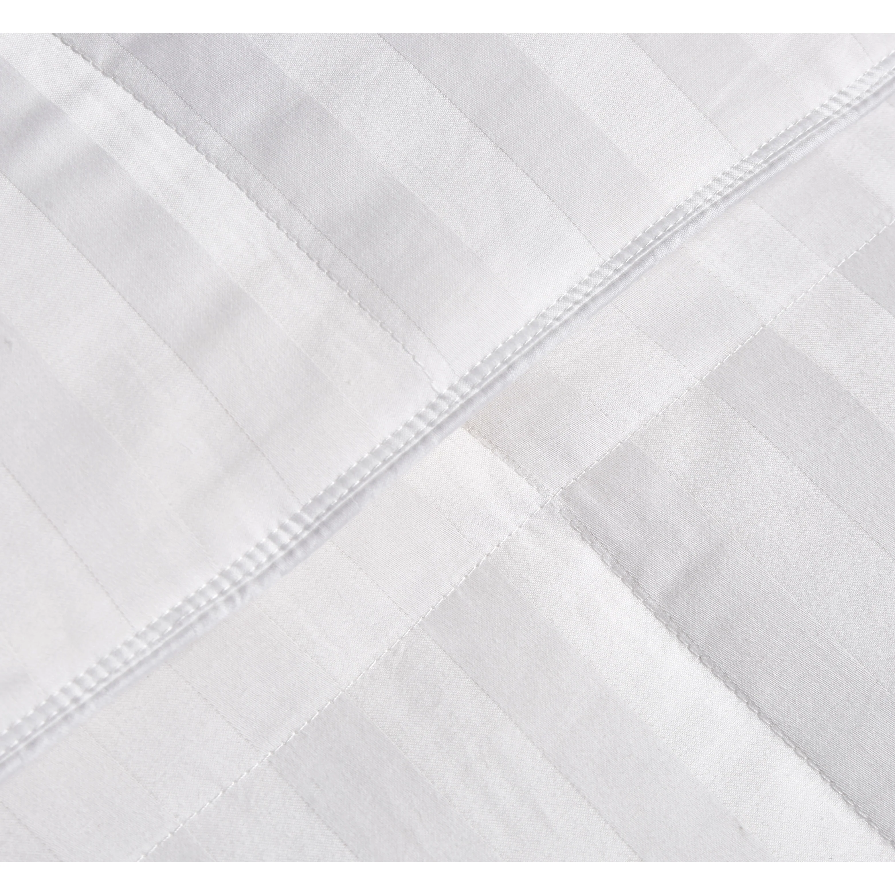 Experience the ultimate comfort and luxury with the Hotel Grand Oversized Goose Down Comforter. Made with 100-percent cotton and a 500 thread count, this soft and cozy comforter features a delightful damask stripe pattern. The white goose down fill (600 fill power) provides all-season warmth and is hypoallergenic, making it perfect for a peaceful and comfortable sleep.