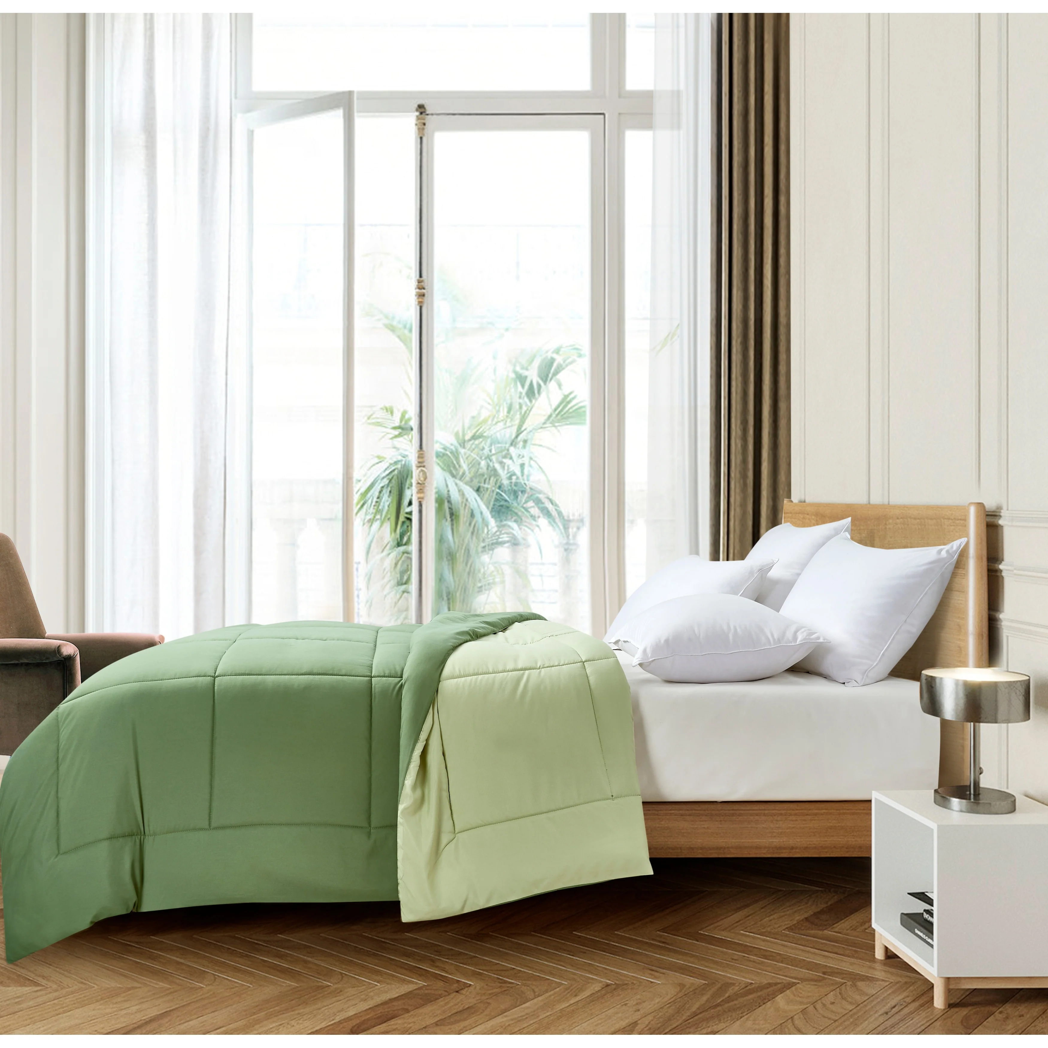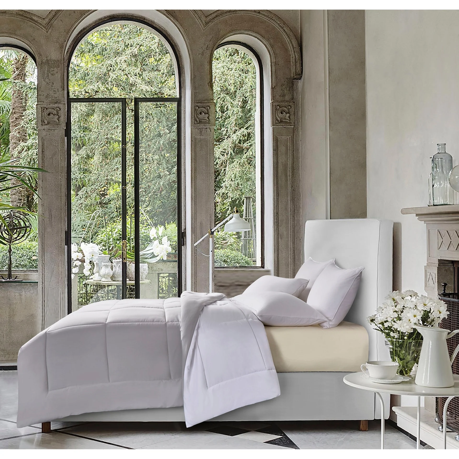 - Hypoallergenic down-alternative comforter