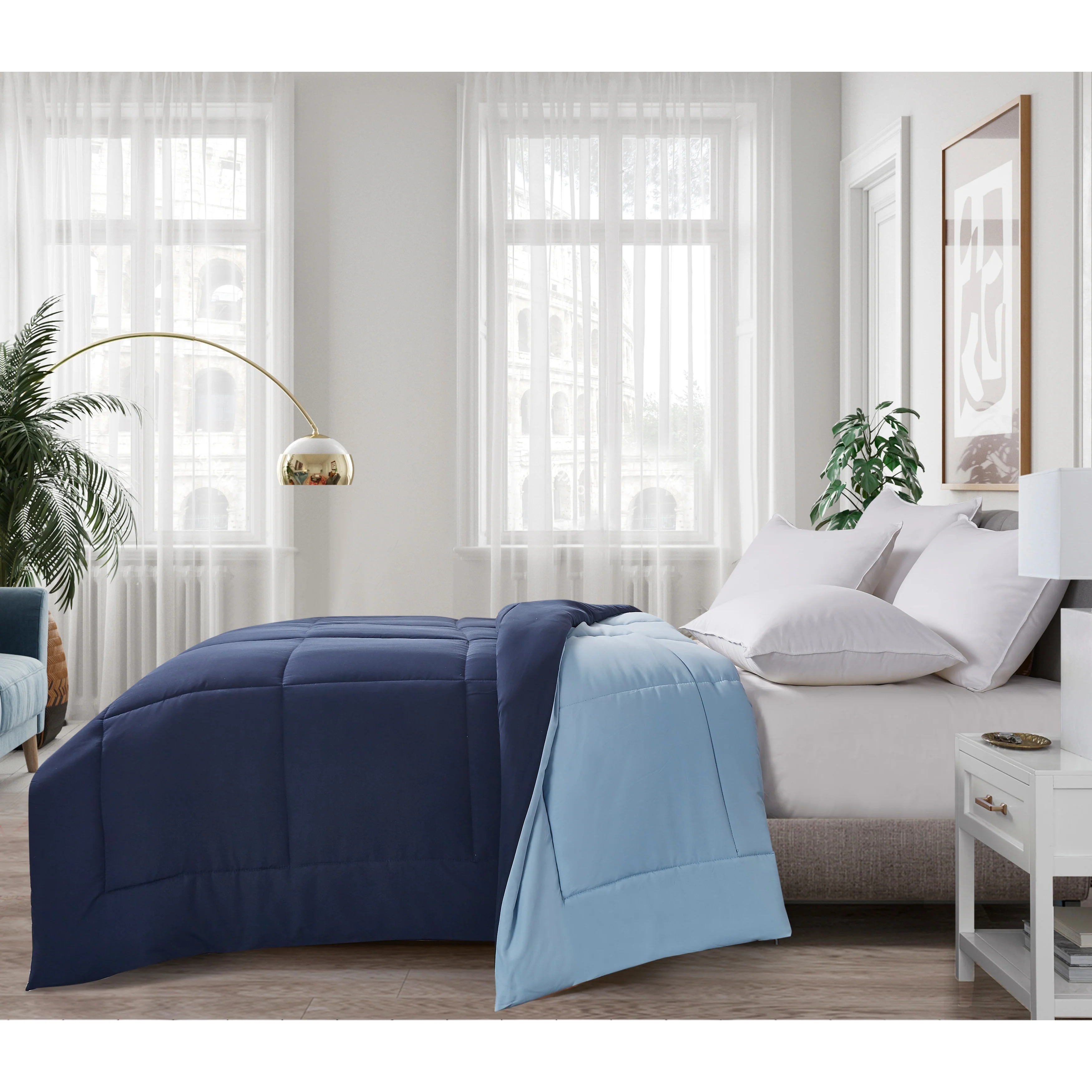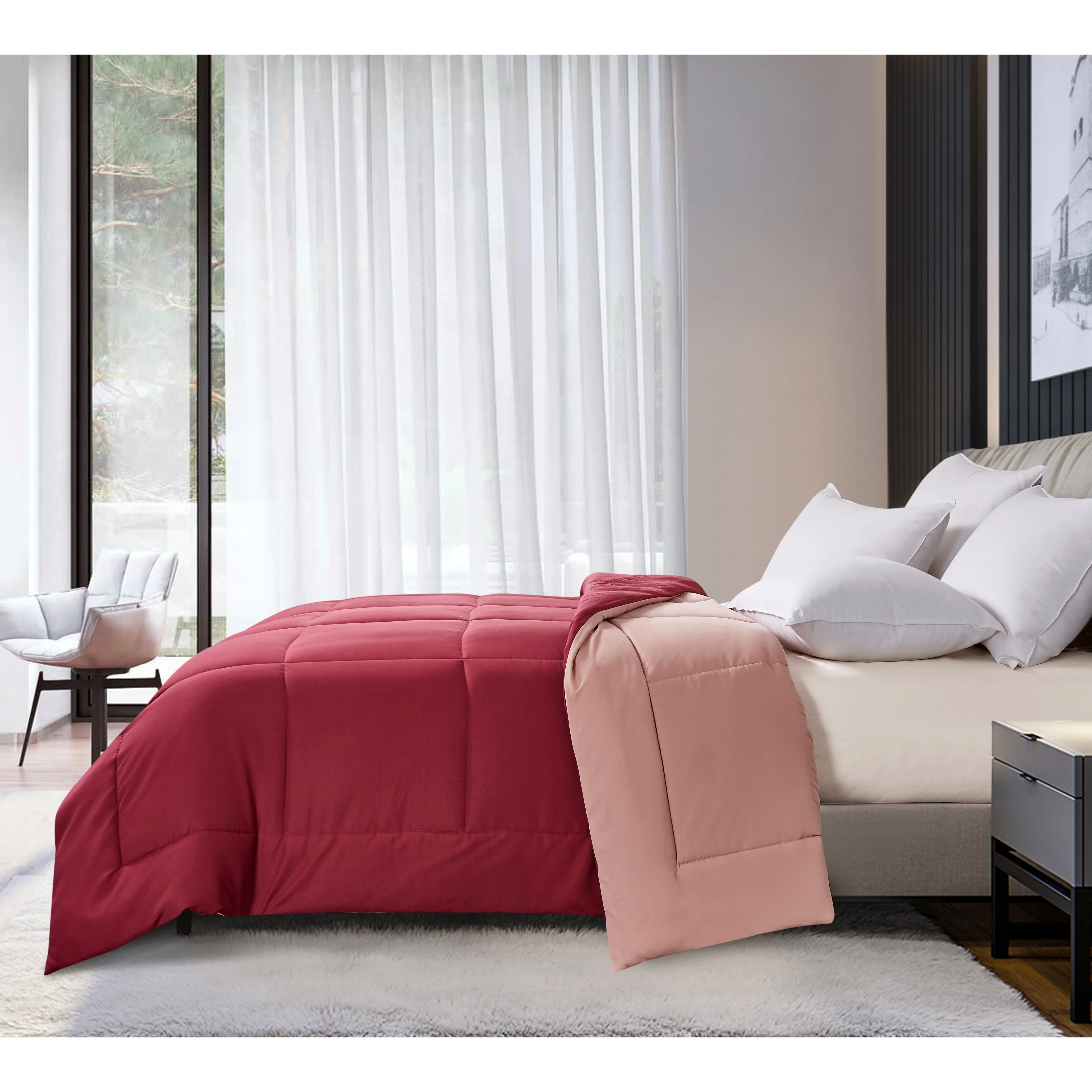 Experience the luxury of down without the hassle of allergies or high maintenance. Our Microfiber Hypoallergenic Reversible Down Alternative Comforter is made with a soft microfiber cover and a polyester fill that emulates the plushness of down, ensuring a comfortable and restful sleep. The end-to-end box construction keeps the fill in place for a fluffy appearance, while the reversible design allows for versatility in any room.