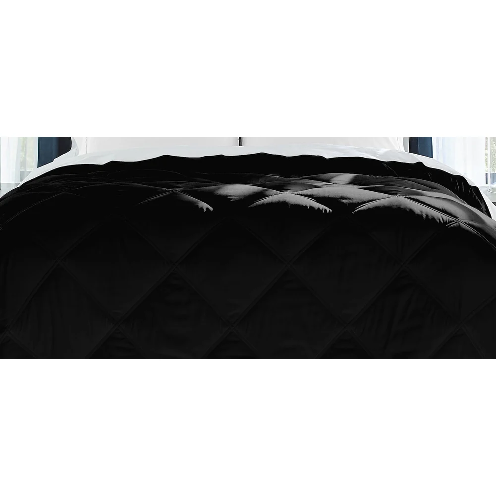 The down alternative comforter has double stitched diamond pattern quiting design. Available in 3 sizes and sizes are oversized in both width and lenth. This micro fiber comforter has soft polyester fill. This fabric has a soft touch.The comforter has duvet tabs on all 4 corners. The comforter can be used year round. Available in 3 Sizes for the perfect fit: Twin/Twin Extra Long, Full/Queen, and King/California King. Includes 1 comforter in the packaging. Twin/Twin Extra Long Size Includes: 1 Twin/Twin Extra Long Comforter: 70' x 90'. Twin / Twin XL Fill Weight 27.2 OzFull/Queen Fill Weight 35.2 OzKing Fill Weight 42.6 OzFull/Queen Size Includes: 1 Full/Queen Comforter: 92' x 94'King/California King Size Includes: 1 King/California King Comforter: 106' x 94'