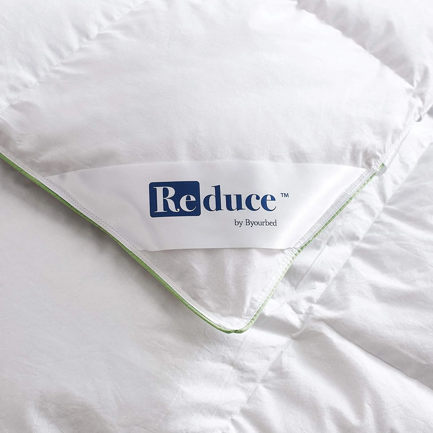 Sink into a restful night's sleep while covered in this RE-DUCE luxurious comforter by Byourbed. Crafted with high-quality reprocessed down, this eco-friendly comforter offers wear-resistant and durable use. The green cotton piping and baffle box construction ensures that the fill stays in place for more enjoyable use. This hypoallergenic comforter is NOMITE and Downafresh certified to keep away allergens such as dust and mites. The down fill engulfs your body in warmth to protect you from cold drafts for enjoyable and satisfying sleep.