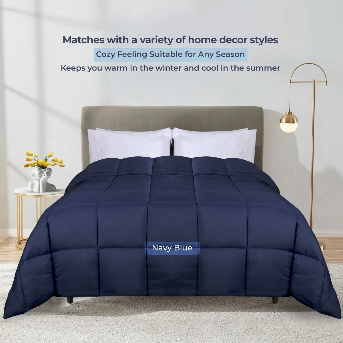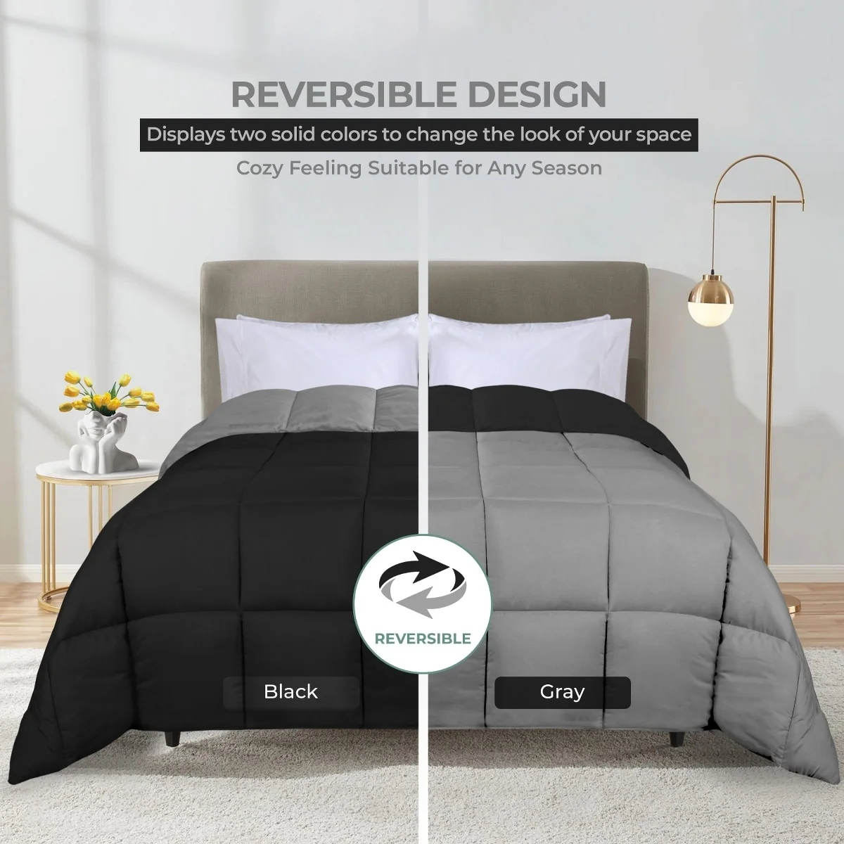 Effortlessly update your bedroom decor with the Superior Brushed Microfiber Down Alternative Reversible Comforter. Crafted from incredibly soft brushed microfiber on the outside and hypoallergenic down alternative fill, this oversized comforter can be used on its own or as a duvet insert. The medium-weight and breathable feel of this comforter will keep you cozy year-round. Showcasing two soothing solid patterns and a modern box-quilt detail, this reversible oversized comforter will add relaxing texture and dimension to your bedroom space. Breathable and not too heavy, this comforter is available in various sizes and classic solid colors to perfectly fit your bedroom space.
