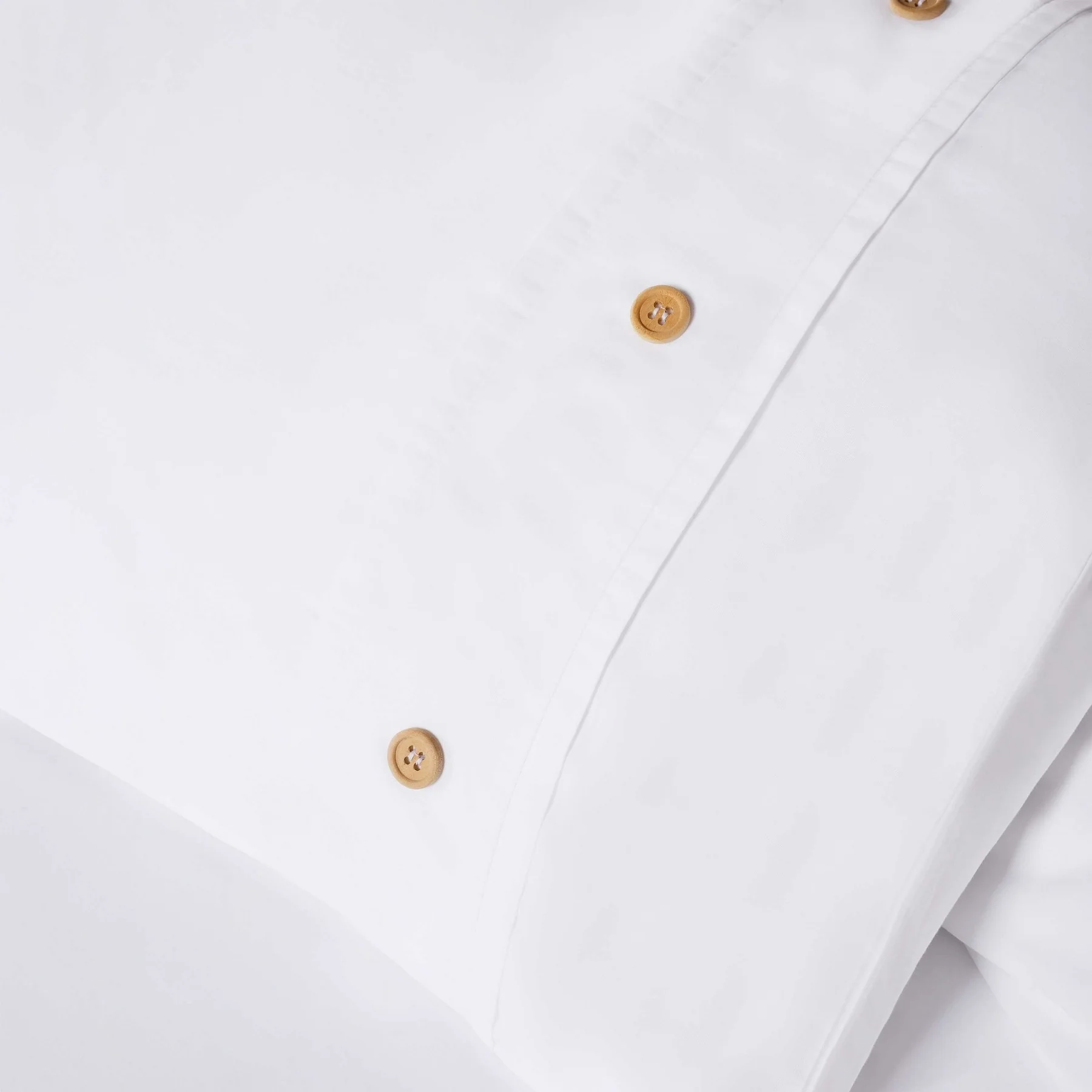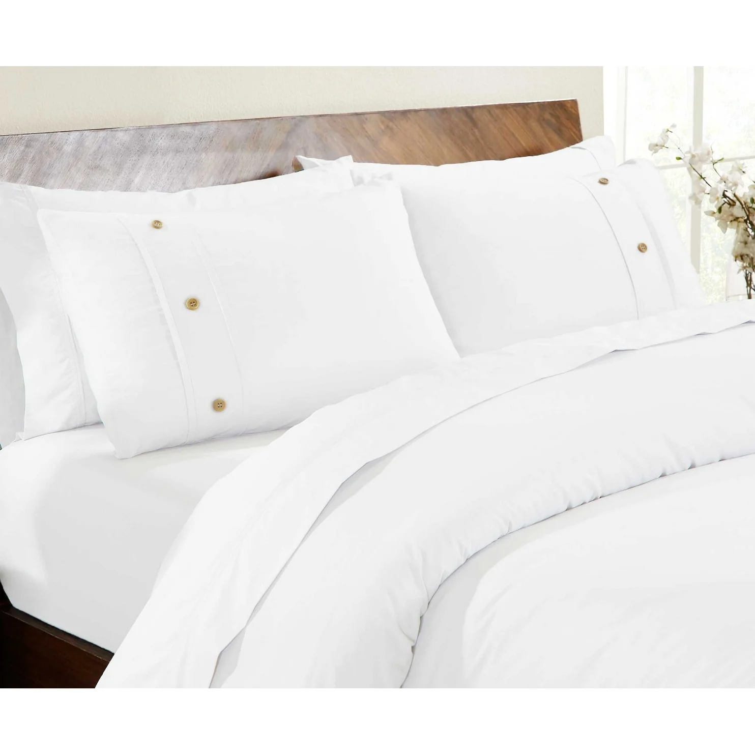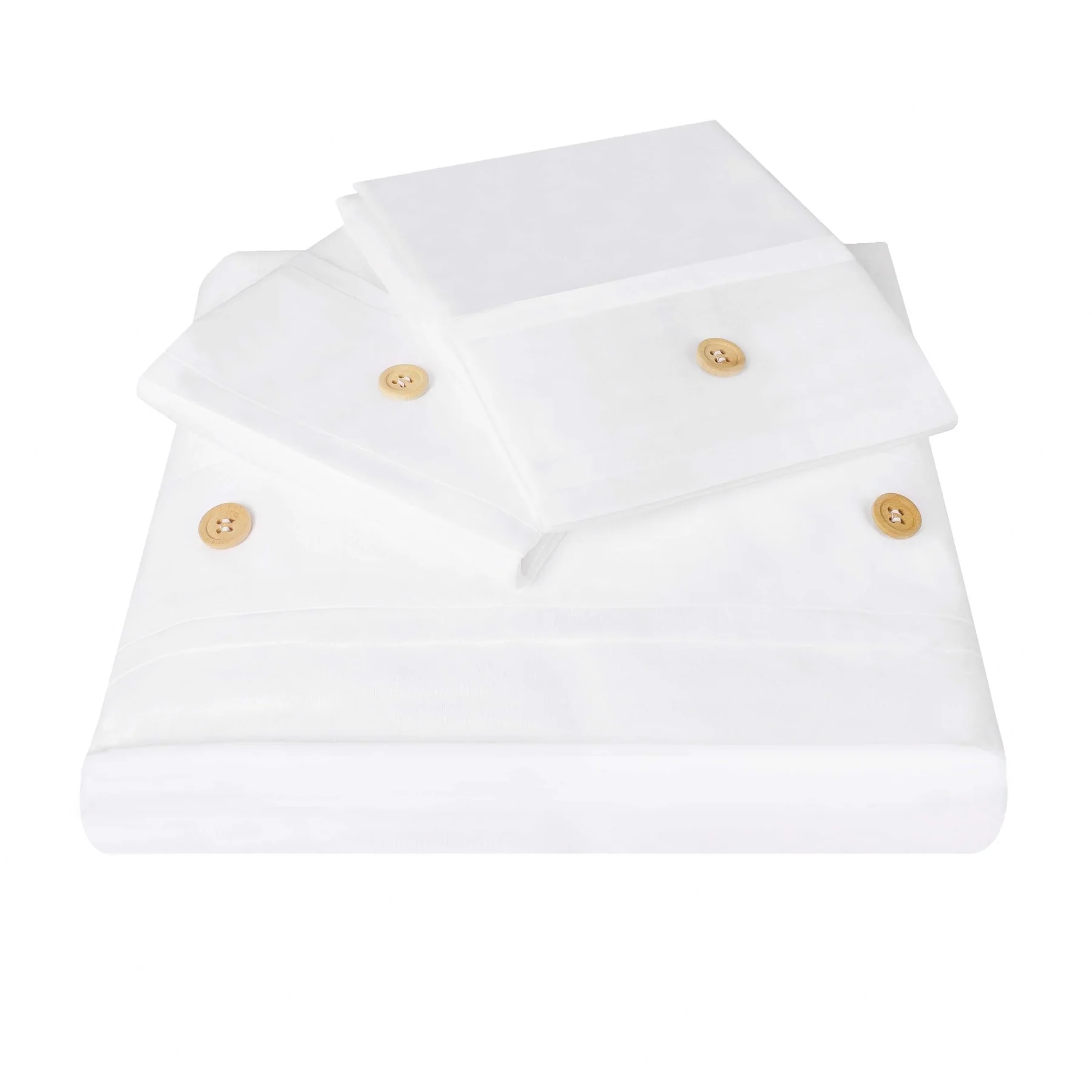 Drift into a peaceful slumber with the Superior Gina Organic Cotton Duvet Cover Set. This duvet cover set is crafted from organic cotton, making it lightweight and breathable to give you a cozy place to relax. Offering a wonderfully soft foundation, this luxurious duvet cover set fastens with hidden buttons to keep your comforter or insert in place. Featuring a percale weave that is crisp and refreshingly cool, this bedding set is the perfect choice for warm sleepers or summer nights. Available in silver and white, you can easily refresh your bedroom style with these soothing color options. This duvet cover displays decorative wooden buttons on the matching pillowcases and the bottom of duvet for an elegant finish to your bed.