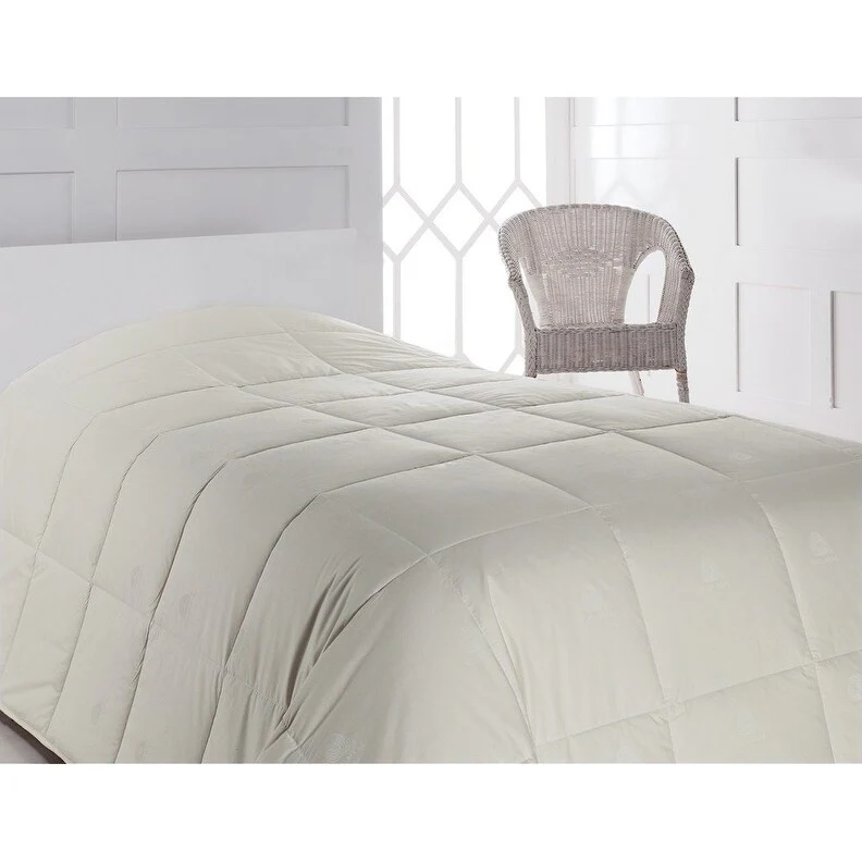 Experience the ultimate in sleeping comfort with our Wool Filled Comforter Duvet. Indulge in a blissful sleep with the soft, fluffy fiber-filled cloud-shaped comforter that promises vacation-quality slumber. Designed with an optimum weight, it can be used year-round, making it perfect for sensitive skin and environmentally conscious individuals. Our luxurious wool comforter is hypoallergenic, static resistant, odor repellent, soft, breathable, durable, and skin-friendly. With sewn corner and side loops, you can easily add a duvet cover and secure it at eight points for a snug fit. Transform the look of your bedroom with this cozy and inviting off-white comforter that regulates body temperature for a peaceful sleep.