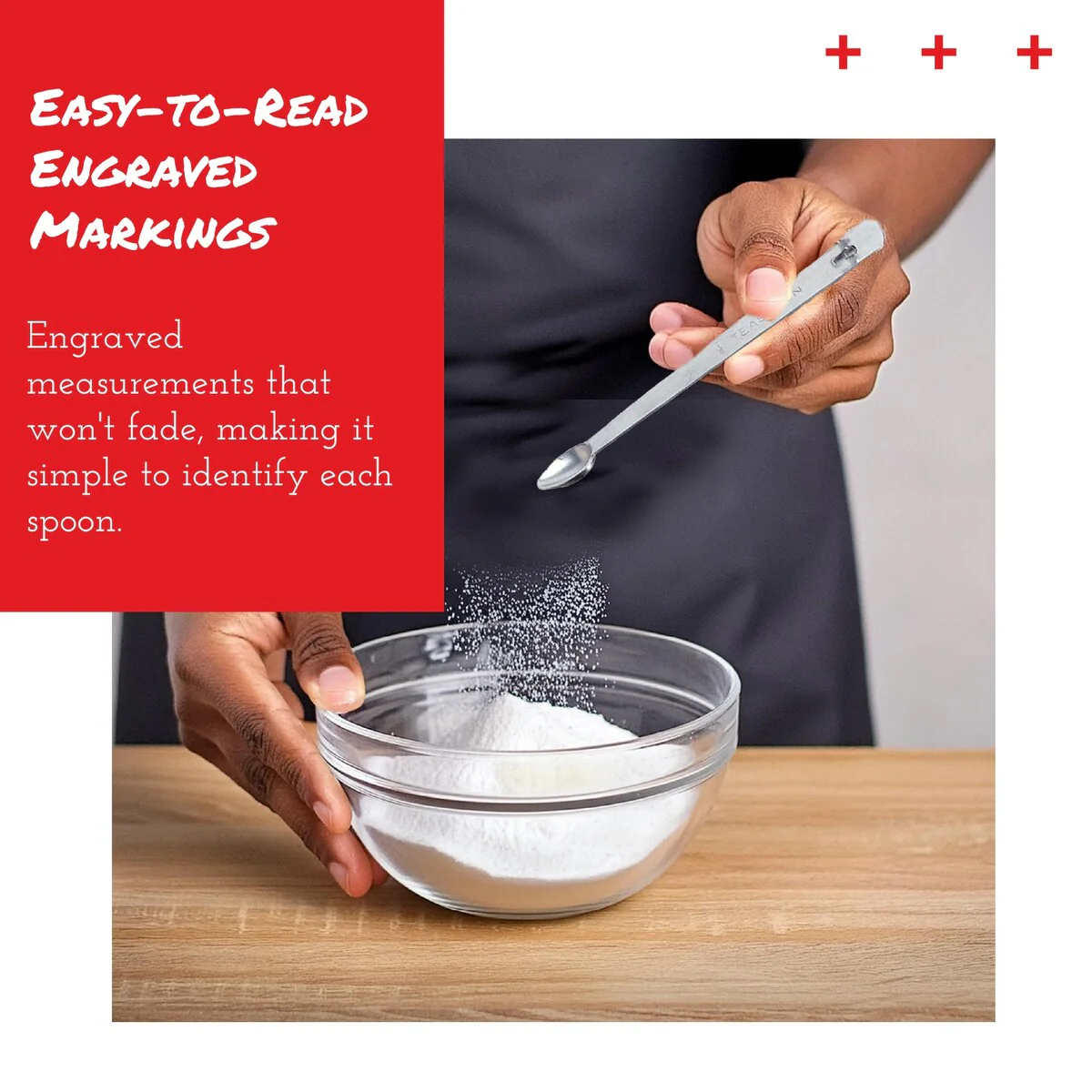 - Each spoon features engraved markings for easy identification even after repeated use and washing, eliminating the frustration of faded measurements.