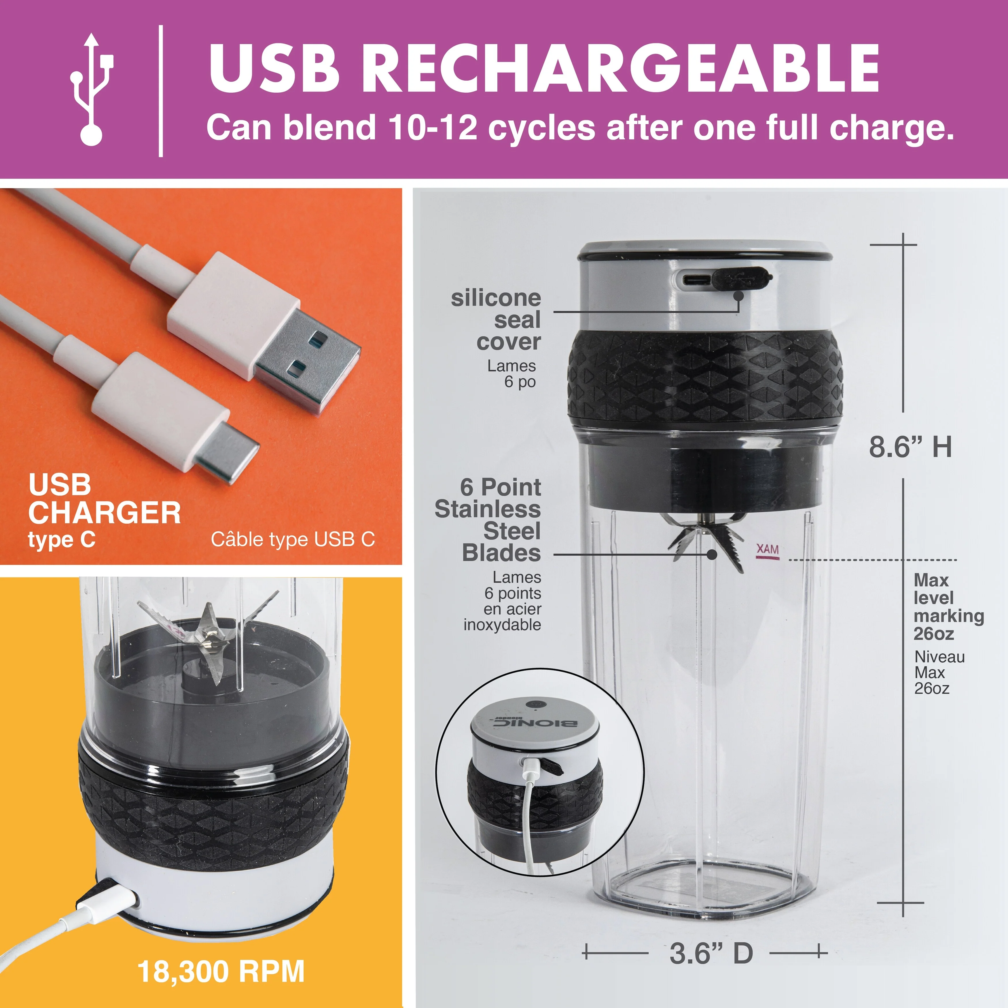 Bionic Blade is a powerful blender you can use on the go. Bionic Blade is the ultimate portable blender. It is super easy to use and perfect for on-the-go with a 26 oz. cup. Bionic Blade is lightweight and durable, packs big blender performance in its compact size. The Bionic Blade is a rechargeable, handheld blender that allows its users to blend drinks, shakes and more while on the go.