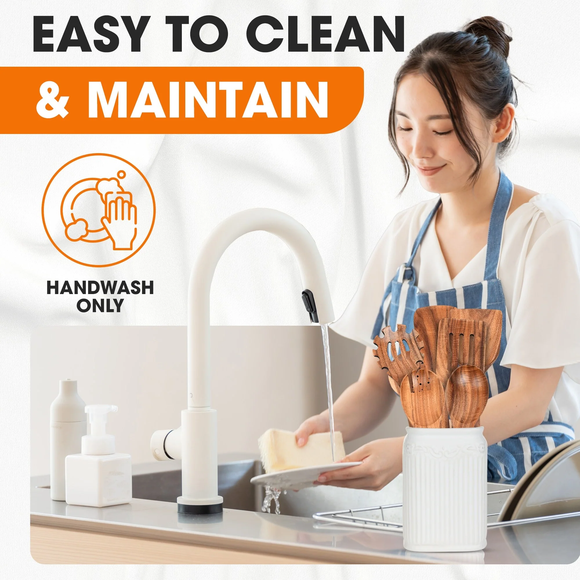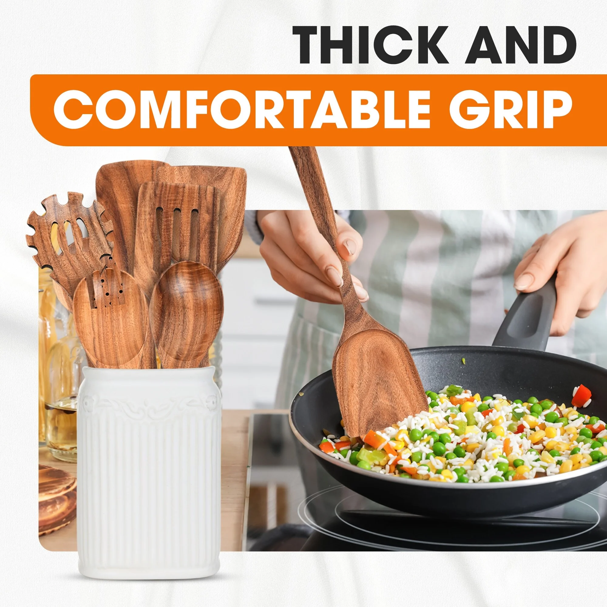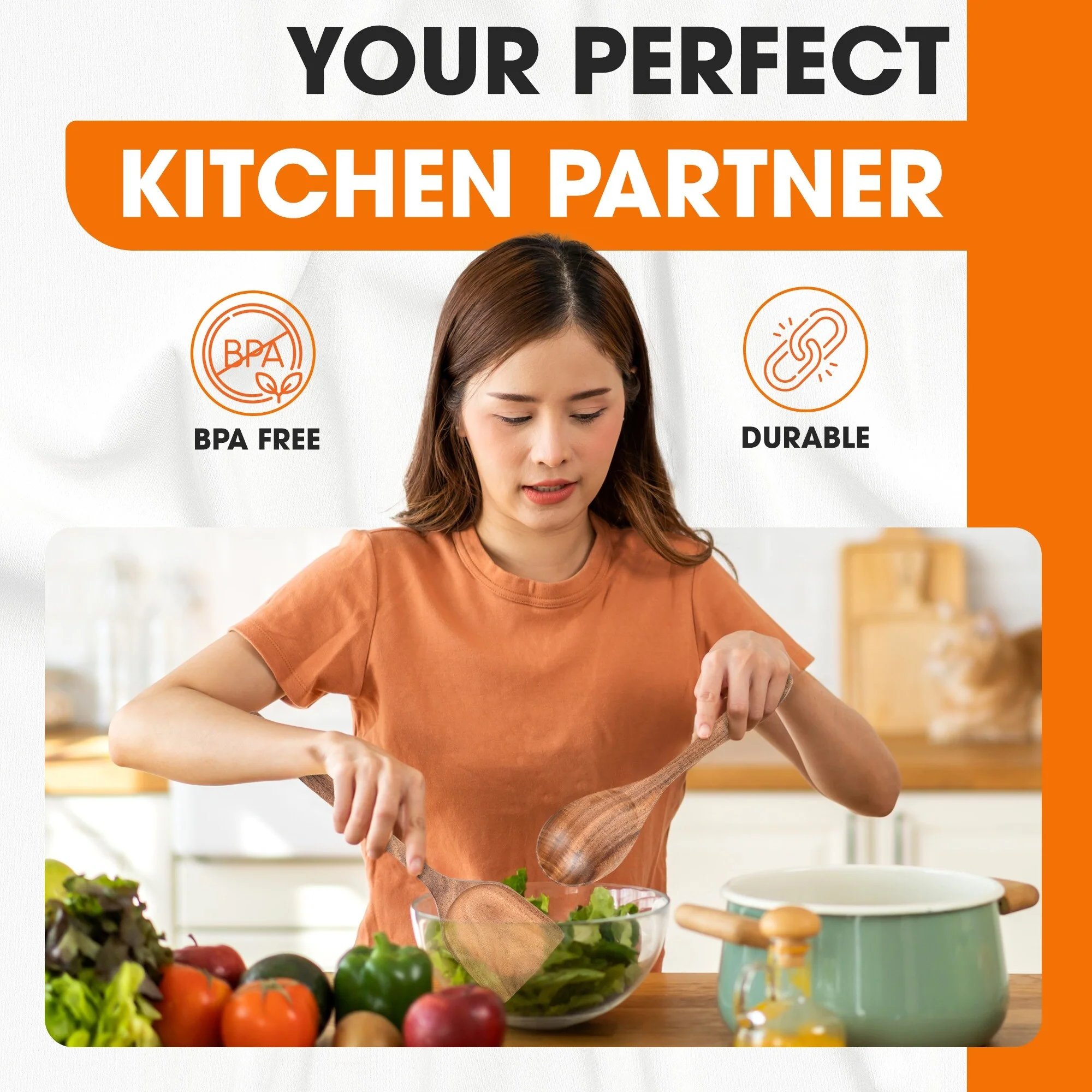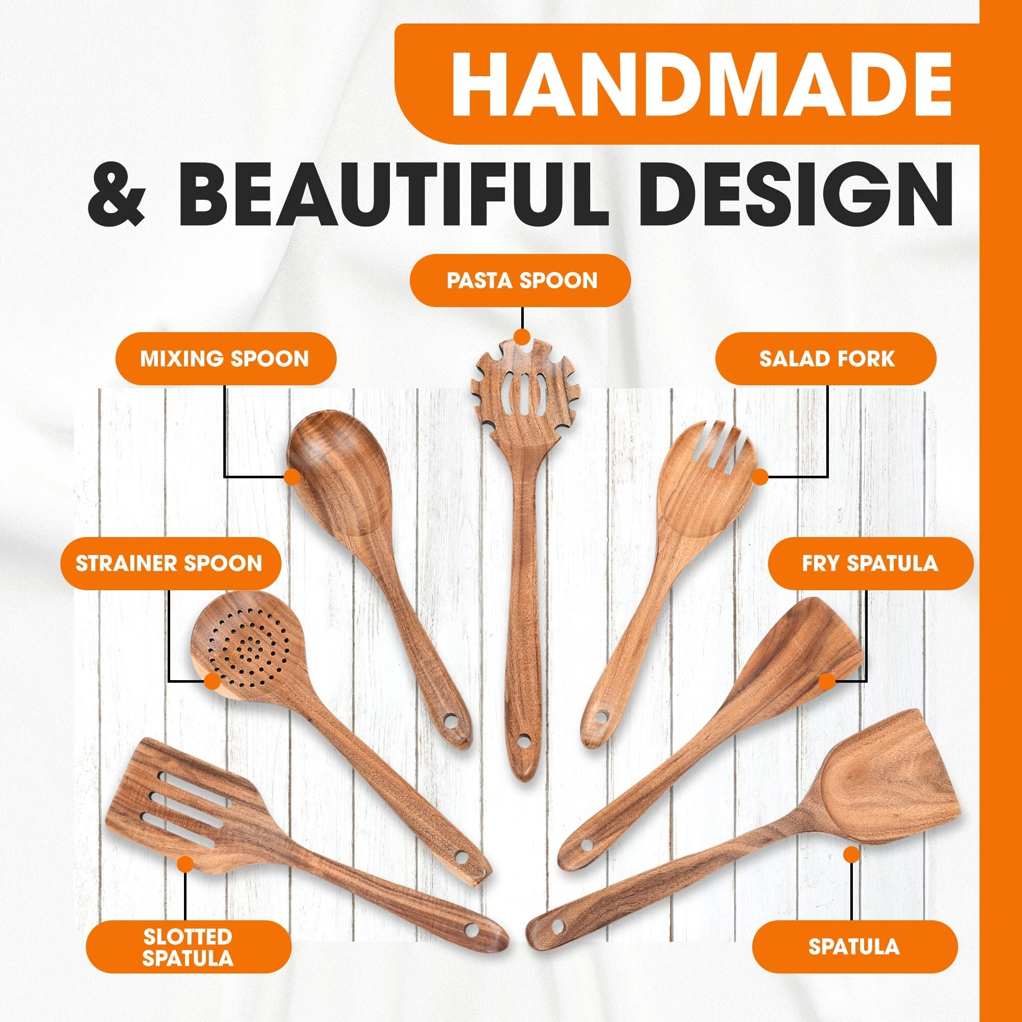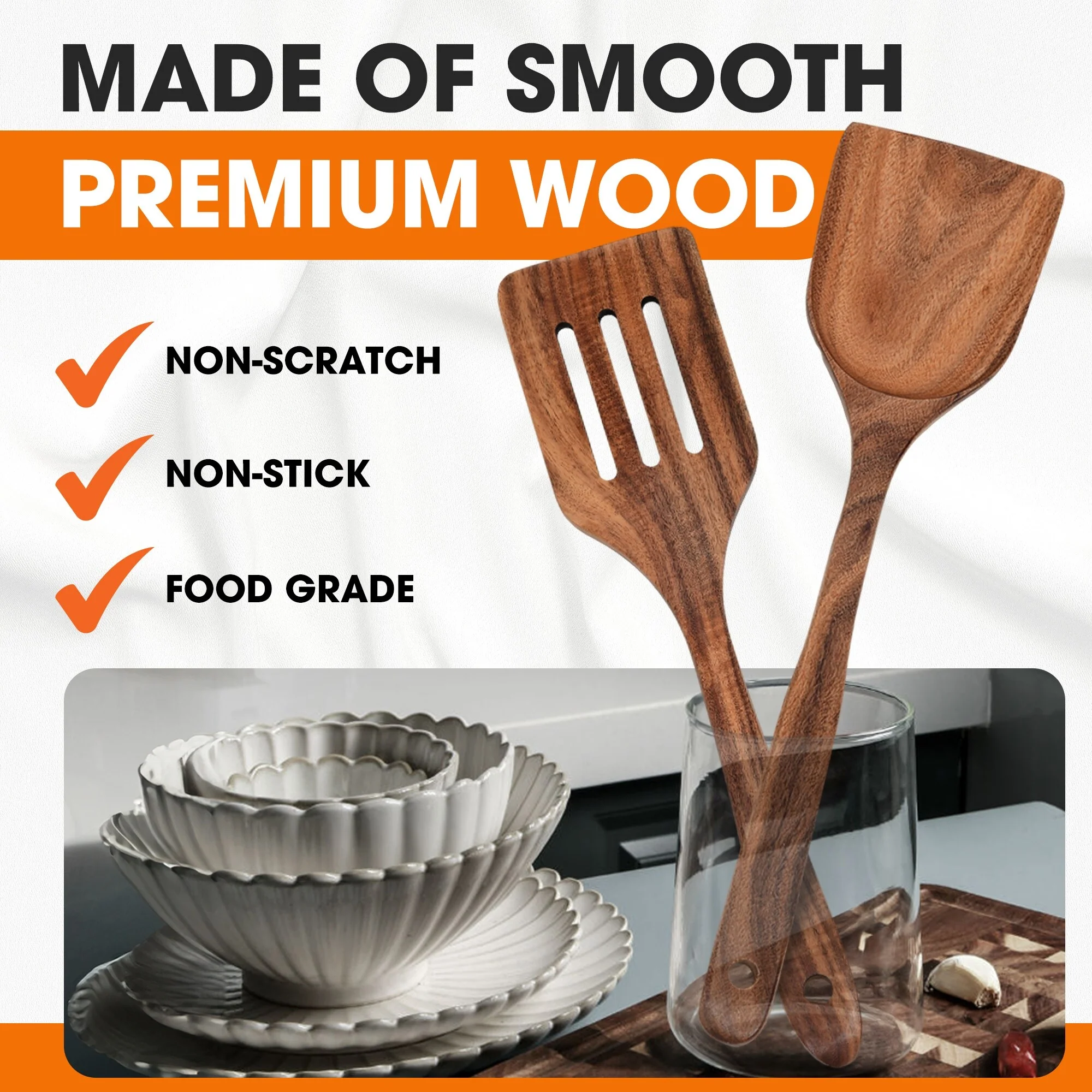 ECO-FRIENDLY CRAFTSMANSHIP: Made from 100% natural wood, this utensil set is environmentally friendly. Each piece is crafted to be durable and long-lasting