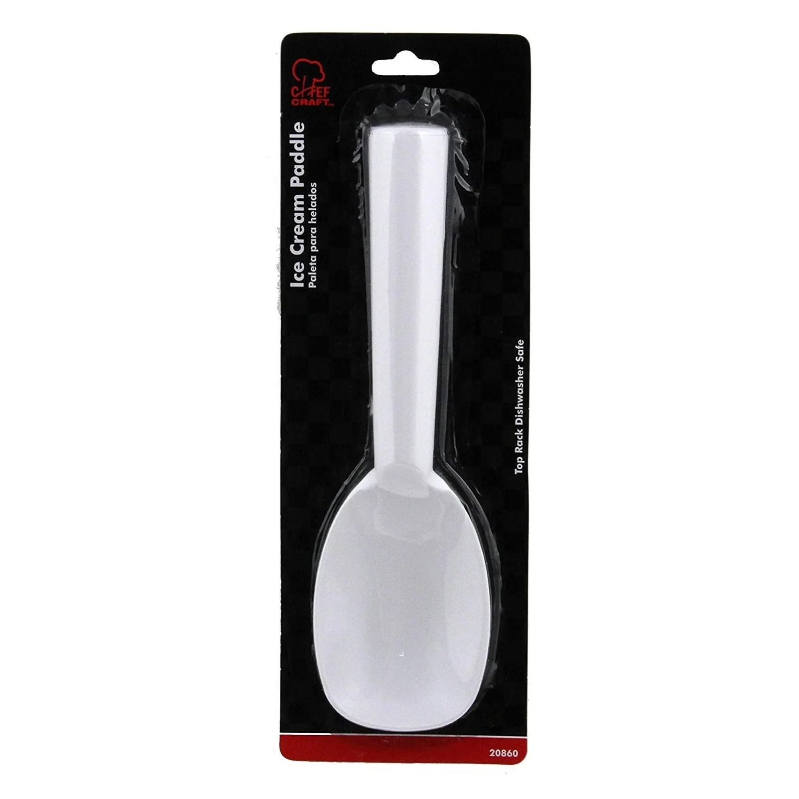 This ice cream paddle easily moves through ice cream efficiently scooping however much you want. It easily grabs ice cream the edges or corners of containers much easier than an ice cream scoop. This paddle is perfect to keep your hand from touching the ice cream in most containers. It measures 9 inches in length and is top-rack dishwasher safe for easy clean-up. Made of safe BPA-free plastic which won't scratch any bowls or pans.