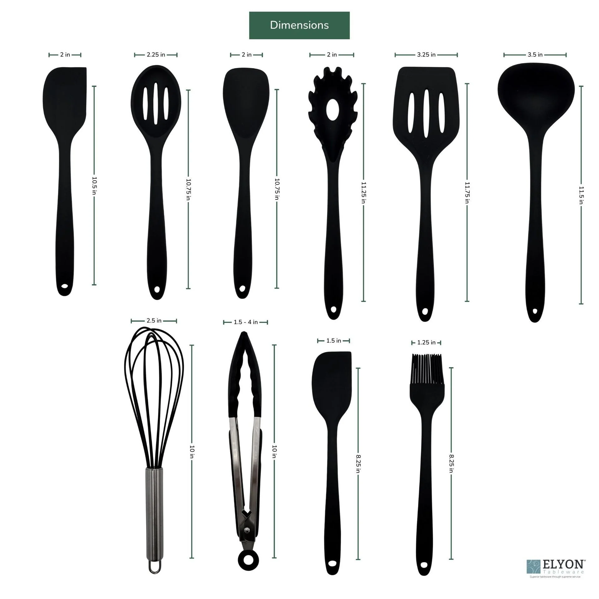 This set of silicone kitchen utensils includes ten pieces;