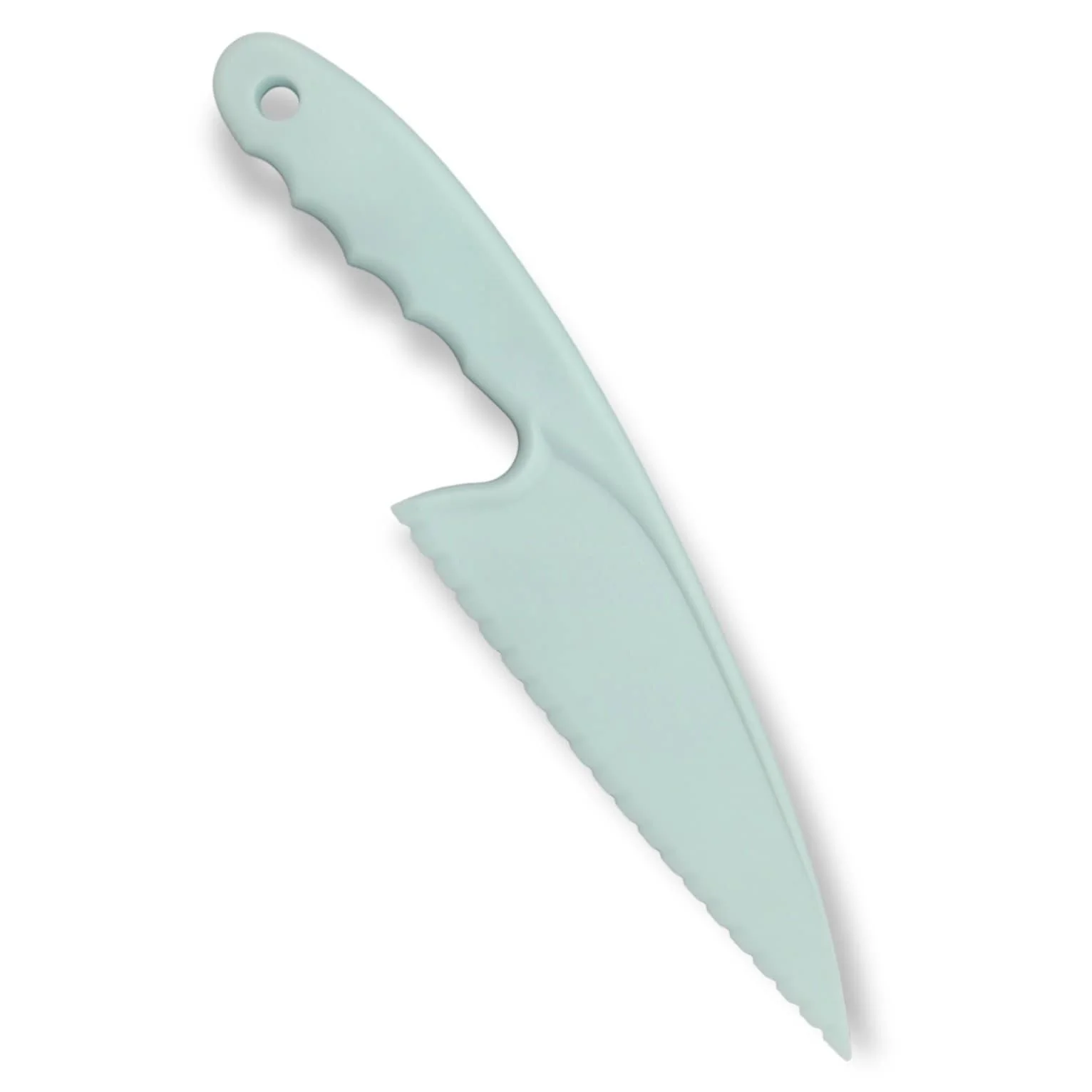 Slice through your veggies and fruits with ease using the Handy Housewares 11.5' Long Nylon Lettuce Knife. This lightweight knife features a serrated blade that ensures clean cuts and prevents browning, keeping your produce fresh for longer. With its ergonomic handle and finger ridges, you'll have a firm grip as you chop through lettuce, broccoli, cabbage, and more. Not just limited to vegetables, this knife is also perfect for slicing bread and cakes, thanks to its serrated edge. Made from durable nylon, this knife is built to last. Available in green or blue. Upgrade your kitchen essentials with this versatile lettuce knife.