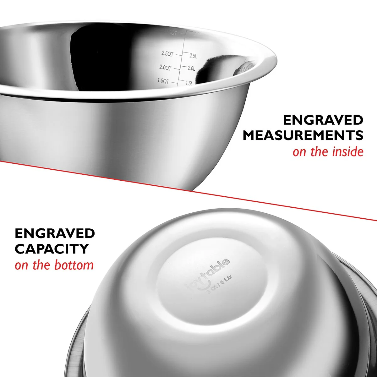 - 5 Stainless steel mixing bowls in a range of sizes - 戮 qt, 1.5 qt, 3 qt, 4 qt, 5 qt