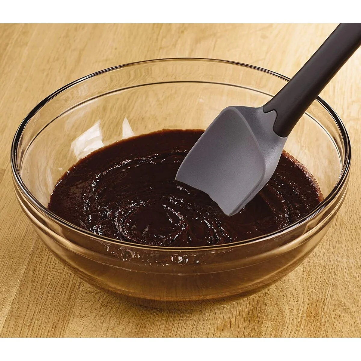 - Features a flexible large head designed for easy use and will not melt, chip, fade, discolor, retain odor, and harbor bacteria. The modern Black and Gray color combination looks great in any kitchen