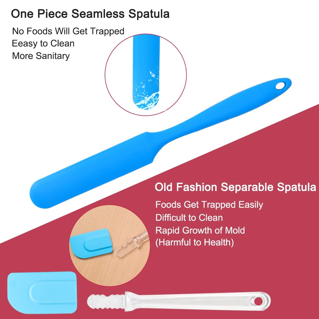 - CONVENIENT DESIGN: Stainless steel core durable seamless one-piece design, perfect angle design for scraping food, simple and easy. Each end of the spatulas has a hanging loop for easy carriage and storage. these utensils will fulfill the demand of home cooking and professional chefs needs