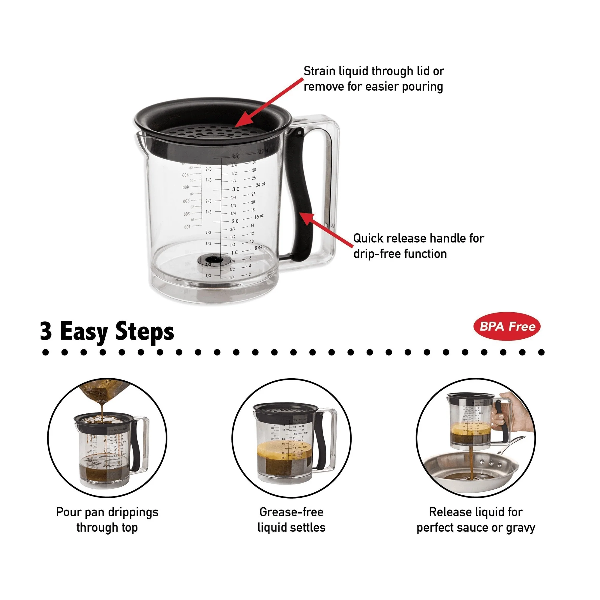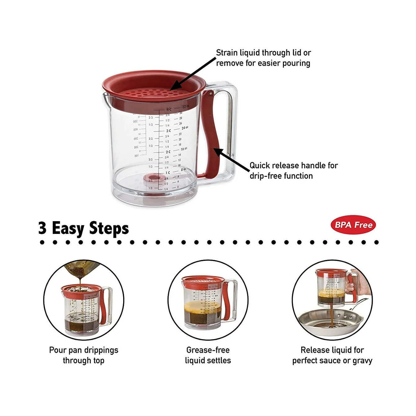 - (1) Swing-A-Way 4 Cup Easy Release Fat & Gravy Separator With Standard Measurements, Removable Lid & Spring Loaded Bottom