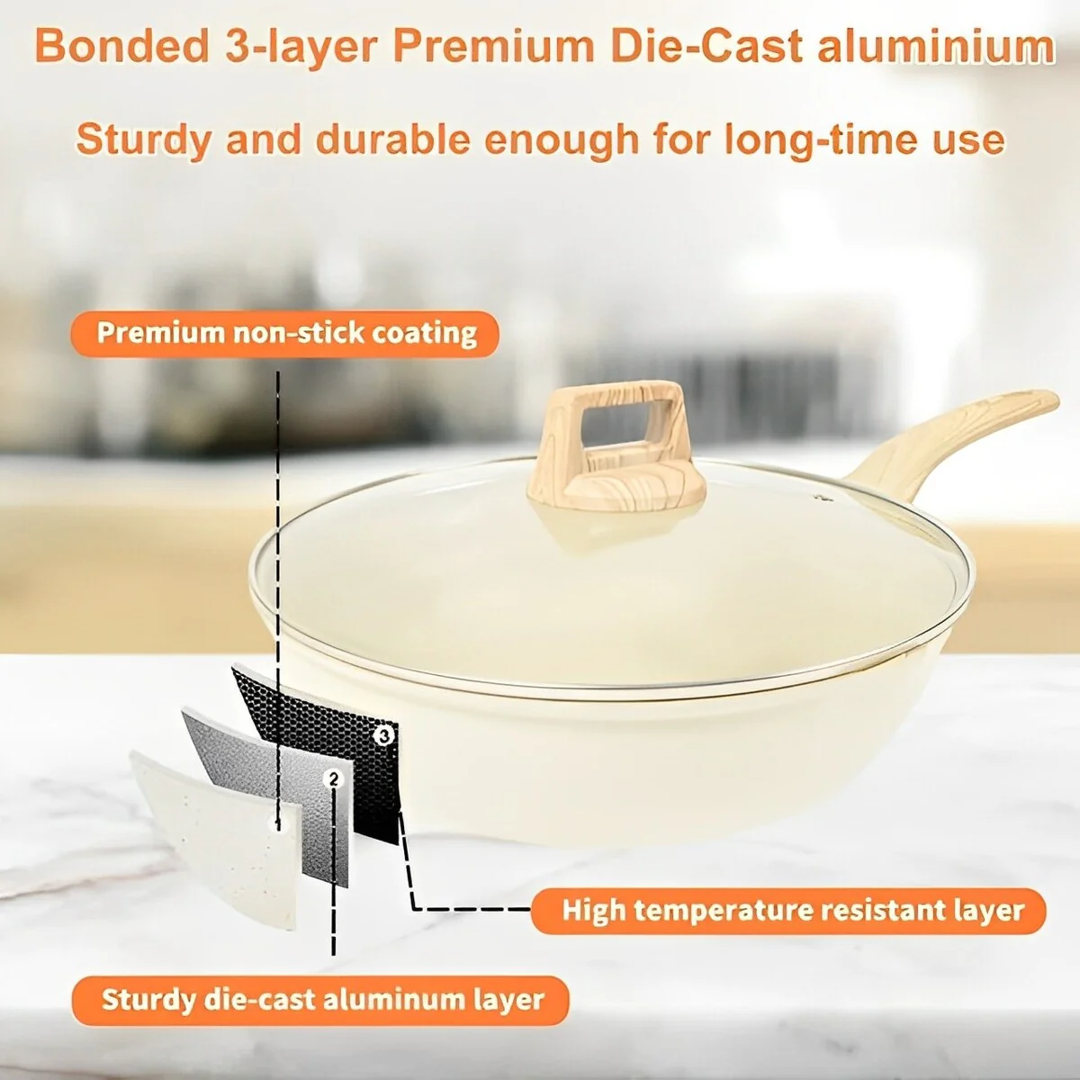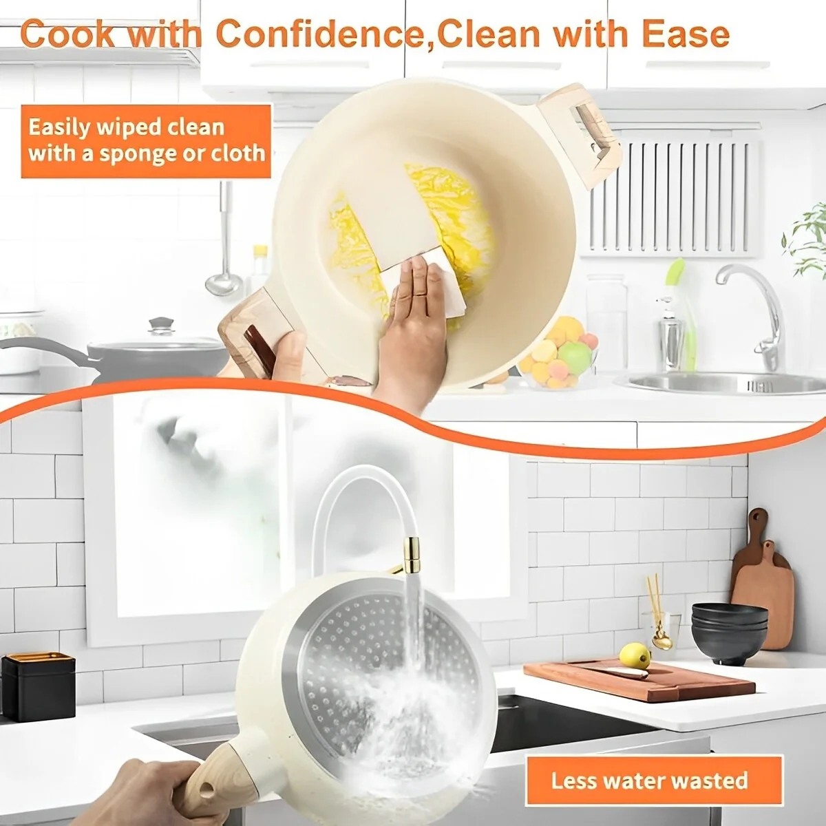 - Non-Stick, Eco-Friendly Excellence: SGS-approved White Granite material offers an astonishing 10x Ultra Non-Stick performance, making your cooking both eco-friendly and worry-free.