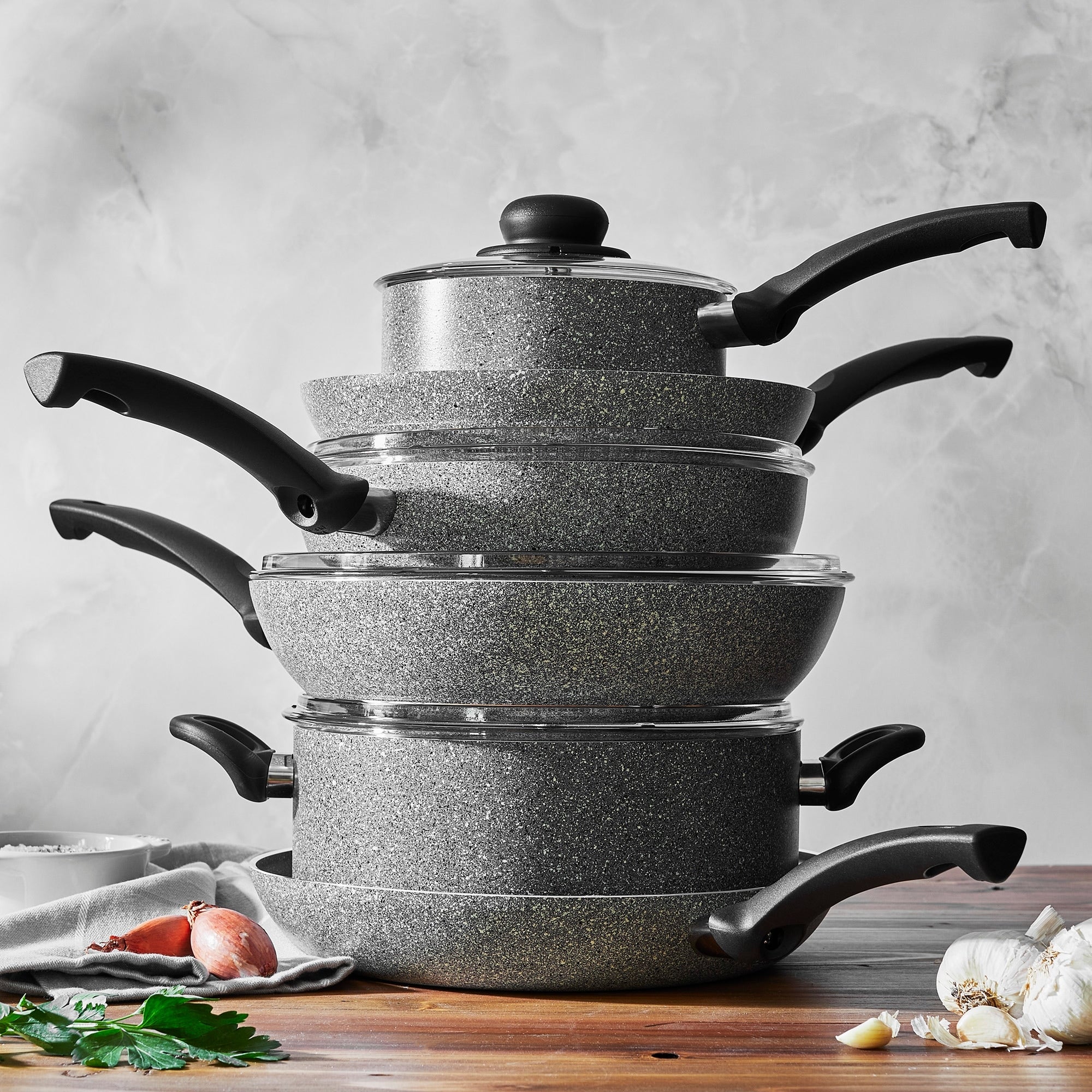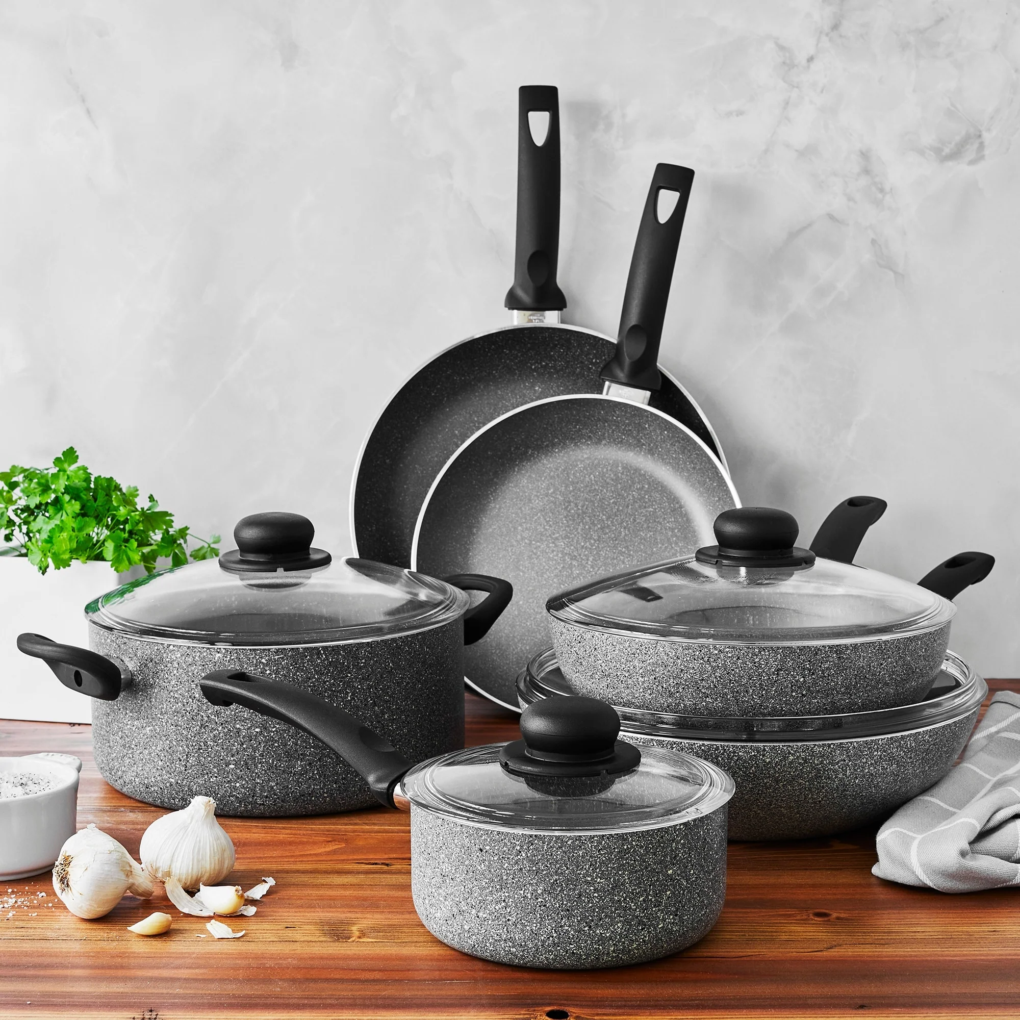 Ballarini Asti will become your go-to cookware for its great performance and ease of use. The unique Granitium non-sick coating browns well, releases easily, and cleans in a snap. Reinforced with minerals, it is metal utensil safe, and dishwasher safe. The thick aluminum body promotes even heating, and the handles stay cool when cooking.