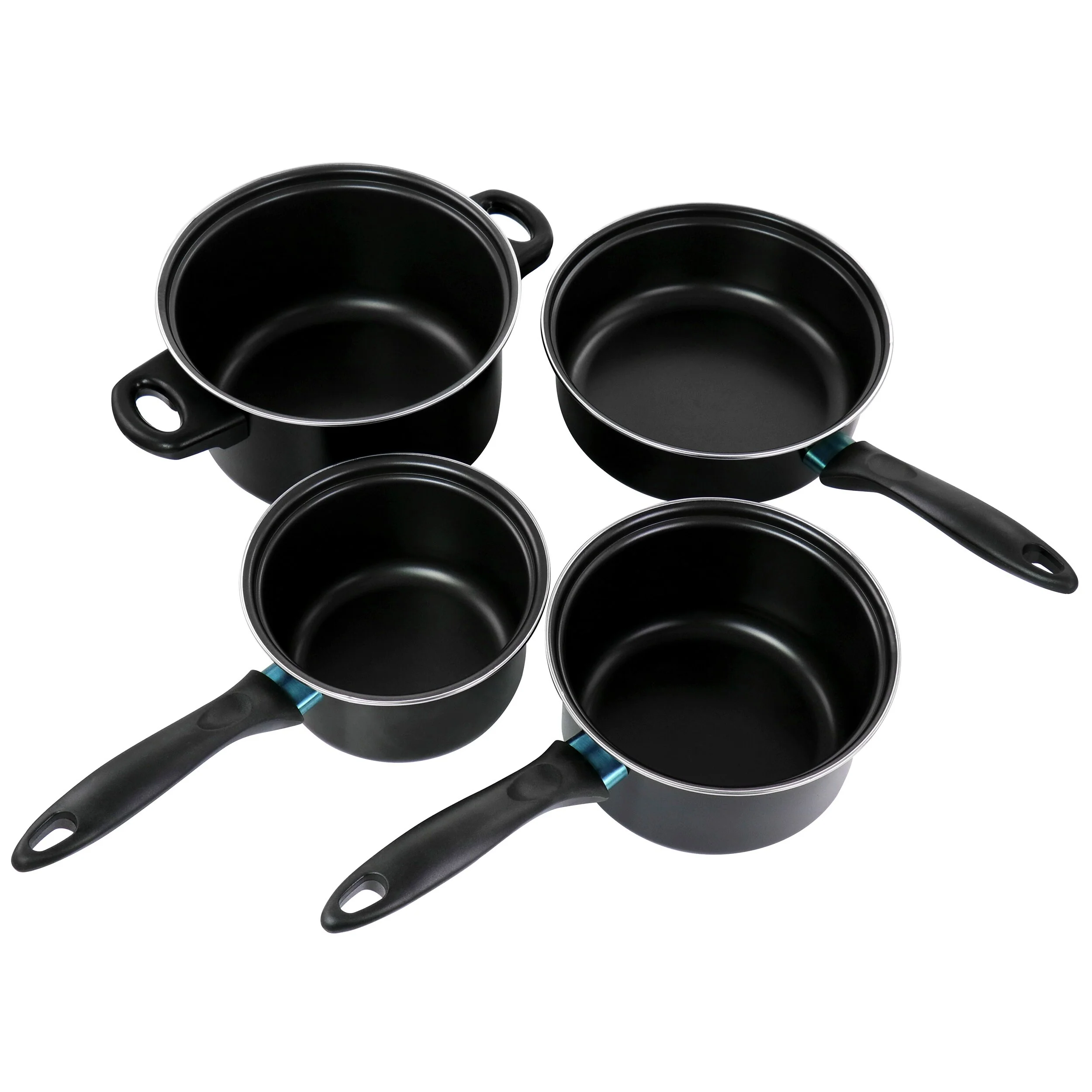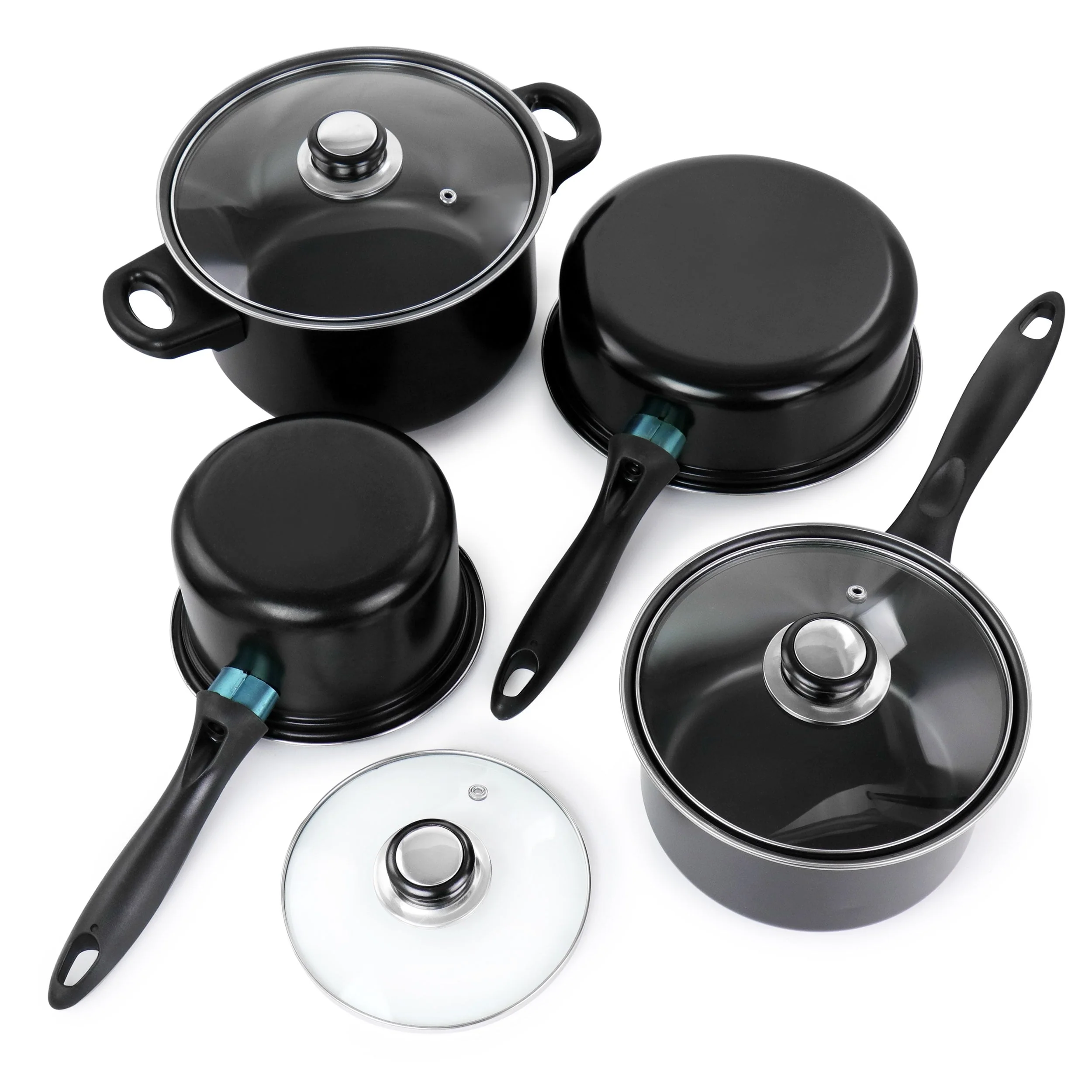 The Gibson Home Newton 7 Piece Carbon Steel Cookware Set comes with all your cookware pot and pan essentials. All pots and pans have a nonstick coating that requires less oil for healthier meals and an easy clean up once meal time is over. Bakelite handles are cool to the touch for easy movability while cooking. This set comes with one 3.25qt dutch oven and lid, one 1.25qt saucepan with lid, one 1.75qt saucepan with lid, and one 8.5in frying pan. All items in this set are gas, halogen, electric, and induction safe.Material: Carbon Steel and Tempered GlassColor: BlackNonstick CoatingHand Wash OnlyBakelite HandlesSet Includes:One 3.25qt Dutch Oven with glass lidOne 1.75qt Saucepan with glass lidOne 1.25qt Saucepan with glass lidOne 8.5in Frying PanPer Item Measurements:Dutch Oven: 8.5in diameter, 12.75in length, 4.5in height, 8in diameter glass lid, 3.25qt capacityFrying Pan: 8.5in diameter, 15in length, 3in heightLarge Saucepan: 7.25in diameter, 14in length, 4in height, 1.75qt capacity, 7in diameter glass lidSmall Saucepan:6.75in diameter, 13.5in length, 3.75in height, 1.25qt capacity, 6in diameter glass lid