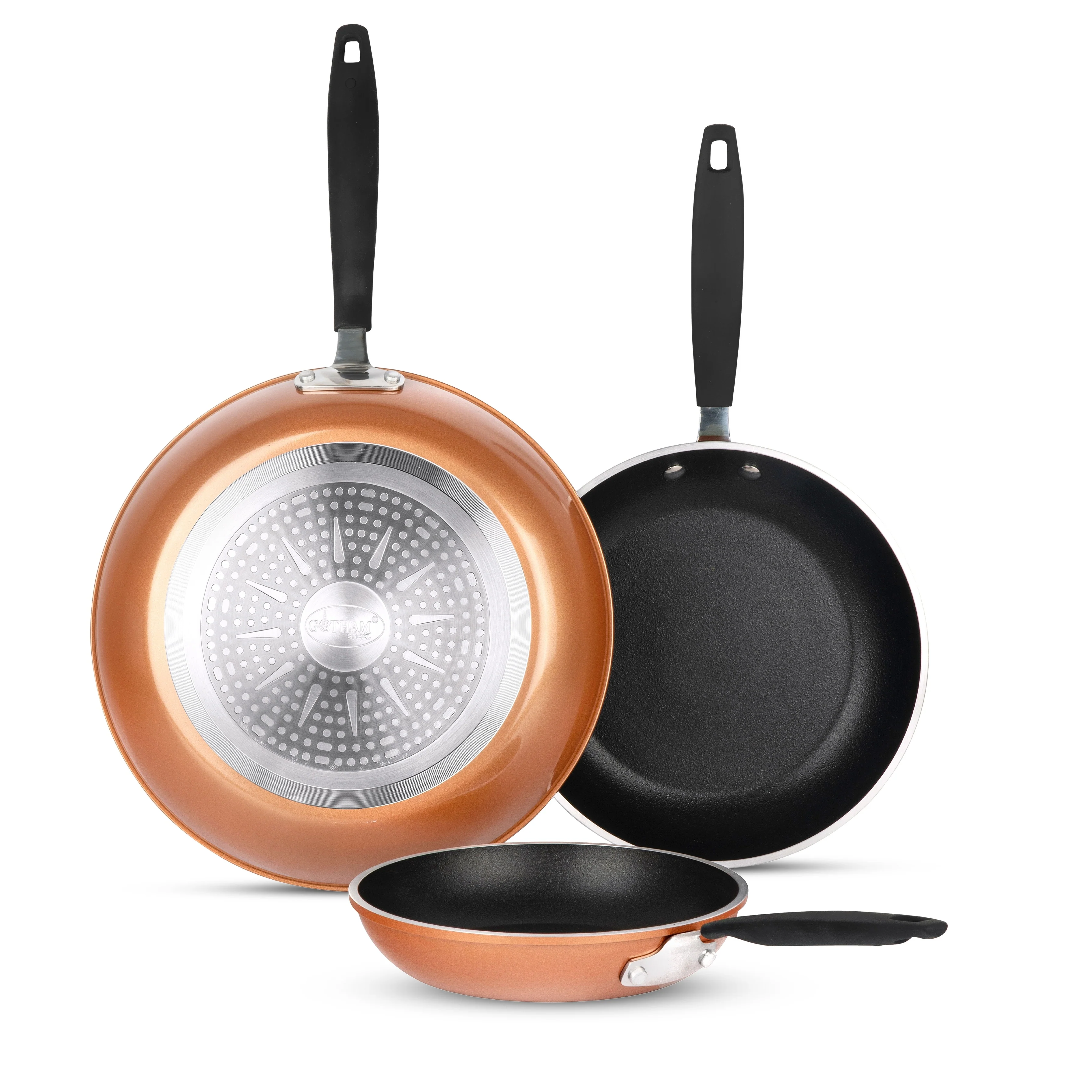 - Stylish and Functional Design: Featuring a vibrant copper finish and cool-touch handles, Gotham Steel's fry pans add a touch of elegance to your kitchen while ensuring safe and comfortable handling.