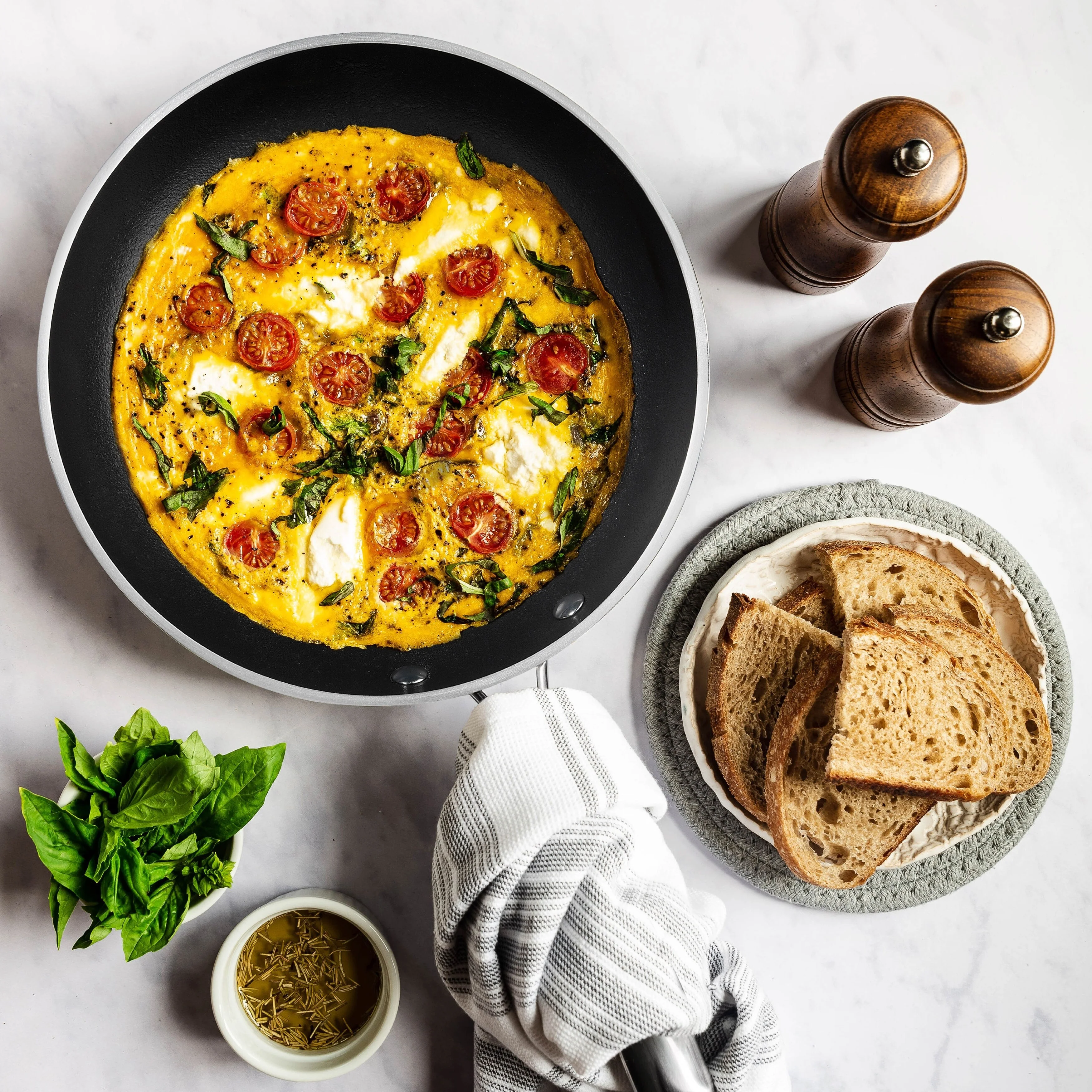 - Superior Heat Distribution and Durability: Crafted with cast textured aluminum, these pans offer even heat distribution and are built to withstand daily cooking, resisting scratches from metal utensils.