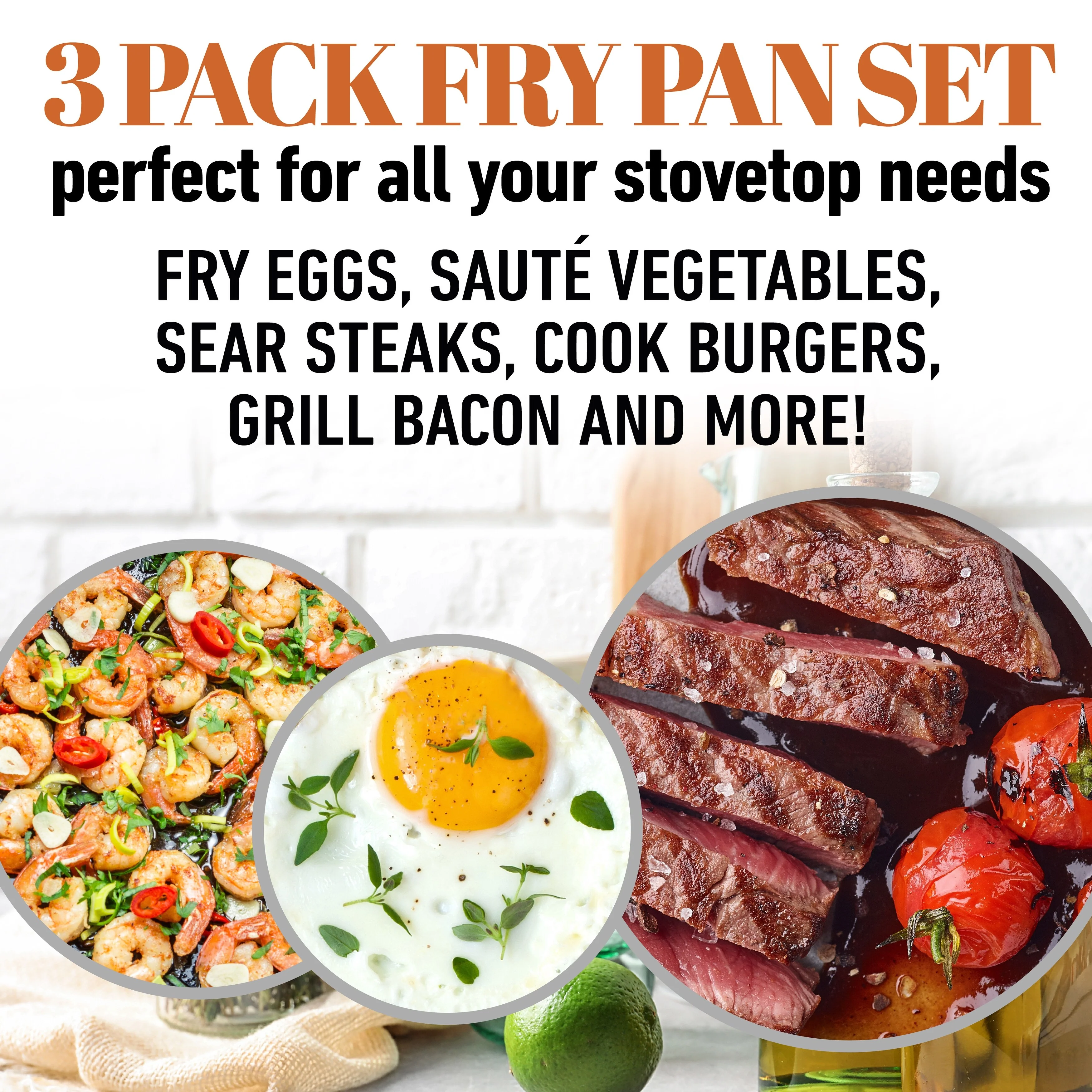 - Titanium-Ceramic Fusion Coating: Our 3-pack set features a durable titanium-ceramic fusion coating, reinforced with diamond materials, ensuring exceptional nonstick performance and long-lasting durability.
