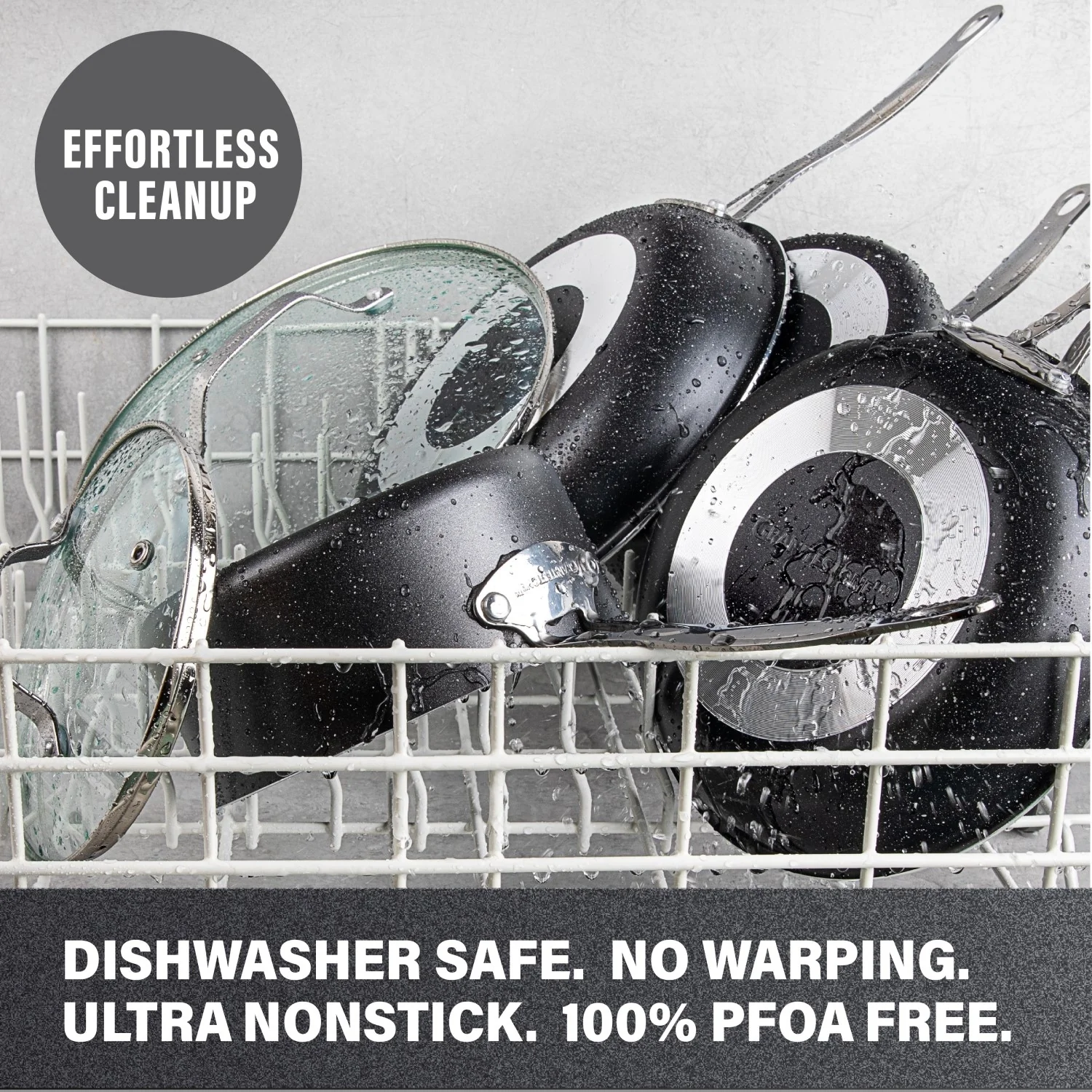 - Durable and Long-Lasting: Forged from solid aluminum for warp-resistant performance and even heat distribution with no hot spots—oven safe up to 500°F and dishwasher safe