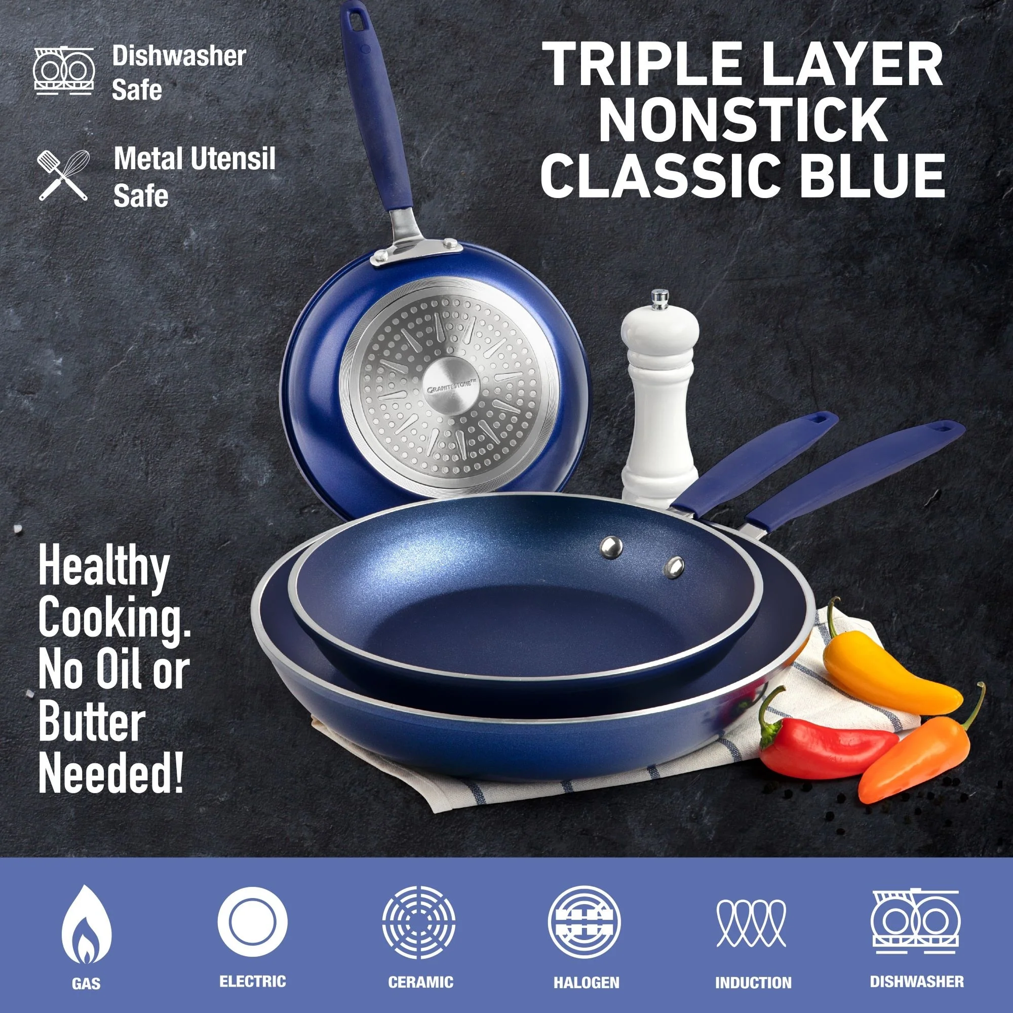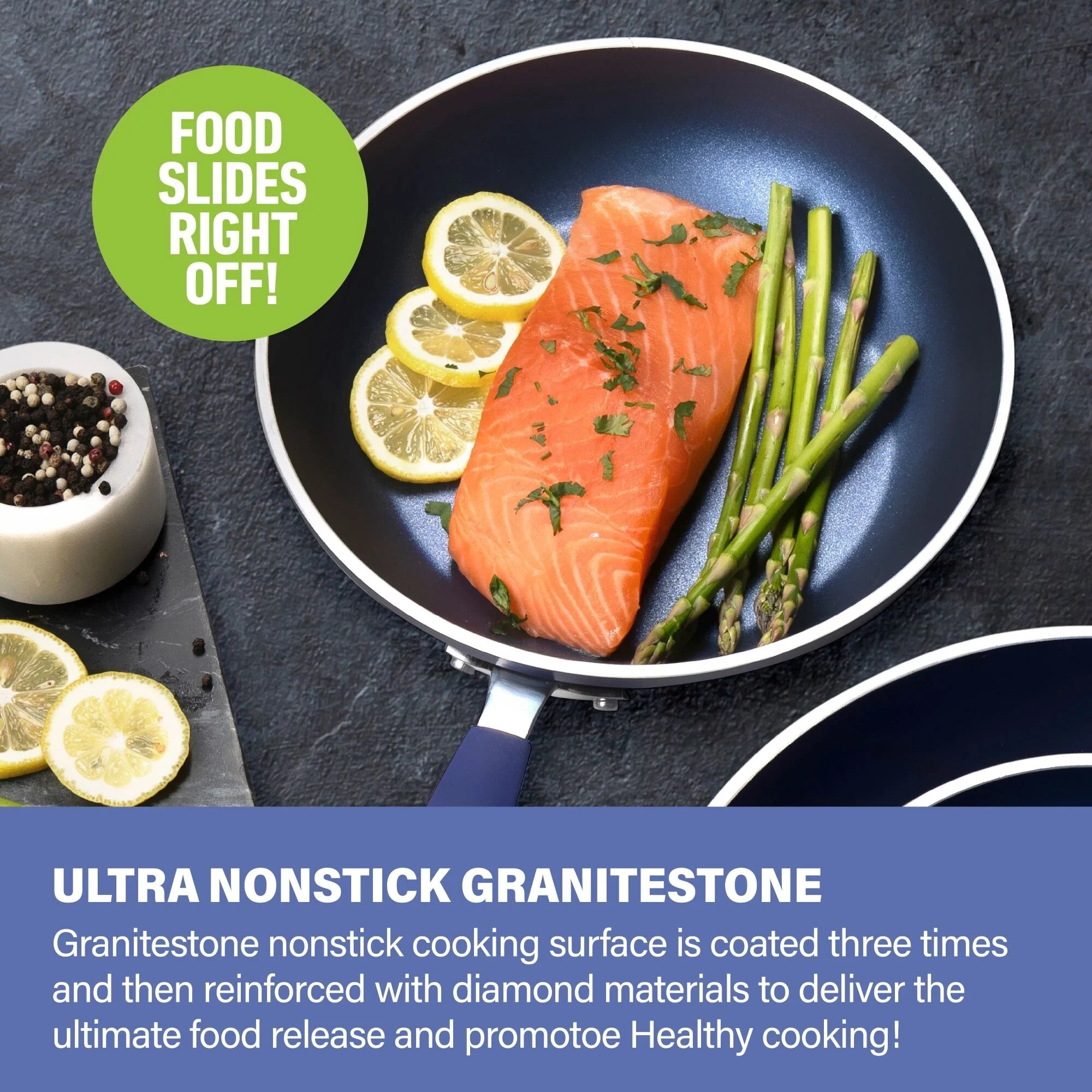 - Triple-Layer Nonstick Coating: Reinforced with diamond materials, the Granitestone nonstick surface ensures superior food release across all three pans (8', 10', and 12'), allowing you to cook with minimal to no oil or butter.