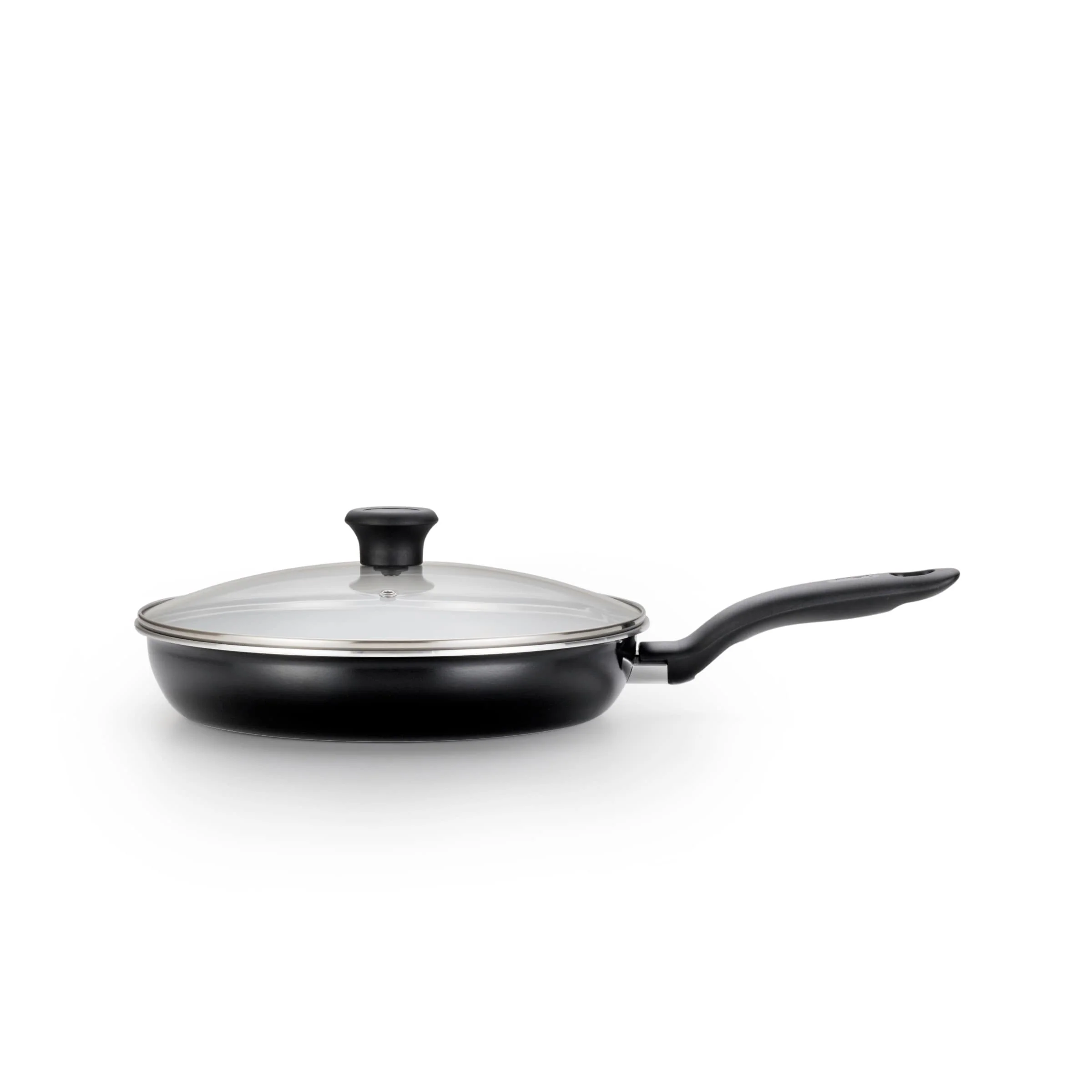- Set includes: 8.5' Fry Pan, 12' Covered Fry Pan, 1qt Covered Saucepan, 2qt Covered Saucepan, 5qt Covered Dutch Oven, Ladle, Slotted Spatula, Solid Spoon, Slotted Spoon