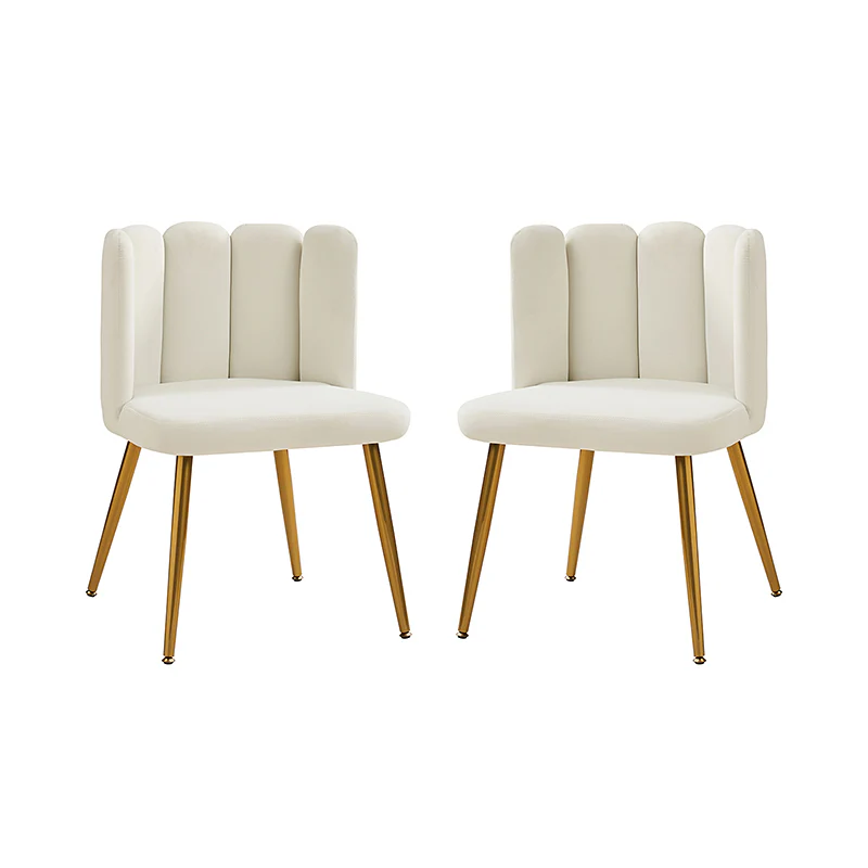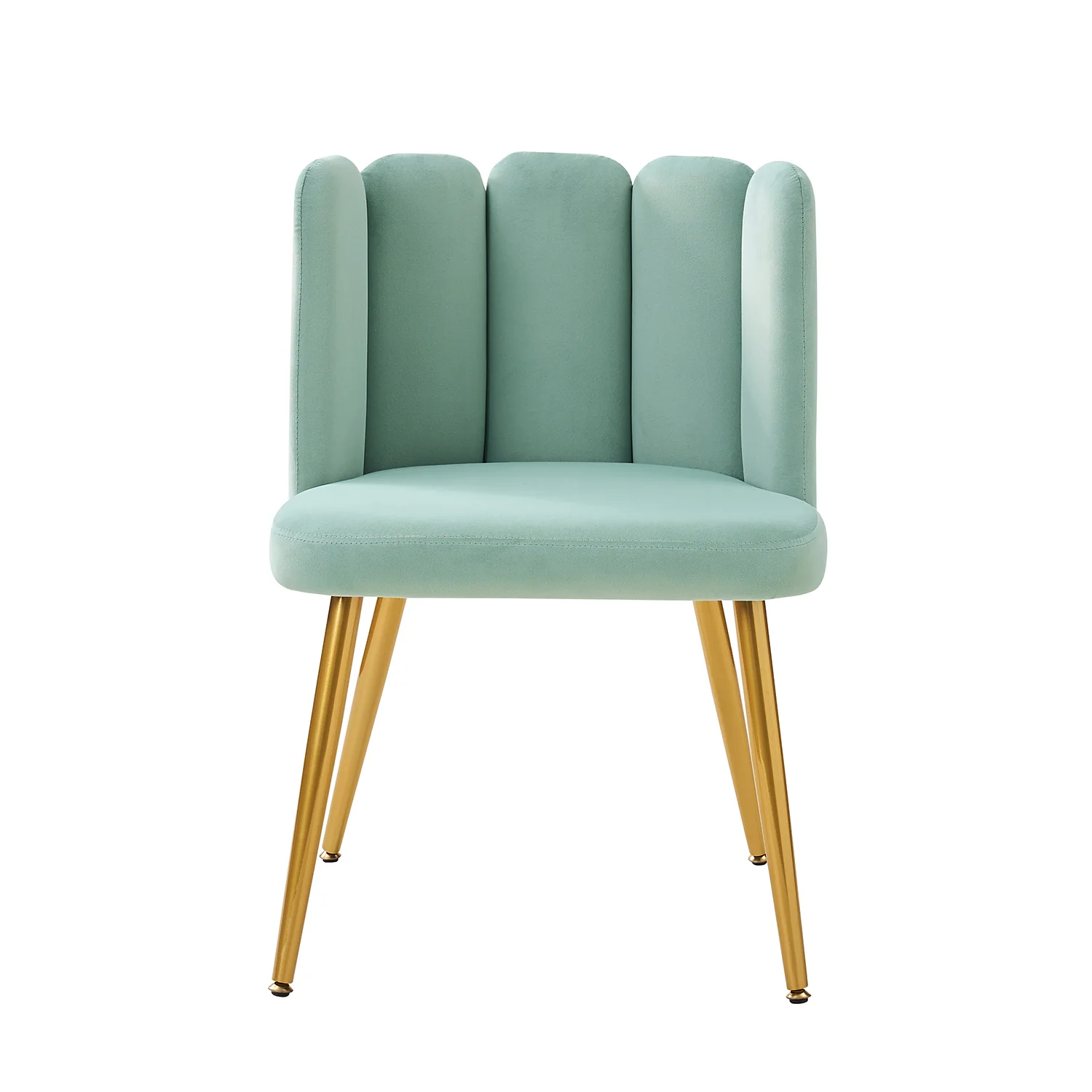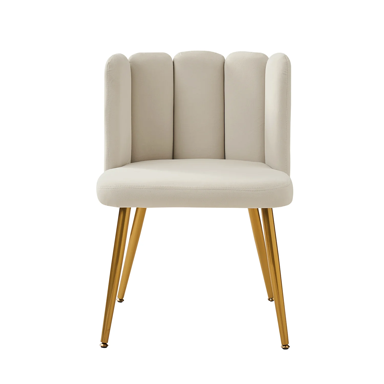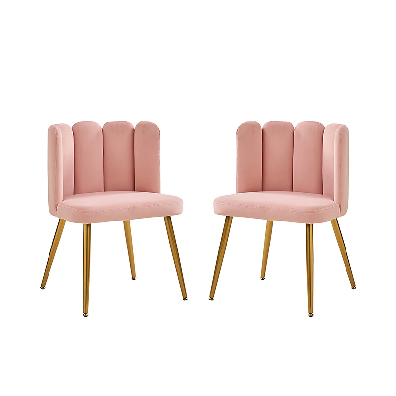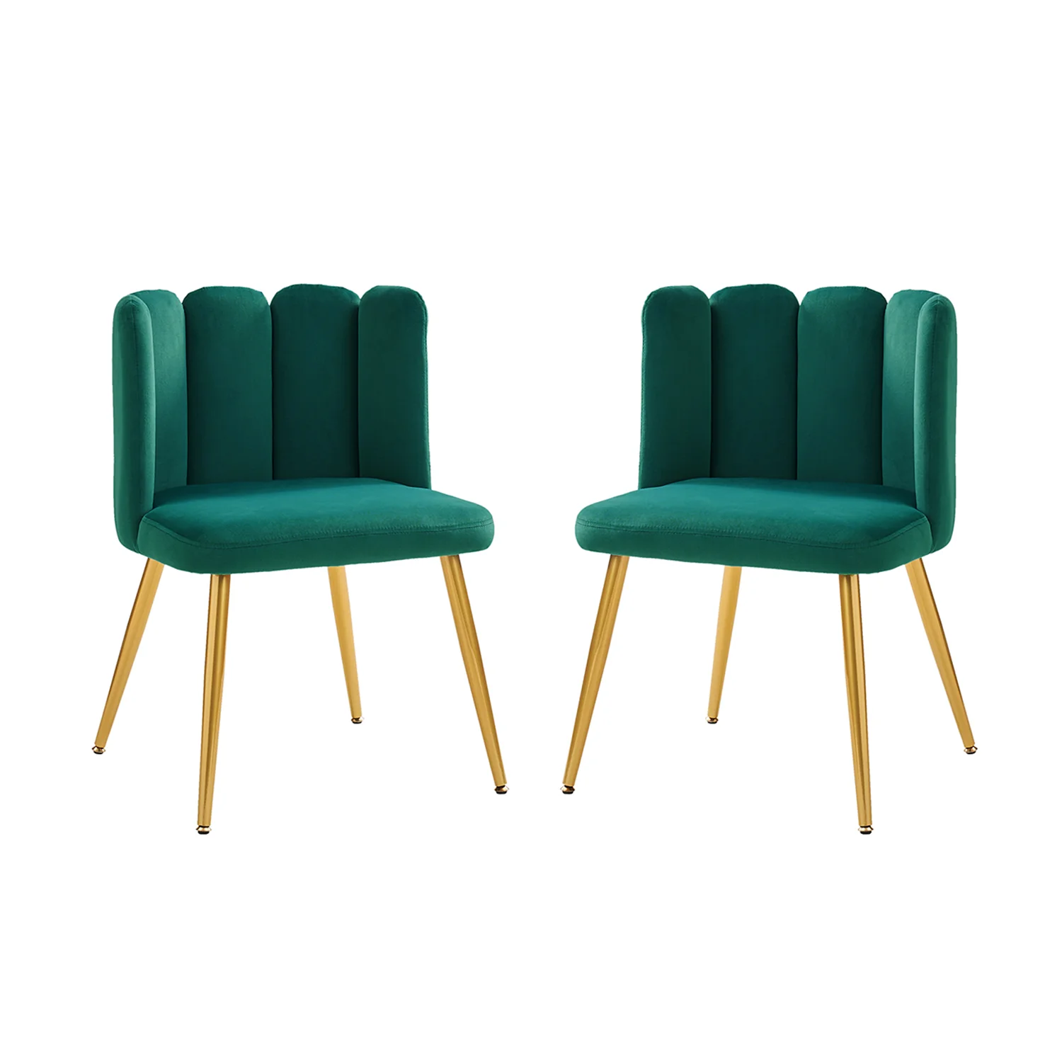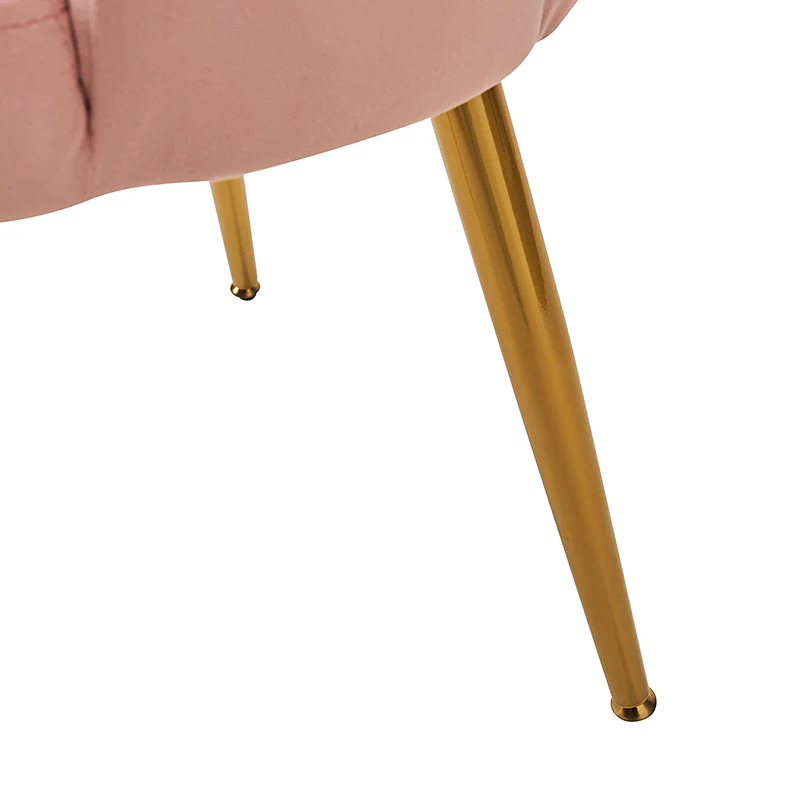Are you in search of the perfect side chair set to elevate your living room or bedroom? Look no further than this exquisite side chair set, which boasts a captivating silhouette. Crafted with a high-quality frame, the unique gold-plated metal legs with adjustable pads not only introduce a sense of fashion and luxury to your home but also provide a sturdy support structure. The velvet fabric, expertly concealing stitching, imparts a subtle hazy reflection of light, enhancing the overall aesthetic. Sink into comfort with the plush foam padding on the seat, while the timeless tufted design brings an element of luxurious comfort to your seating experience. Whether placed in your guest room or dining area, this chair set effortlessly radiates both comfort and elegance.