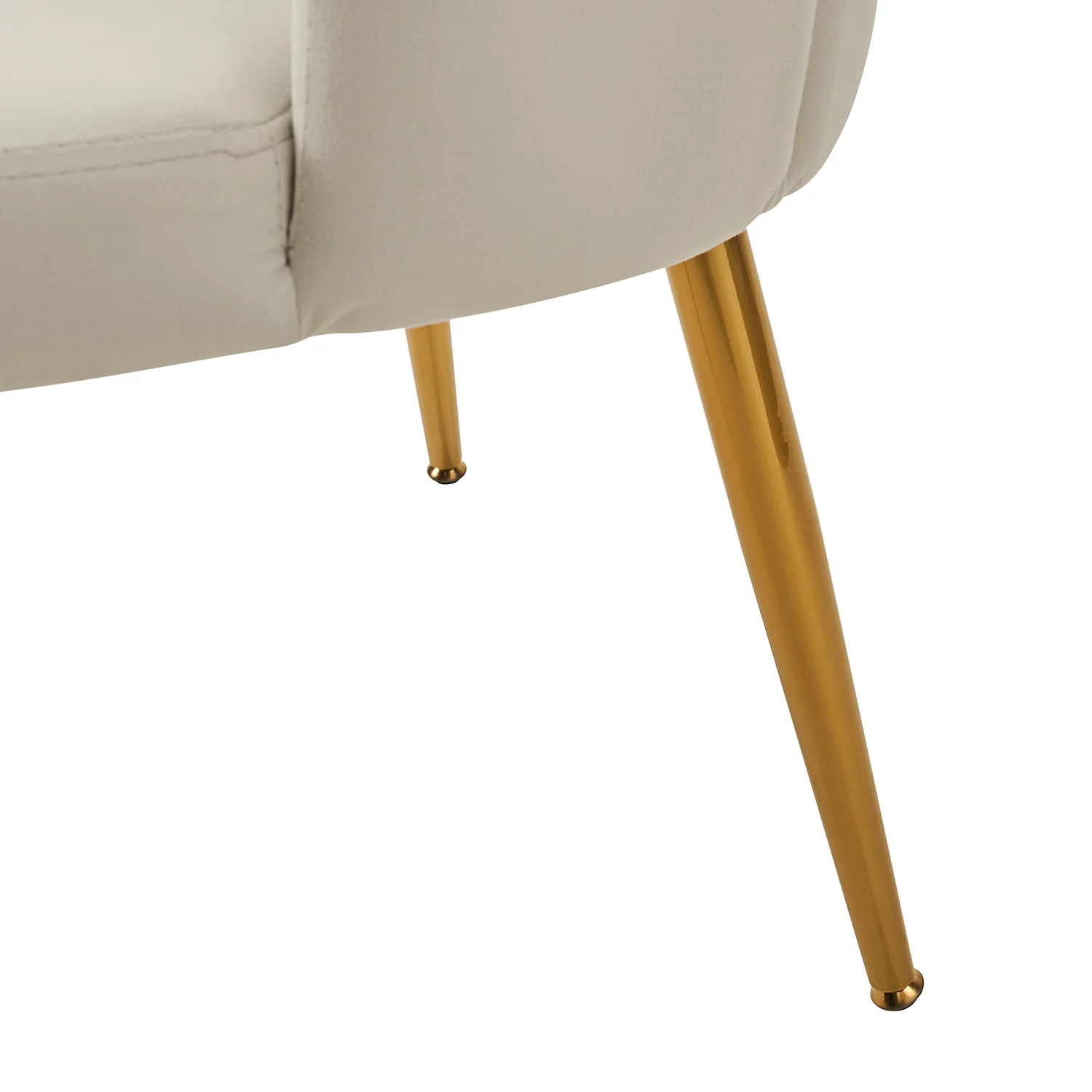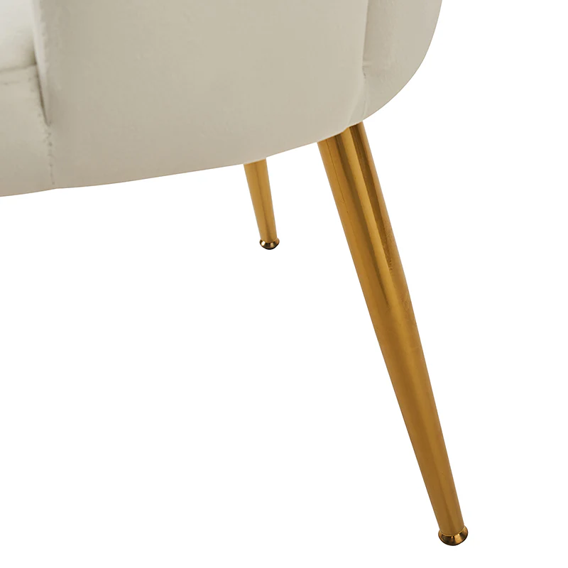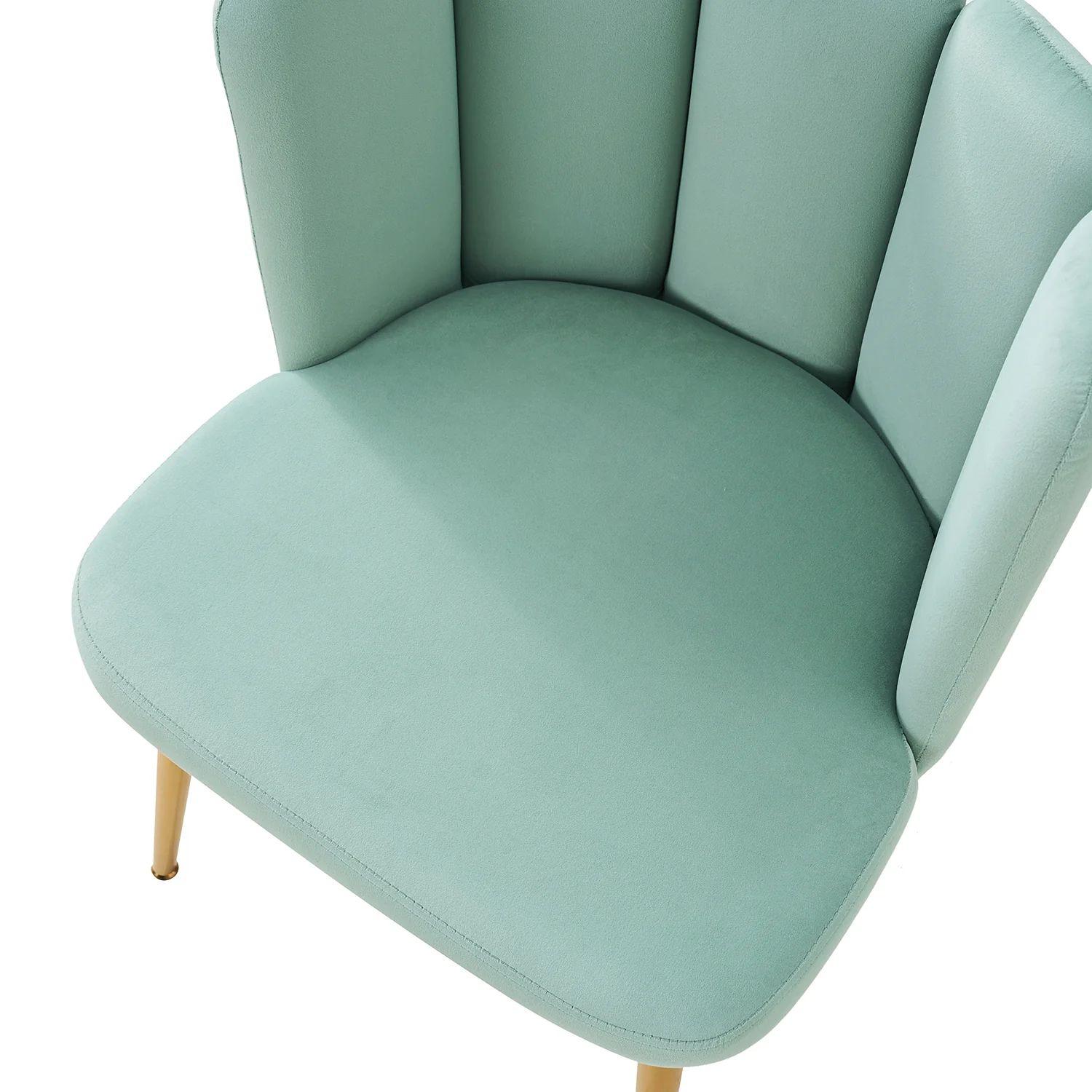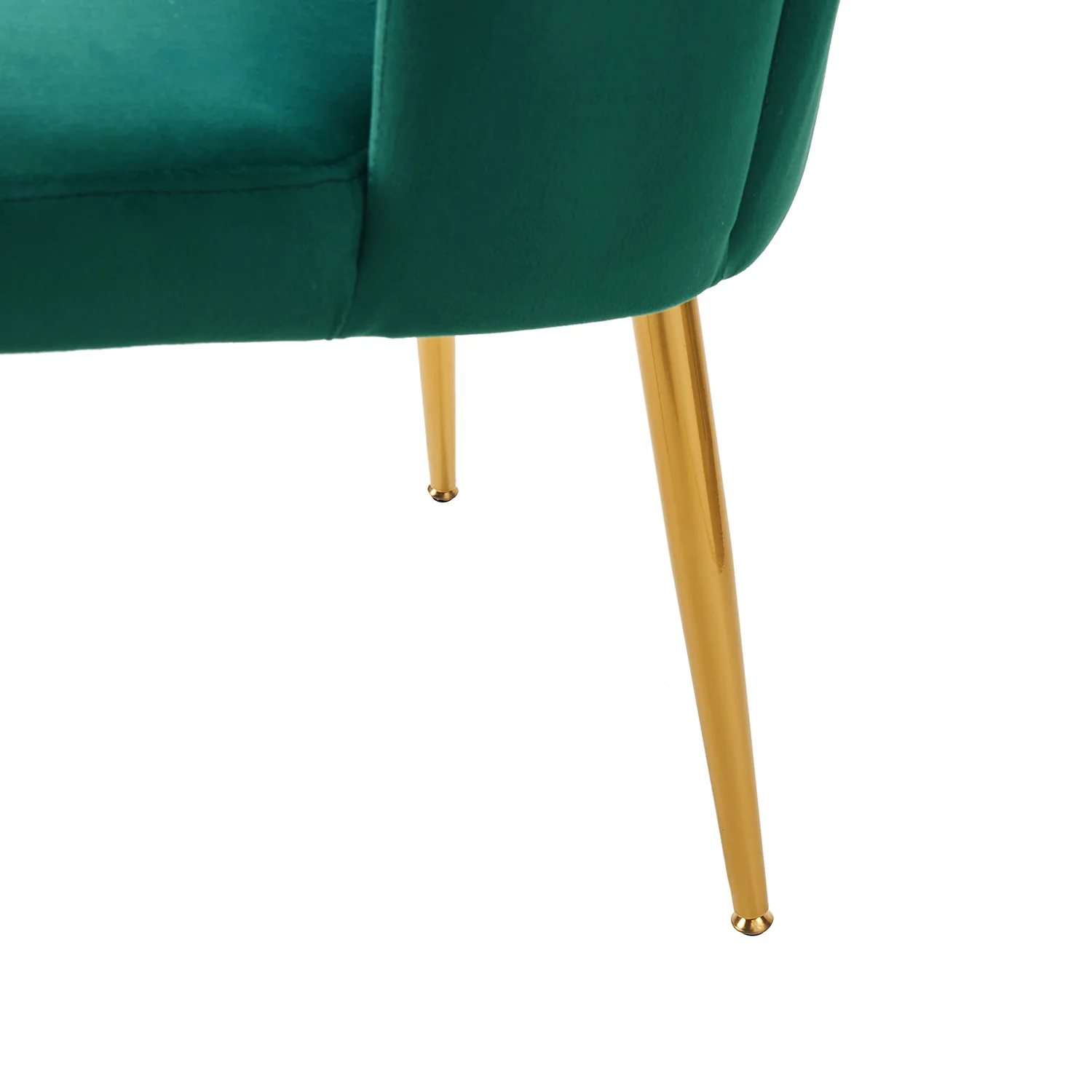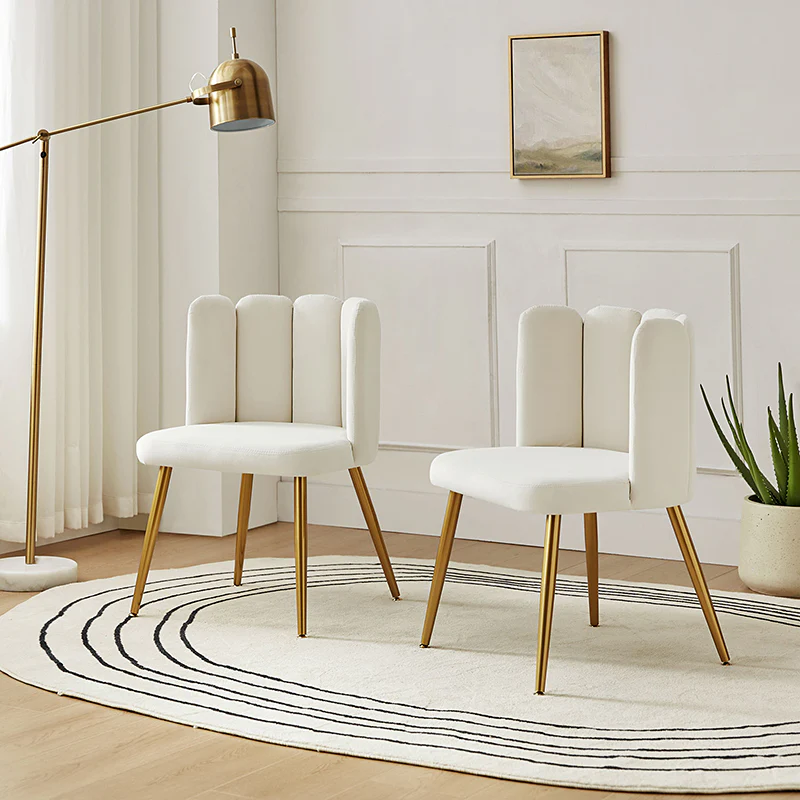 Are you in search of the perfect side chair set to elevate your living room or bedroom? Look no further than this exquisite side chair set, which boasts a captivating silhouette. Crafted with a high-quality frame, the unique gold-plated metal legs with adjustable pads not only introduce a sense of fashion and luxury to your home but also provide a sturdy support structure. The velvet fabric, expertly concealing stitching, imparts a subtle hazy reflection of light, enhancing the overall aesthetic. Sink into comfort with the plush foam padding on the seat, while the timeless tufted design brings an element of luxurious comfort to your seating experience. Whether placed in your guest room or dining area, this chair set effortlessly radiates both comfort and elegance.