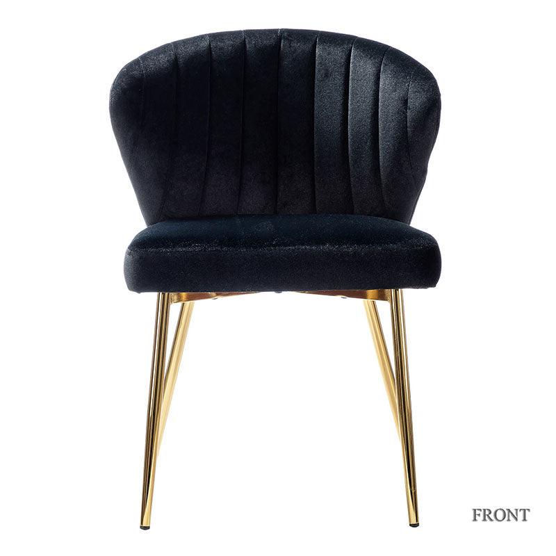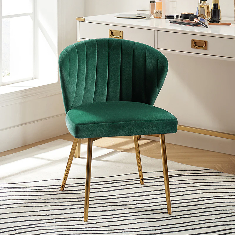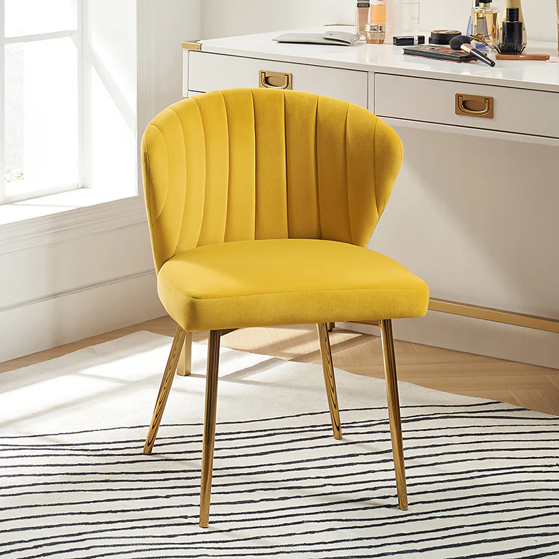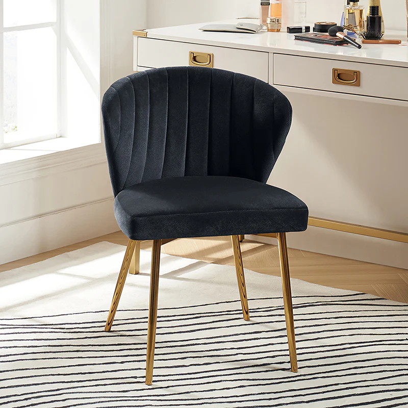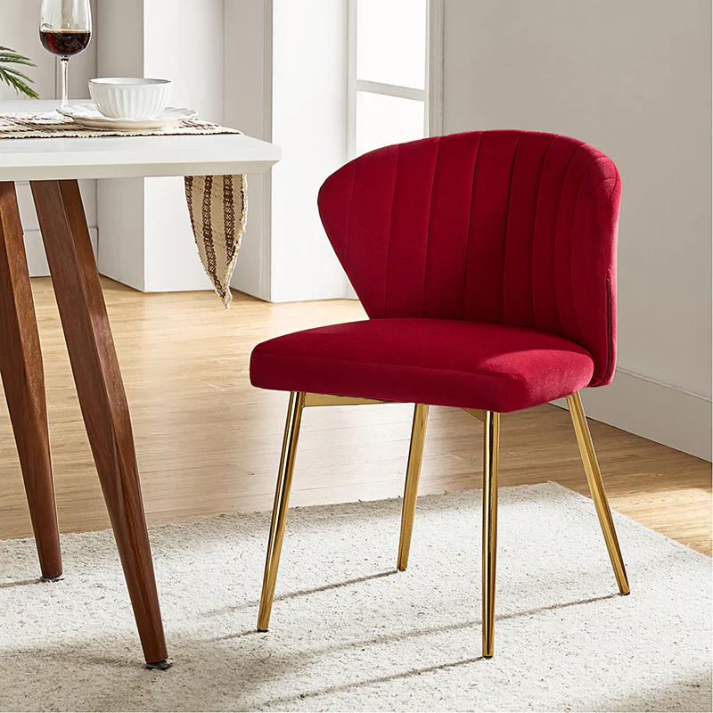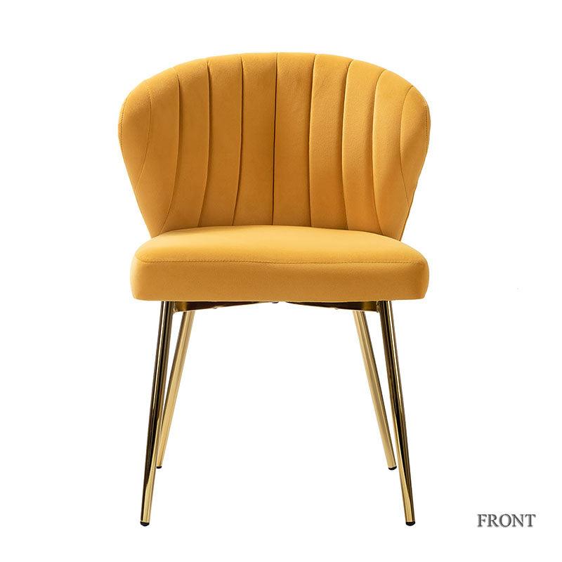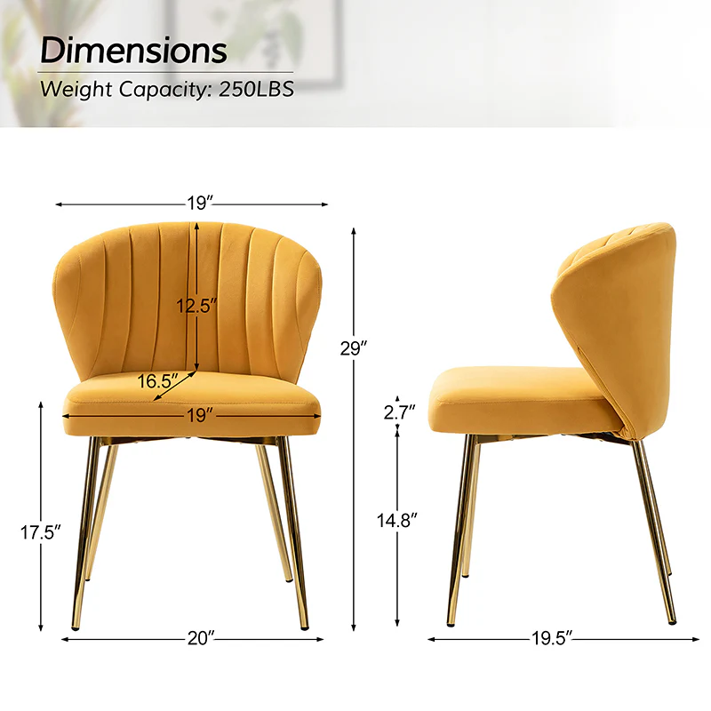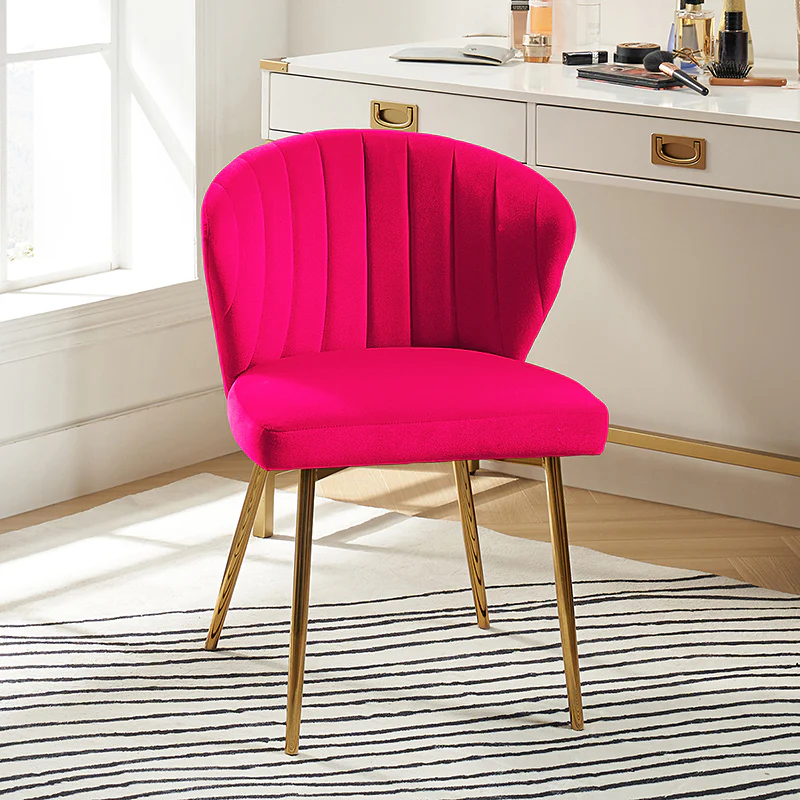 This side chair brings the perfect lines to your bedroom or living space. This stylish side chair has a channel-tufted back that wraps around a foam-filled cushion. The whole chair is upholstered in velvet which is durable and resilient to everyday use adding to the timeless and long-lasting fashion of this chair. The four metal legs with a full sense of design while not only bringing fashion and luxury to your home but also improving stability and durability. This is the best choice for your decorating a room or gifting to families and friends.